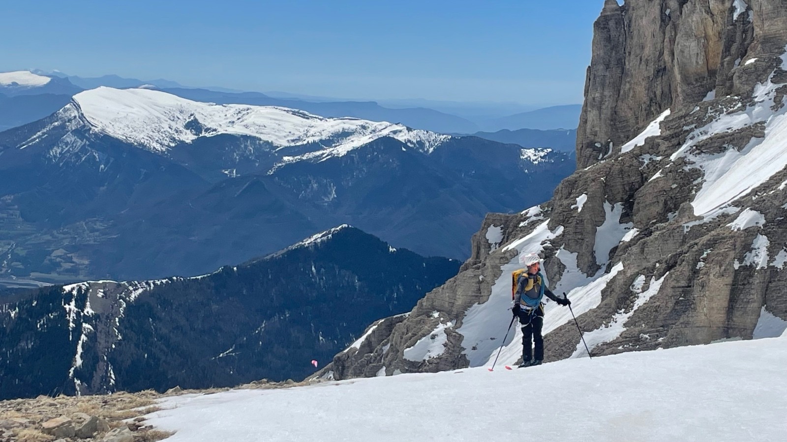 La traversée héroïque passe bien, mais une neige souvent un peu inconsistante avec de bonnes marches.