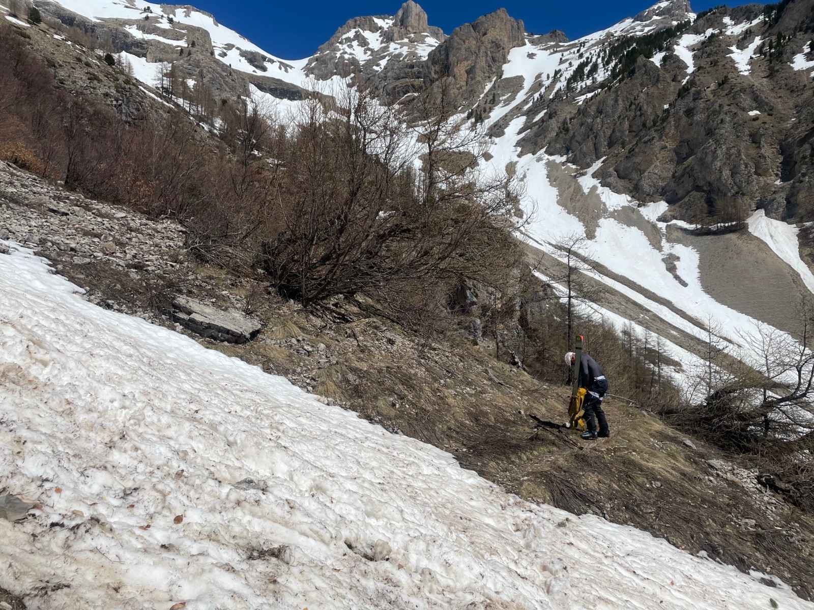 Neige variée dans la traversée héroïque mais globalement molle ; peu de glace