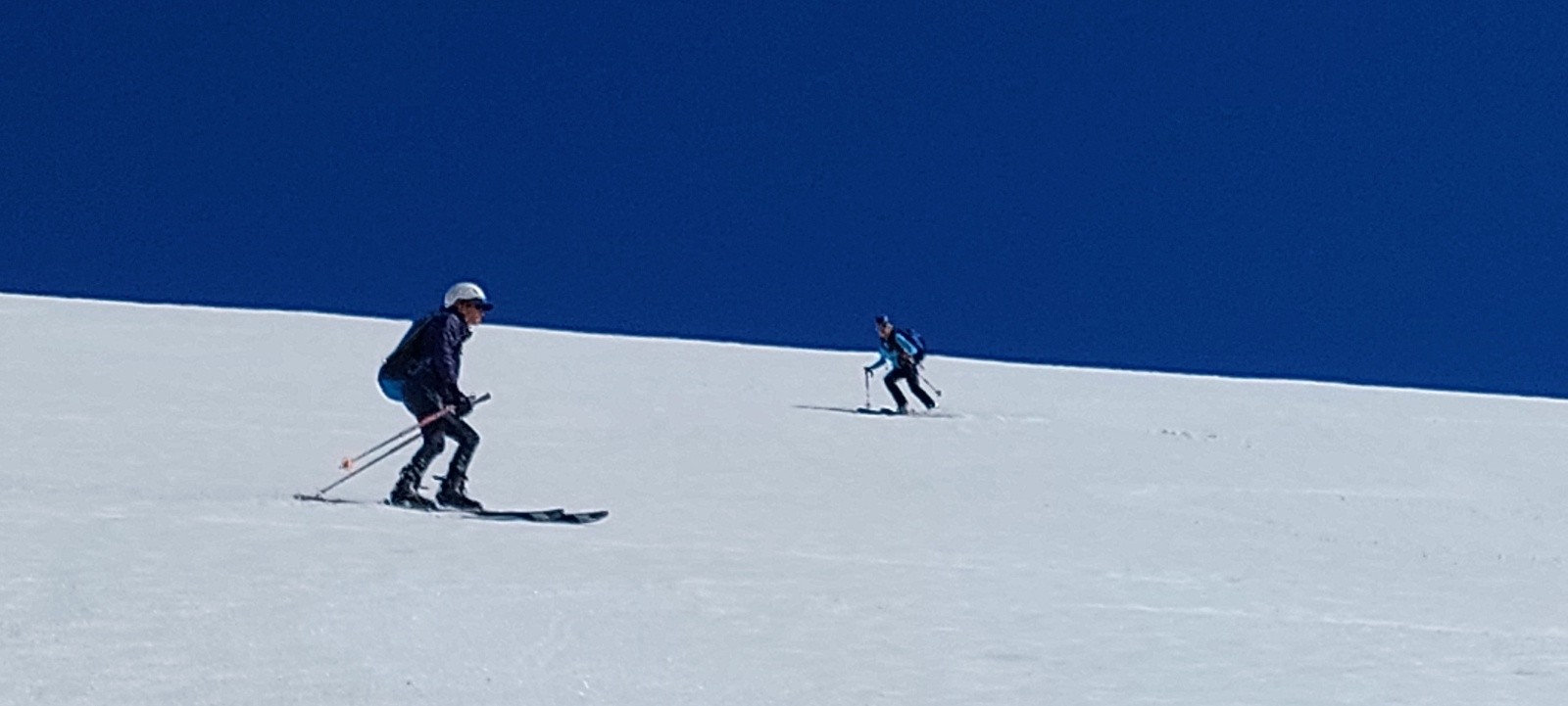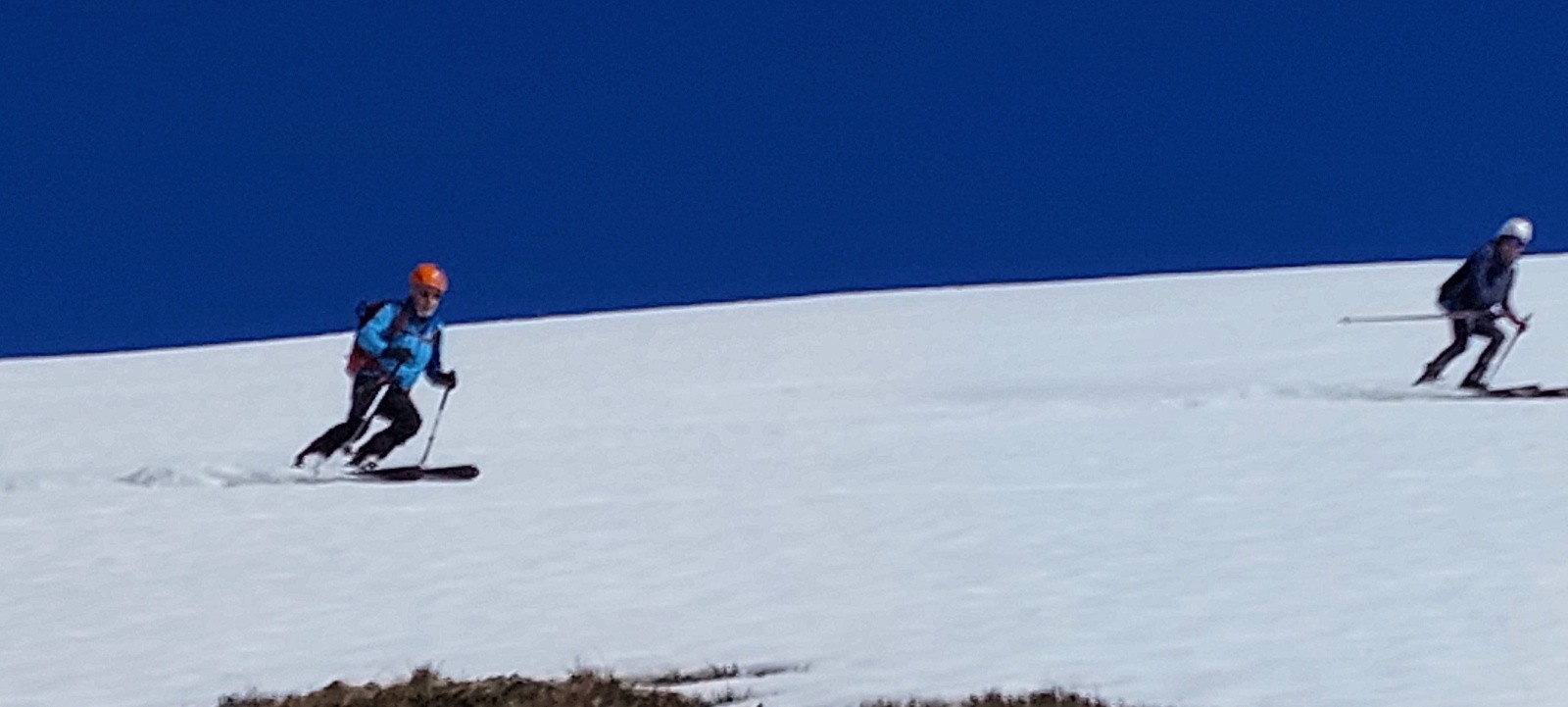 Conditions pour le ski : bon ski dans l'ensemble, majoritairement en 'moquette' à poils courts devenant longs sur le bas des descentes (Sud-Est de la Dent de Bédina vers 10h, ça aurait été encore mieux 1/2h voire 1h plus tôt ? Ouest du Jas du Lièvre vers 12h15, probablement encore meilleure 1/2h plus tôt, sur le bas notamment, un peu ramolli), et final sur piste juste "revenue".