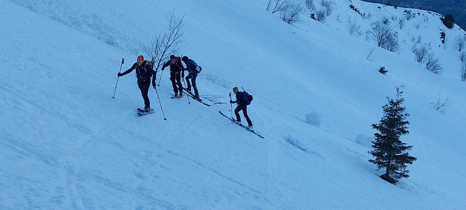 Itinéraire suivi : Prapoutel -> Dents de Bédina par le couloir Ouest ("de la Dent Noire") -> descente (Sud-)Est dans le vallon du Vénétier jusque vers 1800m -> remontée au Jas des Lièvres versant Sud -> descente face Ouest jusque vers la colonie de vacances -> remontée vers le 'Gros Caillou' sous la combe de Ouest Bédina -> retour Prapoutel par le(la) (hors-)piste.