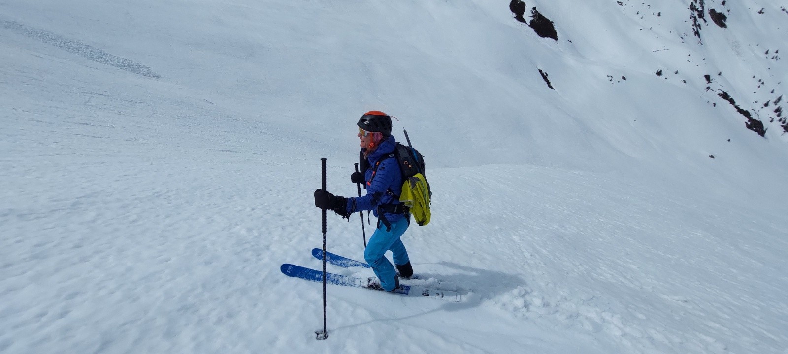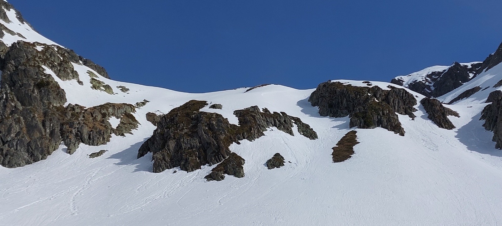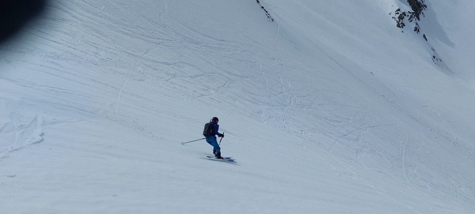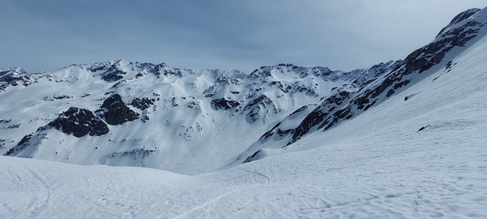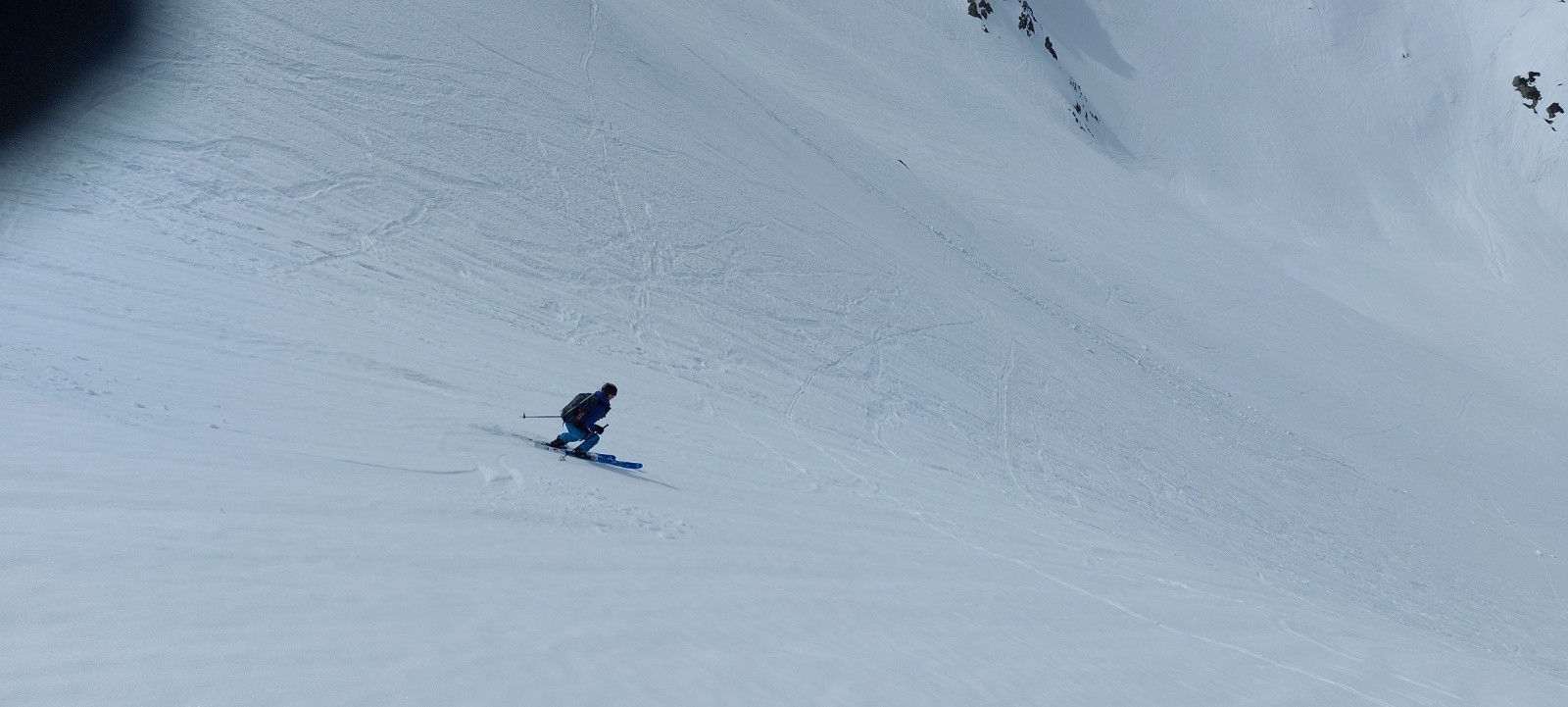 Conditions pour le ski : ski bien plaisant, globalement en neige "moquette" très gouleyante. Entre "moquette à poils courts" (voire ponctuellement un peu dure) et "moquette à poils longs" (voire ponctuellement mollasse collante) - pas de quoi se plaindre, même Pédro aurait apprécié ;-).