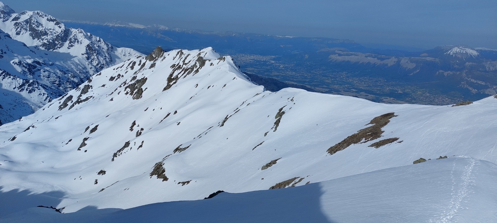 Itinéraire suivi : Pipay -> haut du télésiège du Gypaète, par pistes -> Cime de la Jasse, par l'arête -> Dent du Pra, par l'arête -> descente Sud-Est sous le col de l'Aigleton jusque vers 2150m -> remontée à la Belle Etoile par le couloir Sud -> aller/retour en Est jusque vers 2450m -> retour Pipay, après remontée via le "col de l'Evêque" et le "col des Oudis", puis descente par les pistes.