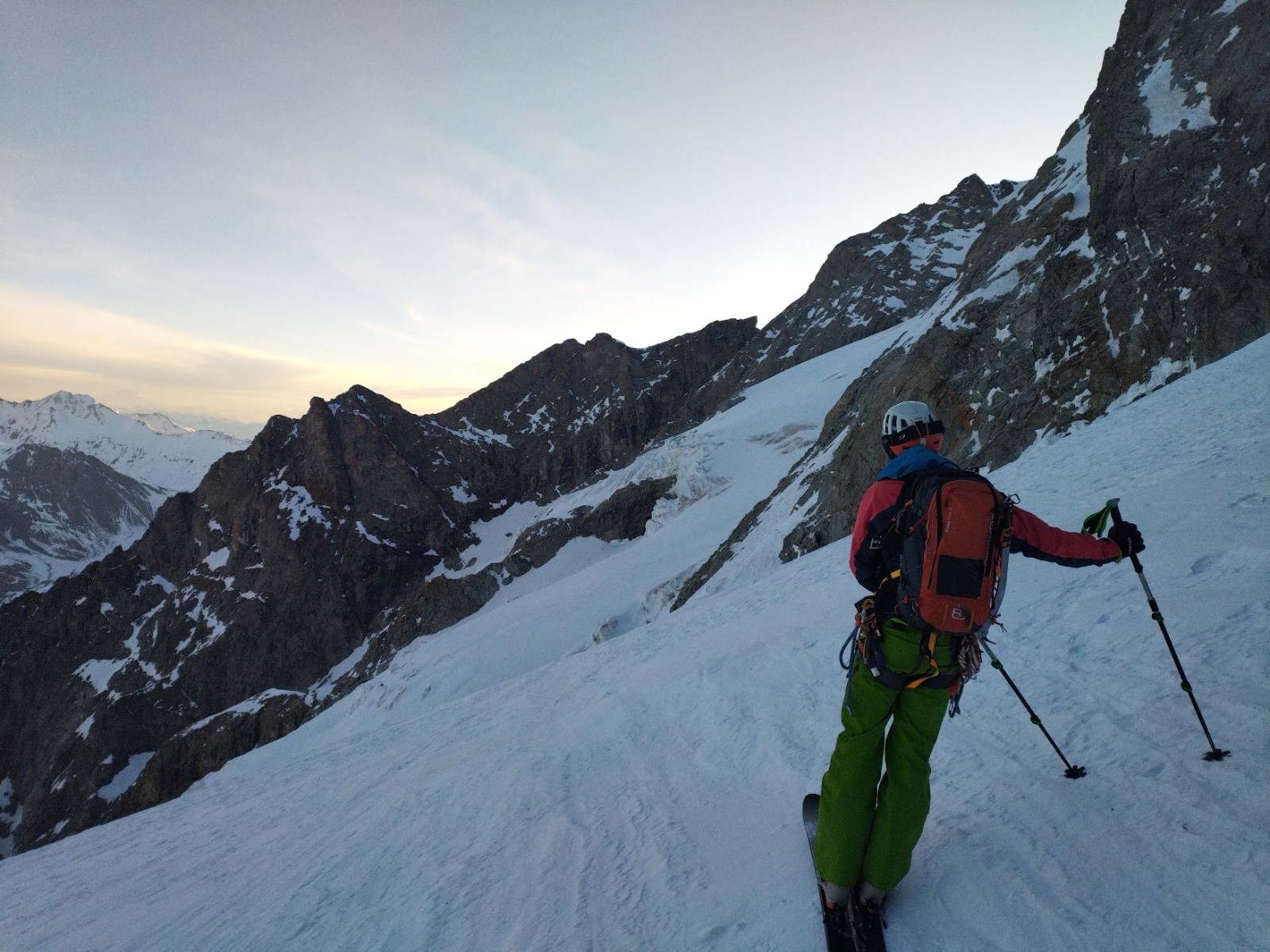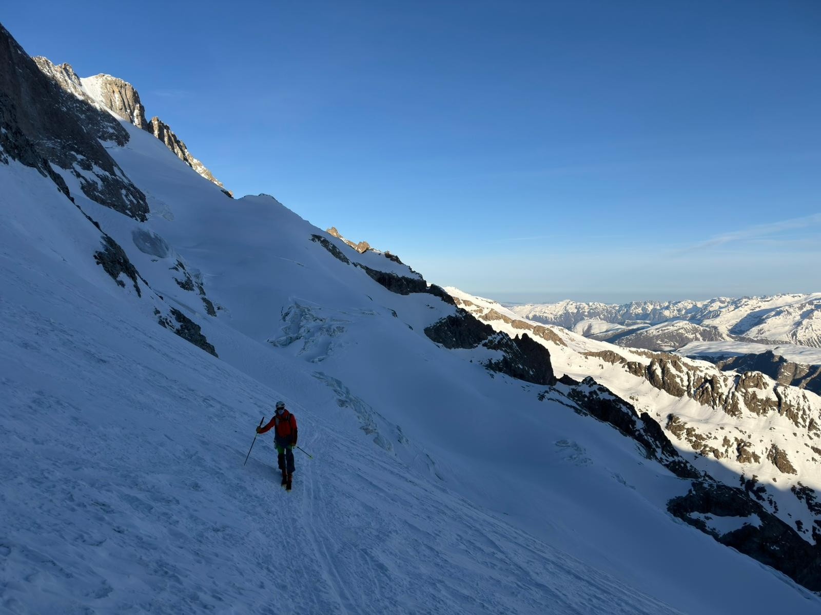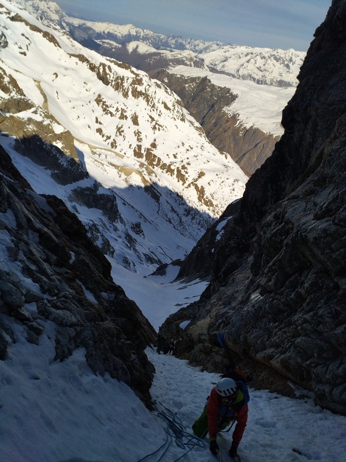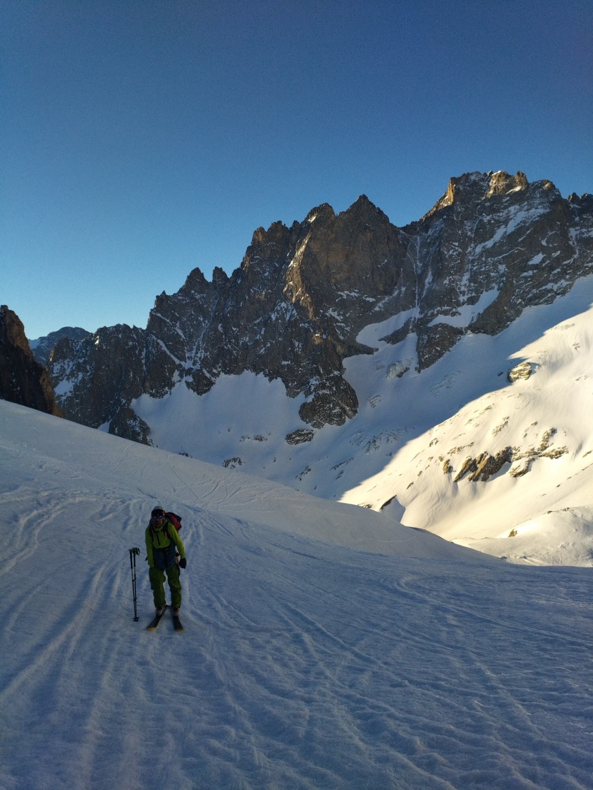 Puis, on pousse jusqu'à la brèche des Chamois pour voir la vue et les conditions pour le lendemain. On veut savoir si le couloir des chamois passe et si la brèche du Rateau se fait bien.