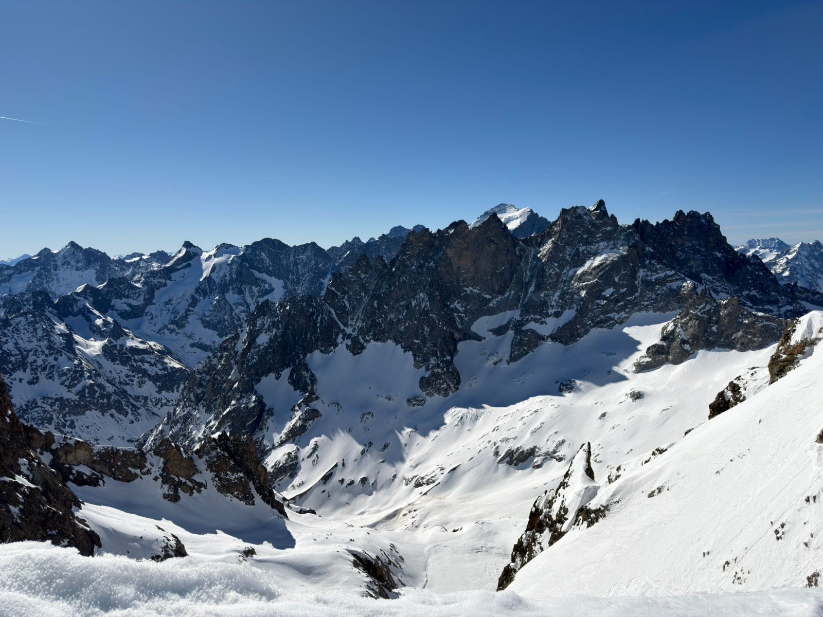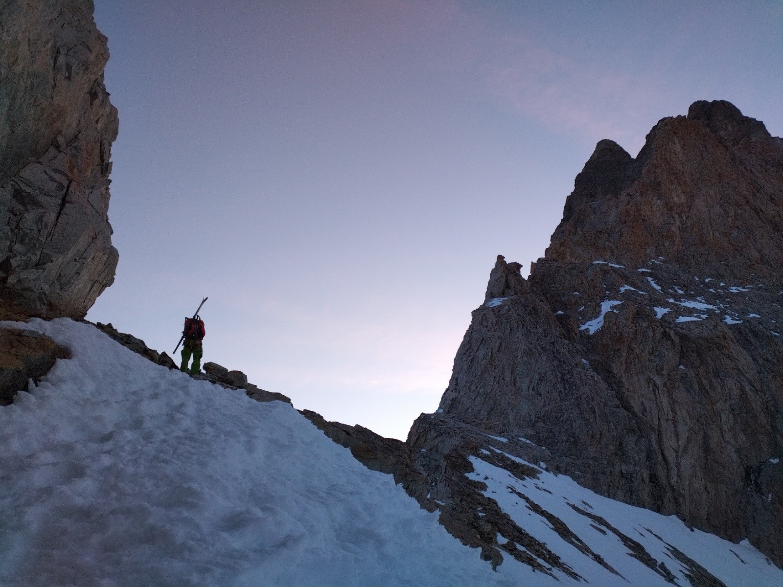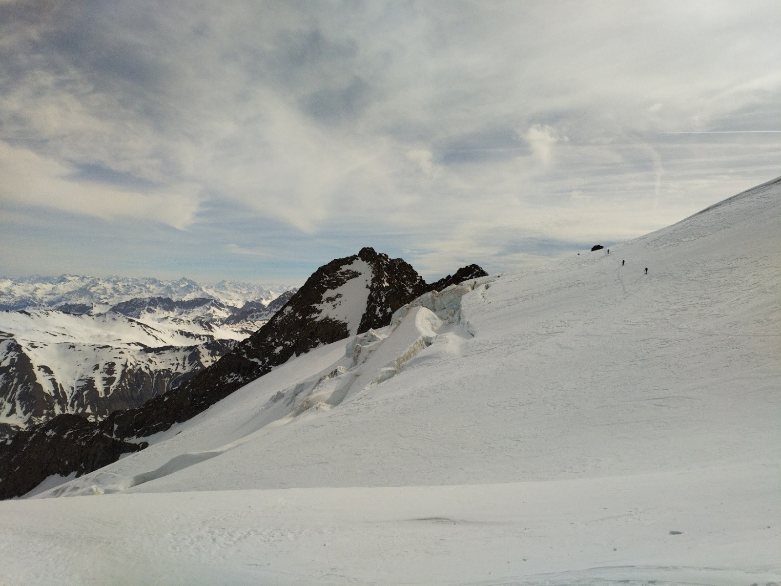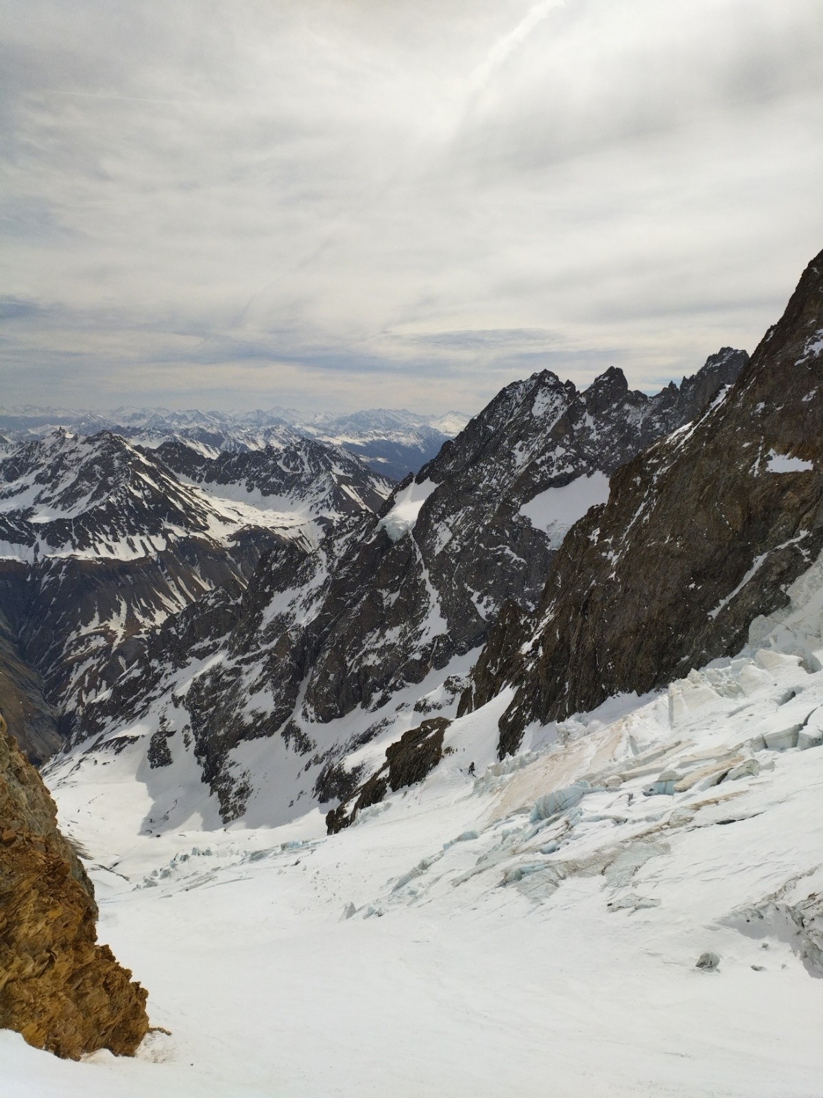 Puis, on pousse jusqu'à la brèche des Chamois pour voir la vue et les conditions pour le lendemain. On veut savoir si le couloir des chamois passe et si la brèche du Rateau se fait bien.