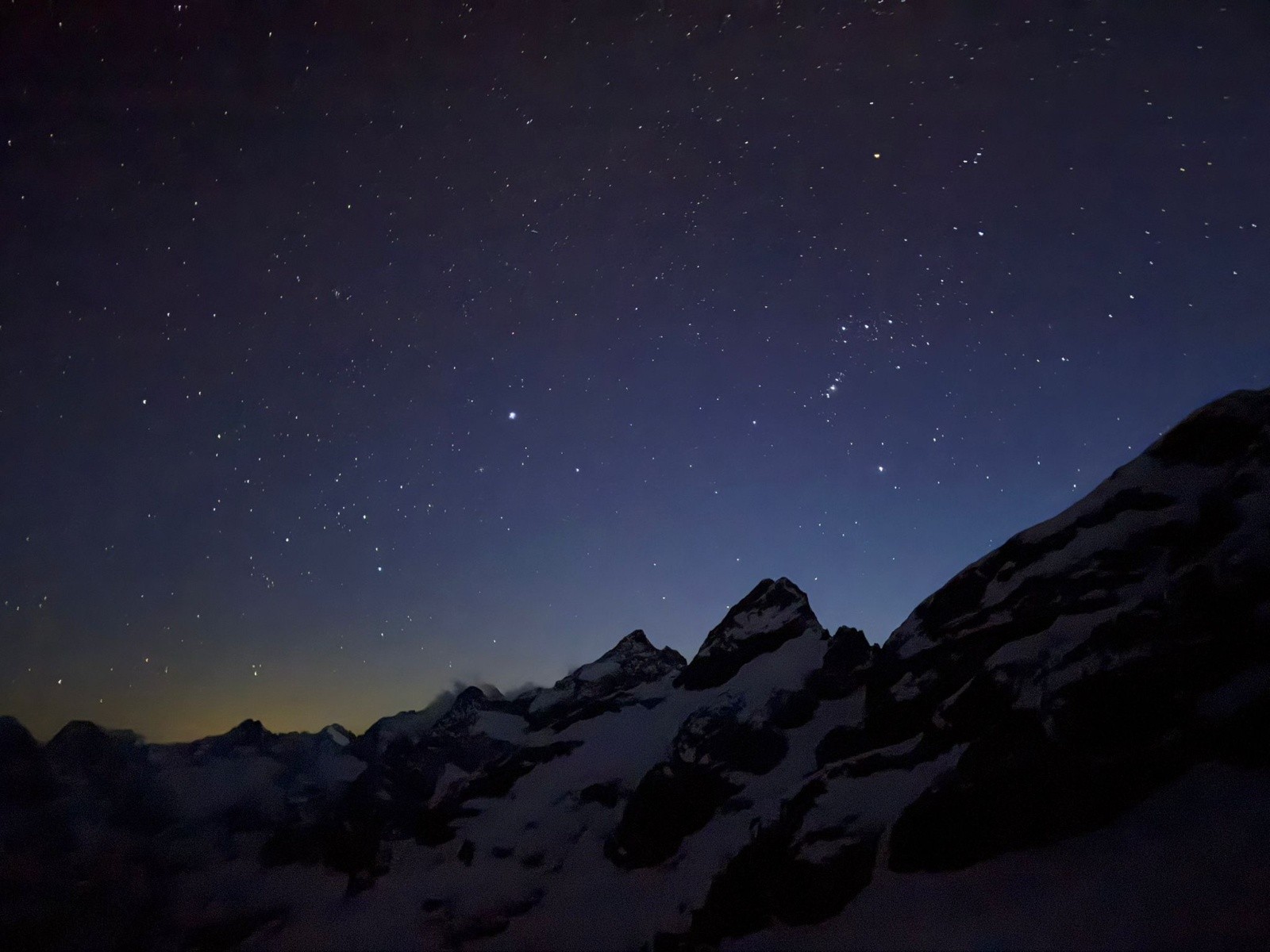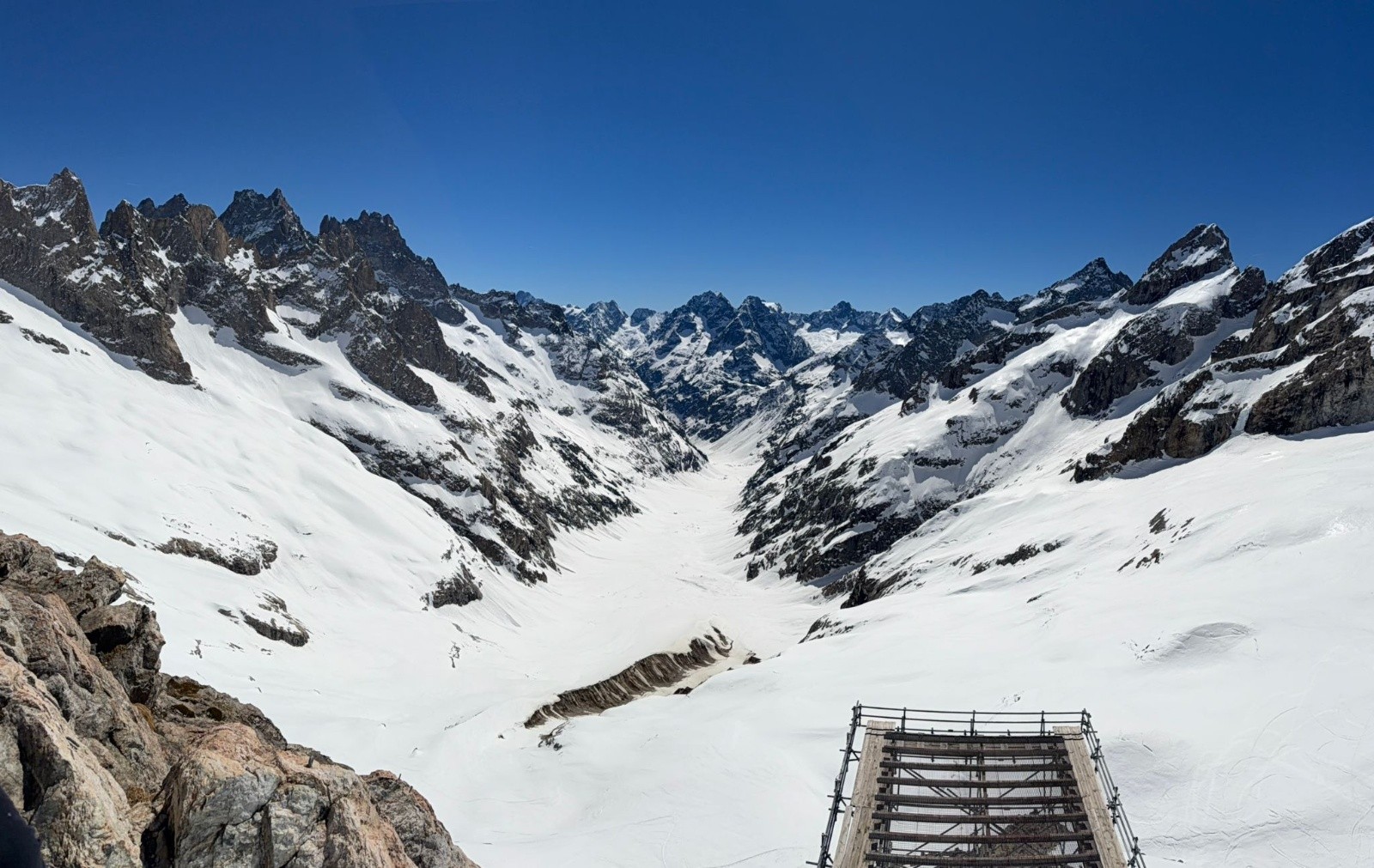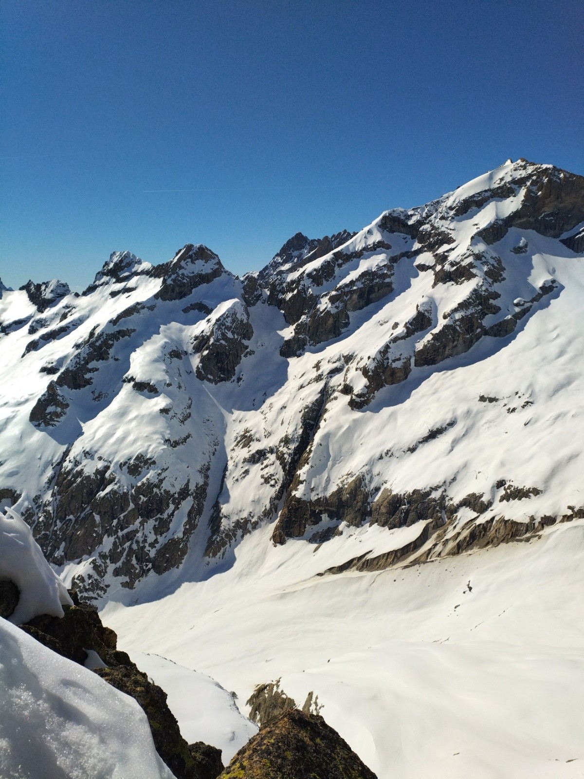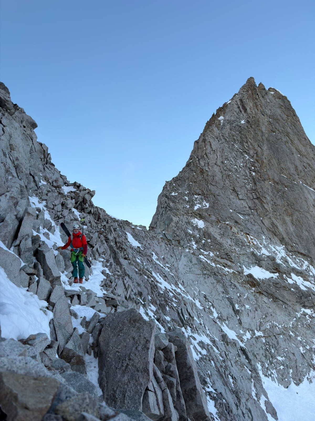 Puis, on pousse jusqu'à la brèche des Chamois pour voir la vue et les conditions pour le lendemain. On veut savoir si le couloir des chamois passe et si la brèche du Rateau se fait bien.