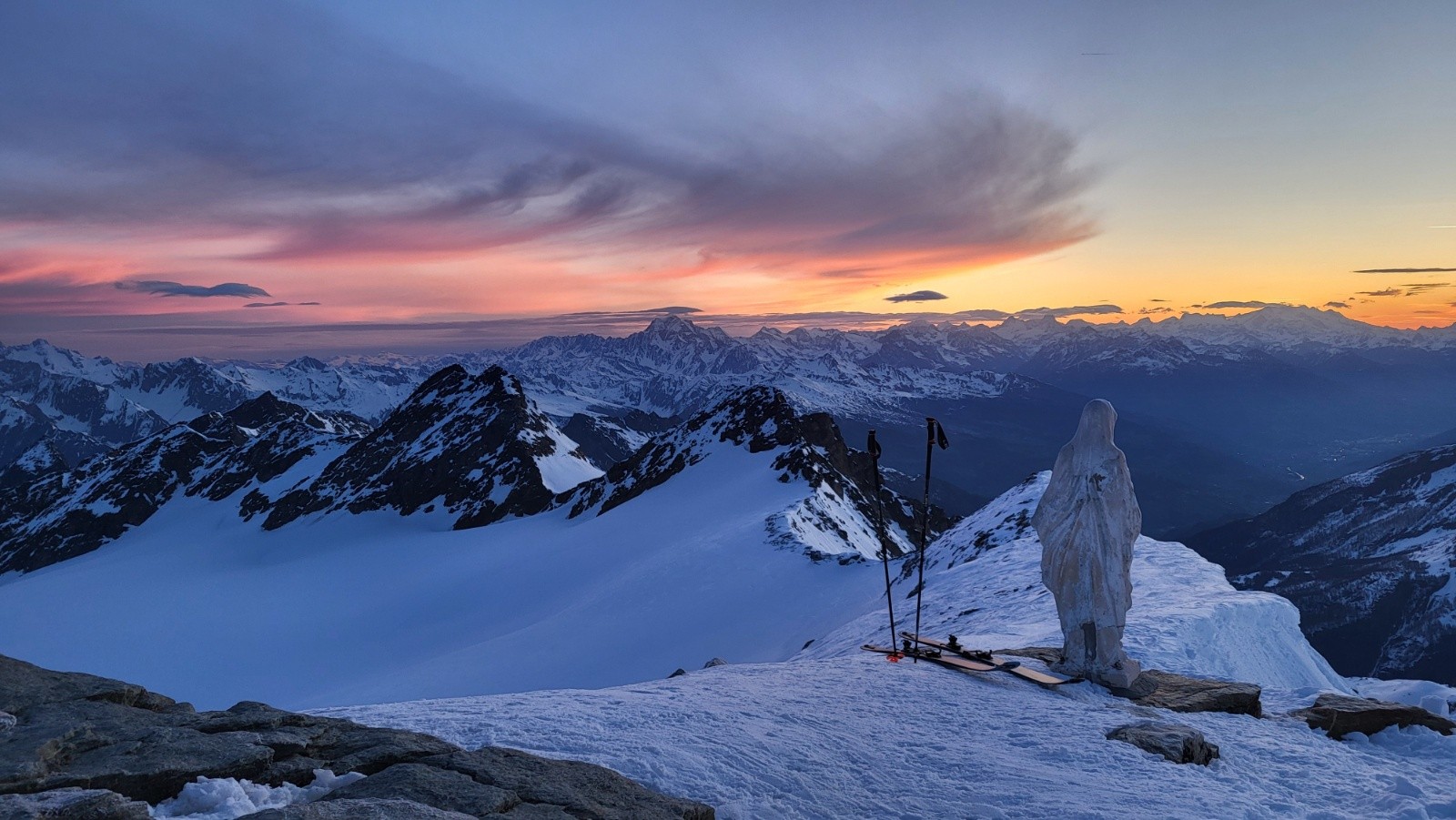 Ciel flamboyant depuis la Tête, les nuages ont quitté le sommet et les rafales de vent ont cessé dès l'aube.