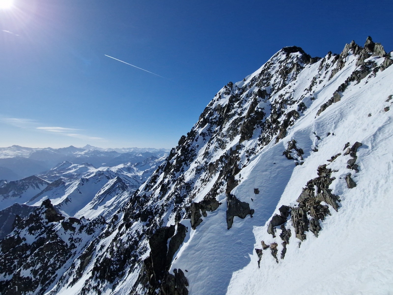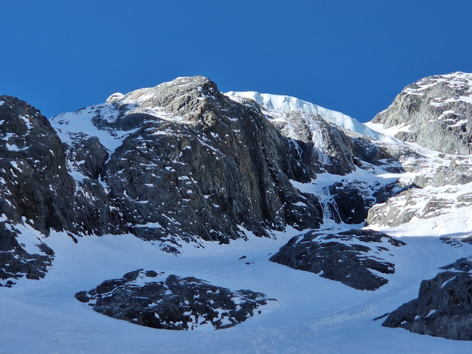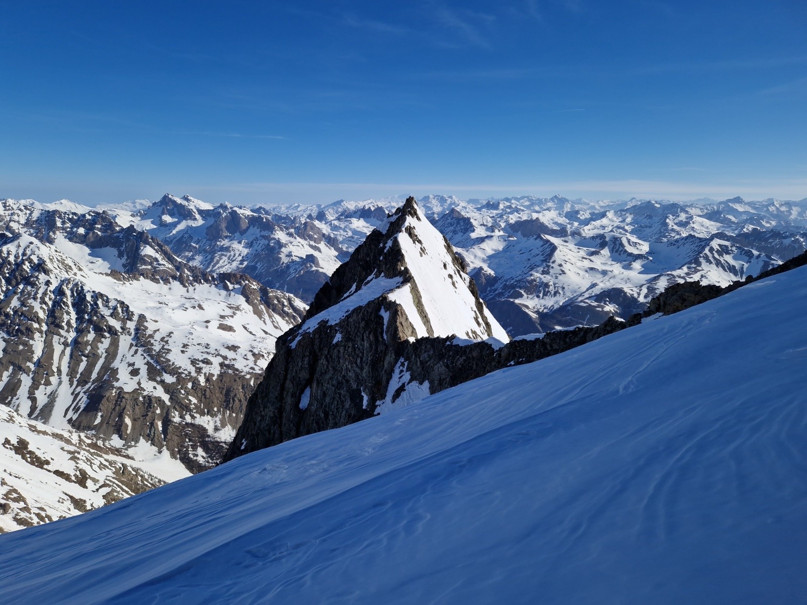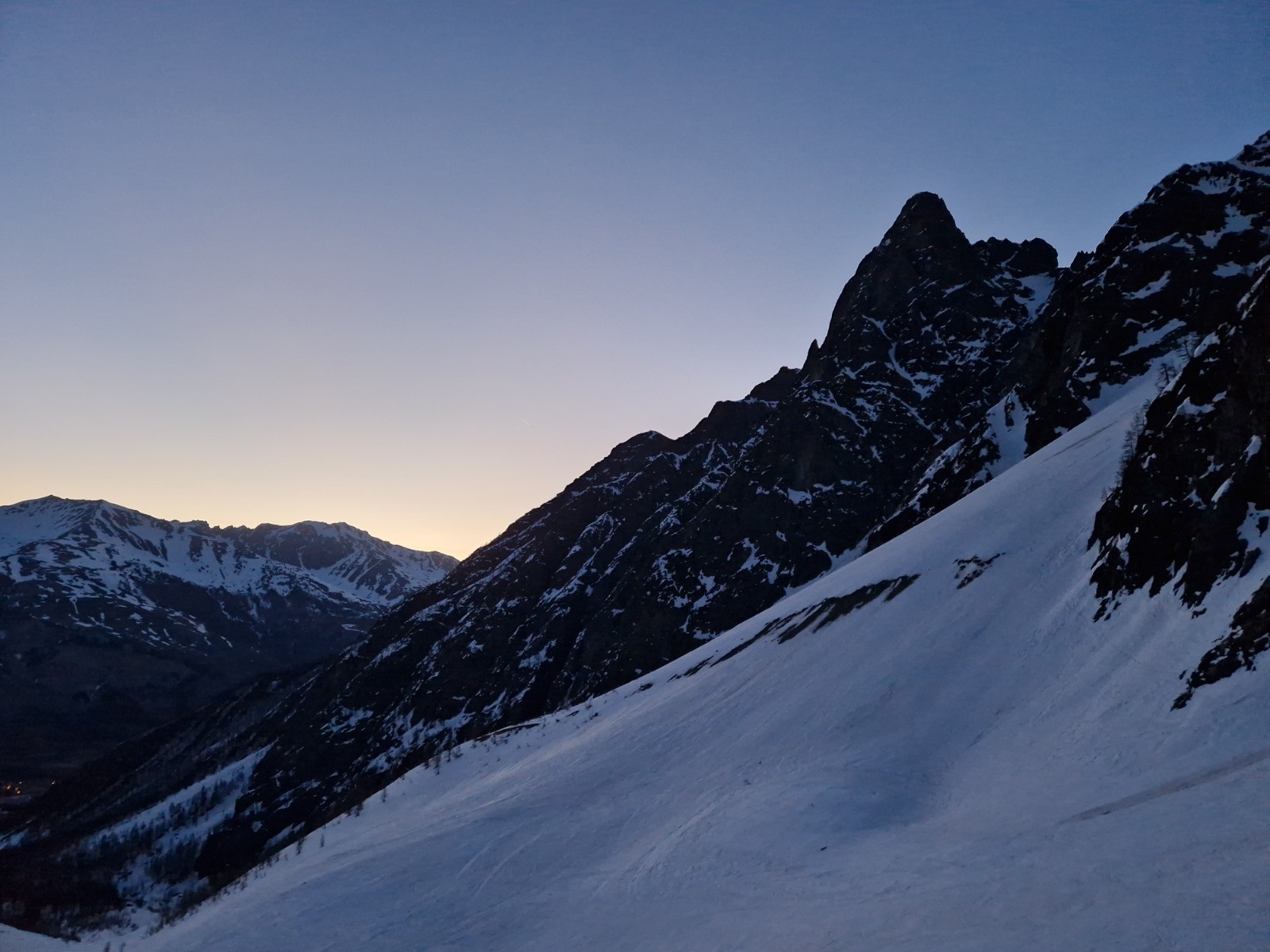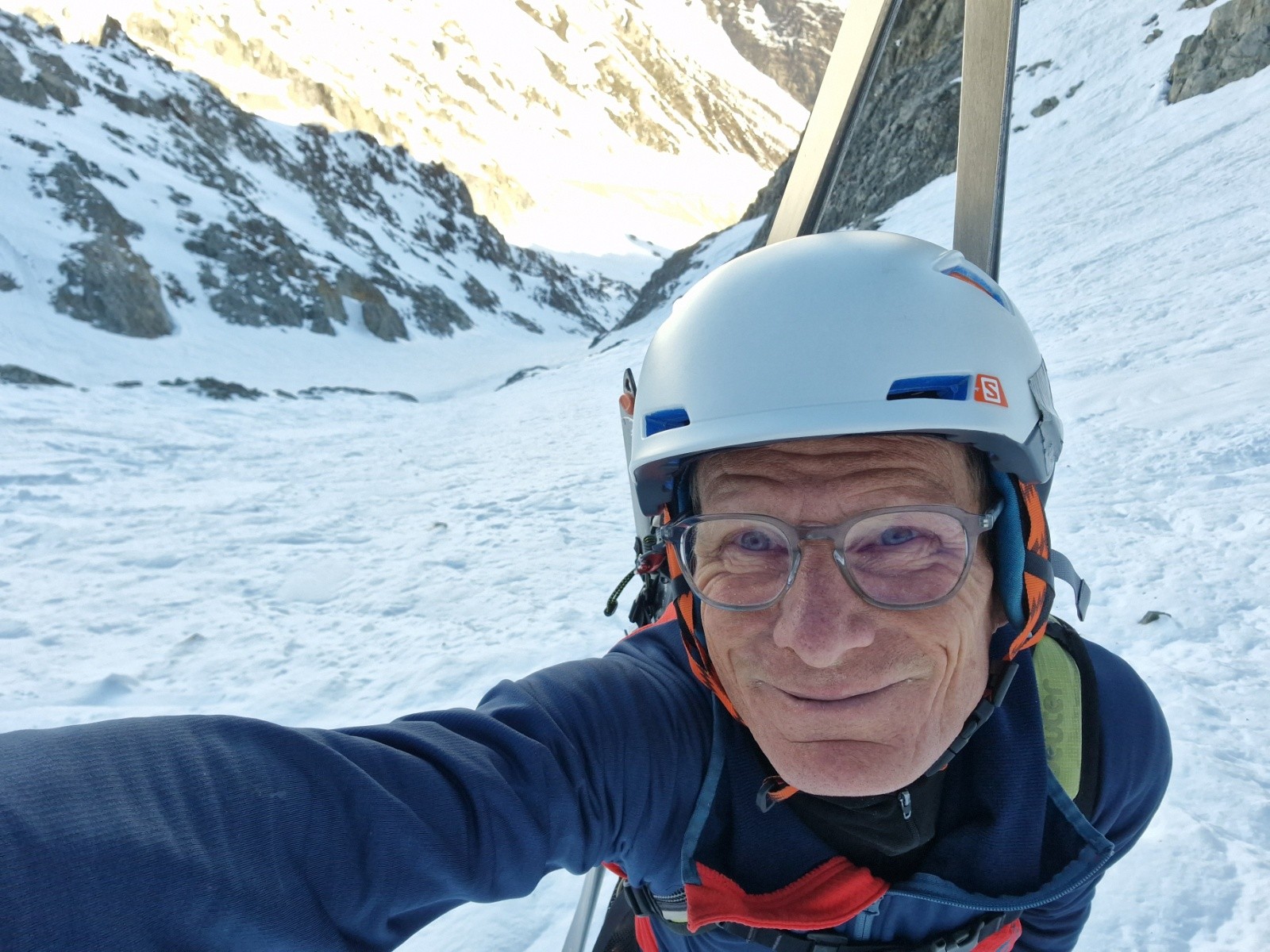 Conditions pour le ski : neige dure dans le bas de l'itinéraire (couteaux utiles) puis la neige devient de plus en plus froide et poudreuse à mesure que l'on s'élève.