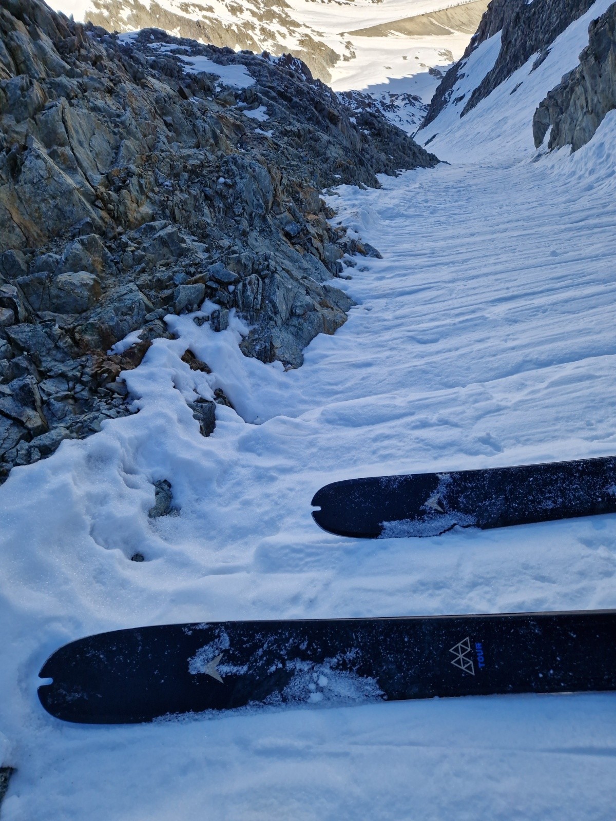 Je monte à ski jusqu'à l'entrée du couloir (avec les couteaux).