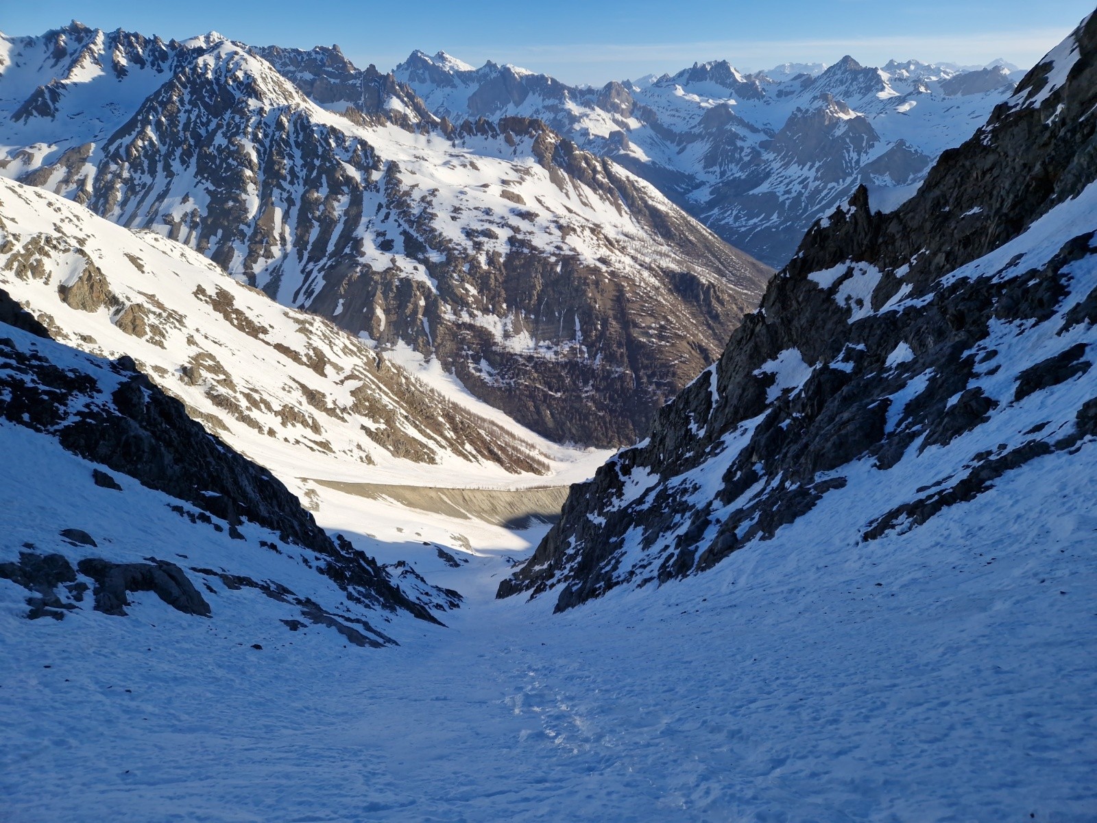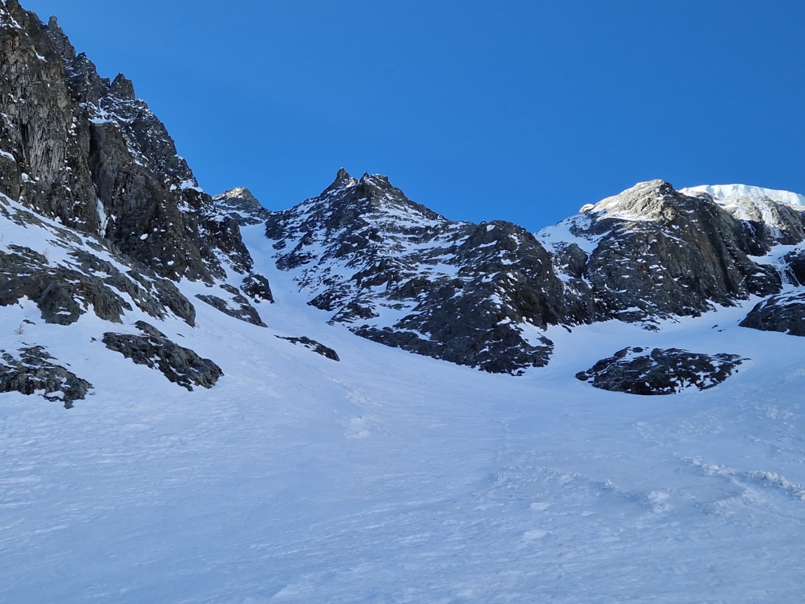 Je remonte ce corridor et débouche dans les pentes supérieures.