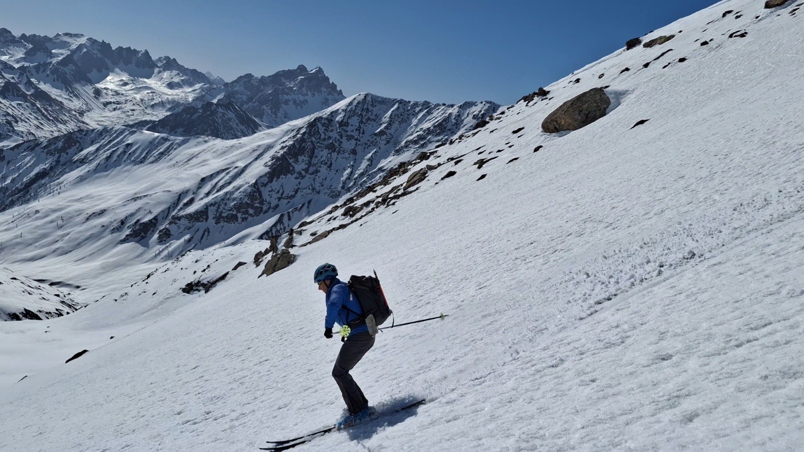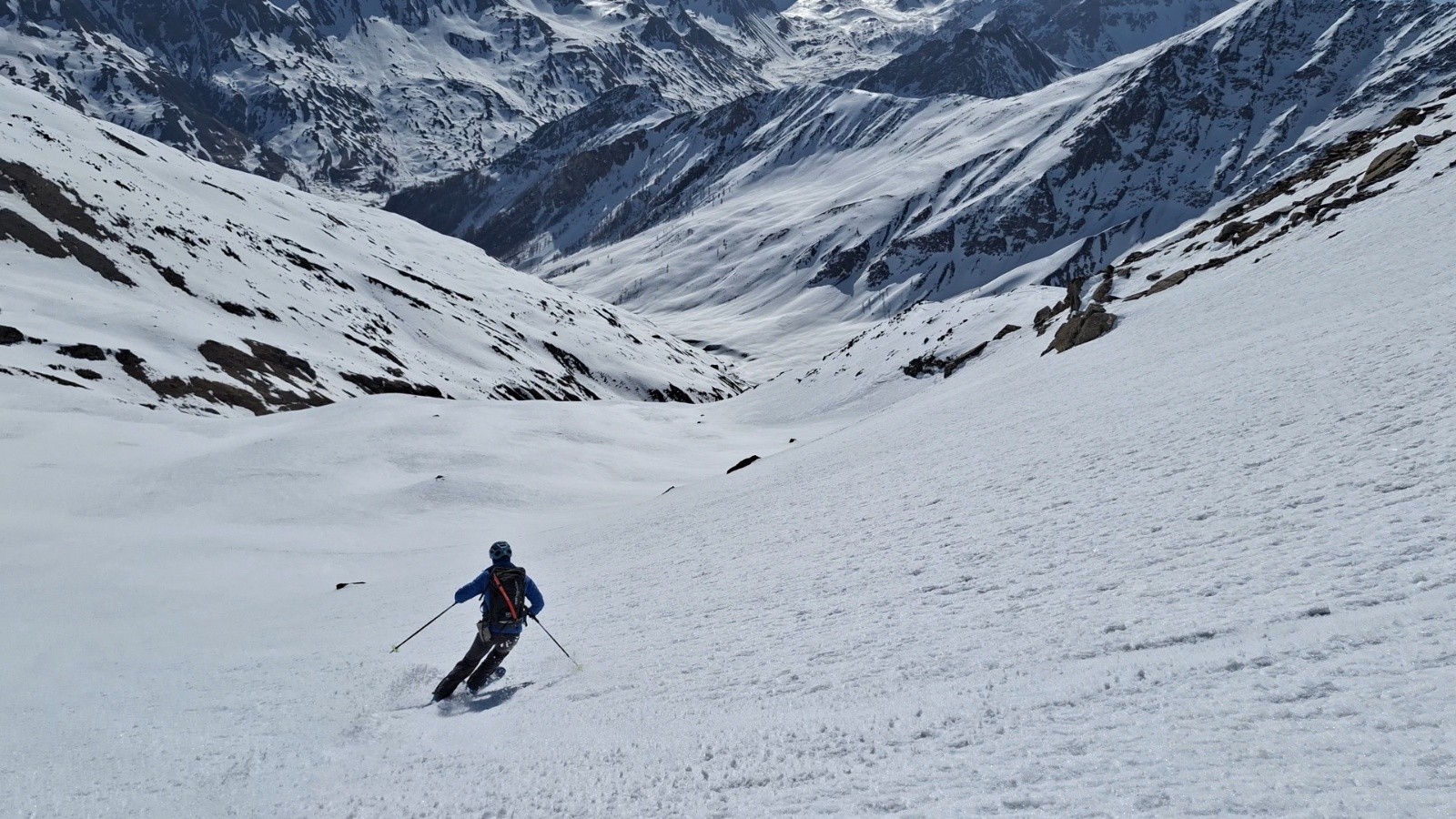 - Descente de la pointe des ratissieres en moquette sur le haut puis soupe qui passe bien en larges virages.