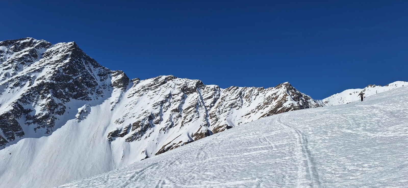Conditions nivo et activité avalancheuse : ne pas passer trop tardivement en Est de l'aiguille. Ce n'est pas parti et chargé.