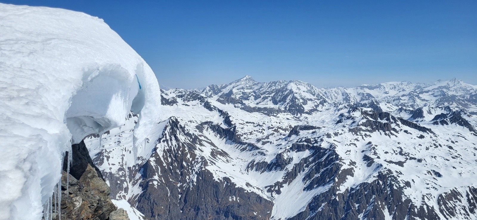 Conditions pour le ski : Bon regel, neige dure jusqu'au refuge (couteaux indispensables), puis bonne neige ou neige revenue permettant une progression facile. Crampons inutiles pour le sommet.