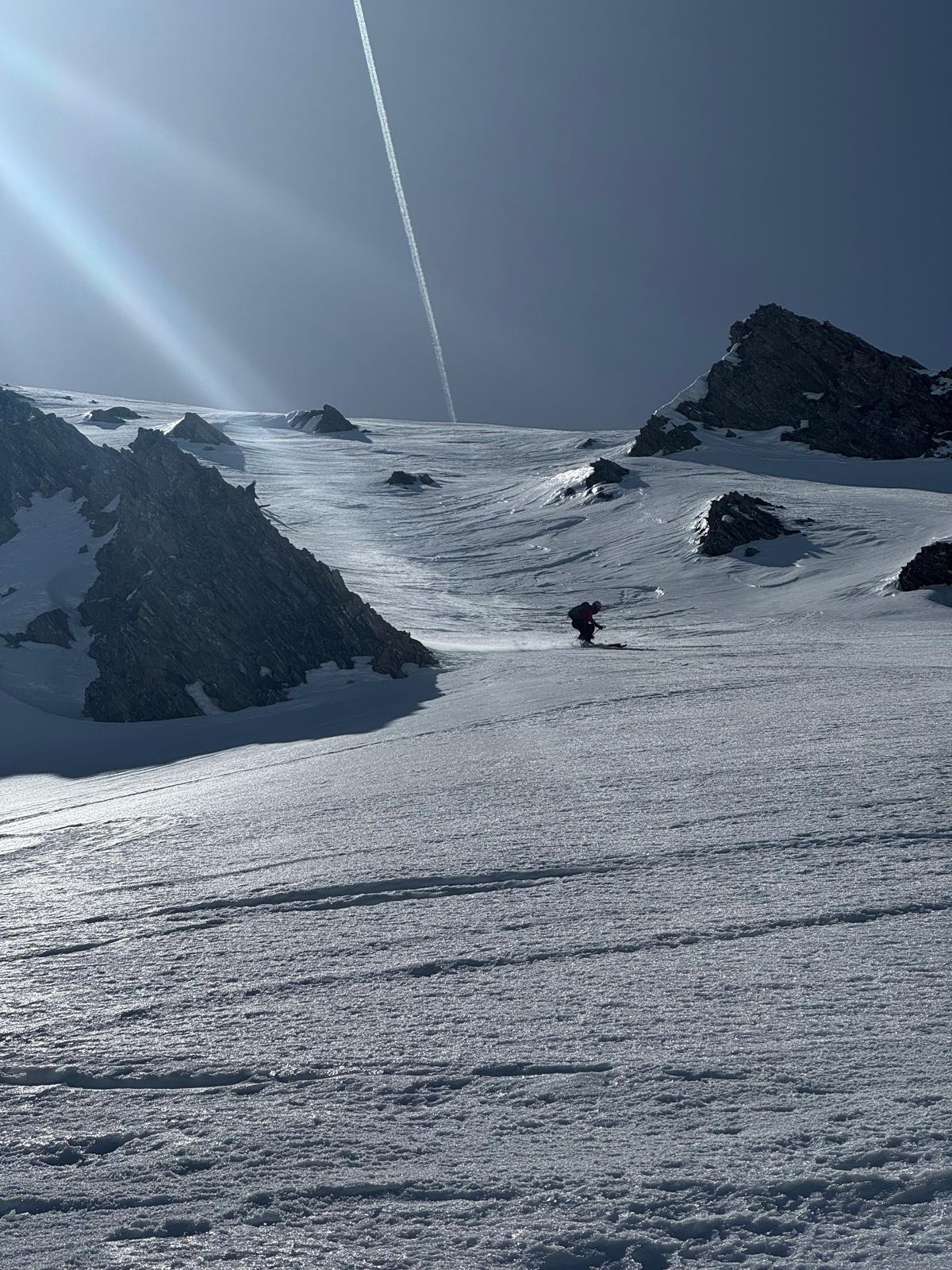 Conditions pour le ski : Couloirs N globalement soufflés mais neige grippante assez sécurisante.