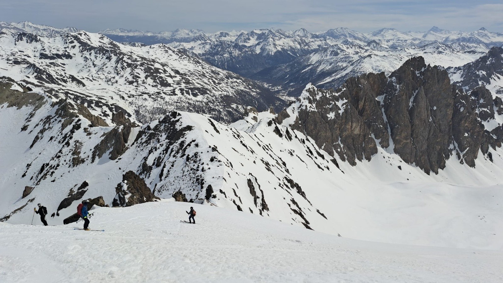Dernière remontée jusqu'à la crête de la Casse Blanche au pt 2914, la météo est toujours favorable avec un léger voile qui retarde le réchauffement de la dernière descente.