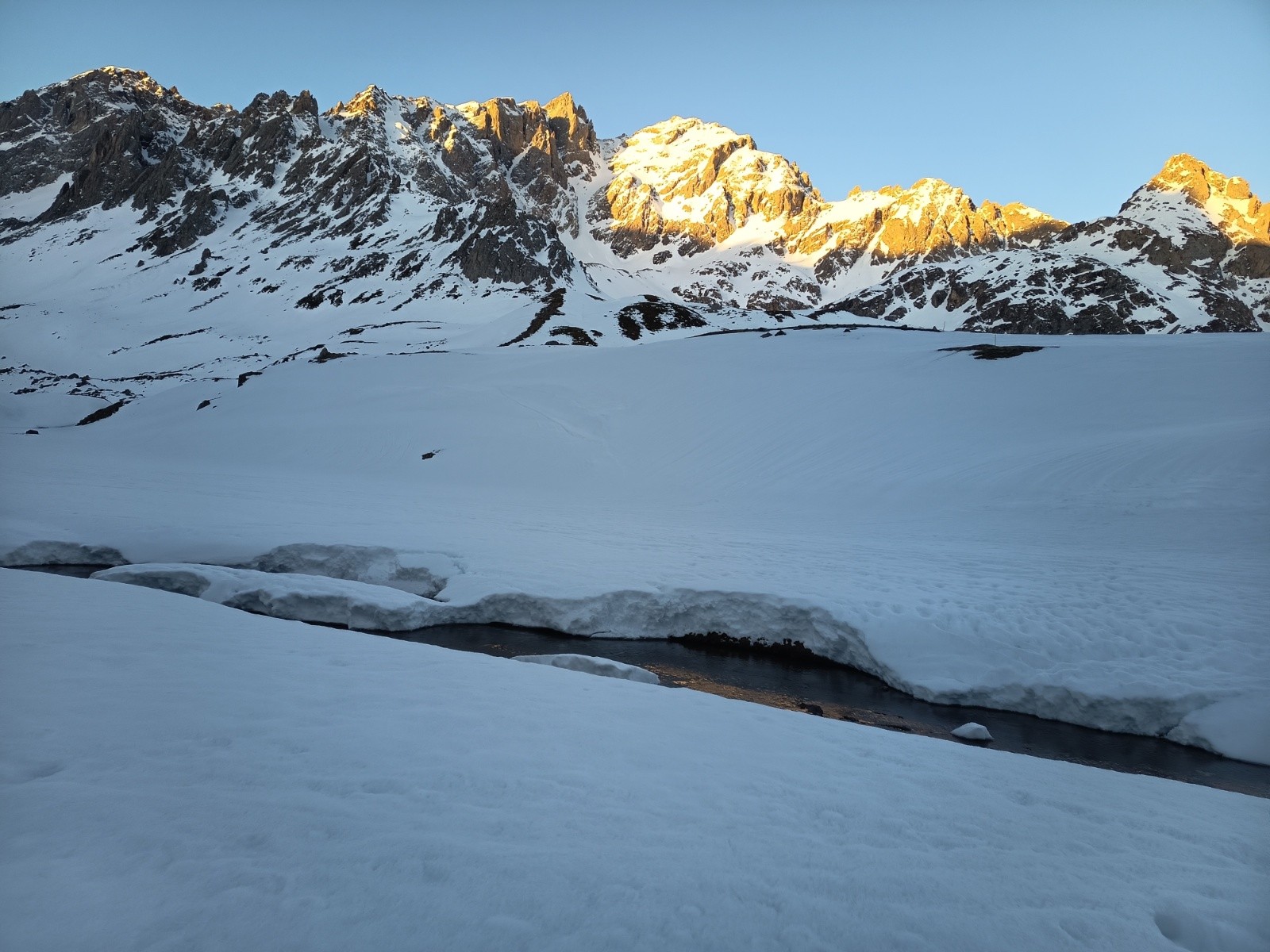 A plan Lachat, l'ambiance change avec le soleil qui illumine le grand Galibier. La montée vers le lac des Cerces puis vers le sommet est esthétique et variée, ça déroule tranquillement.