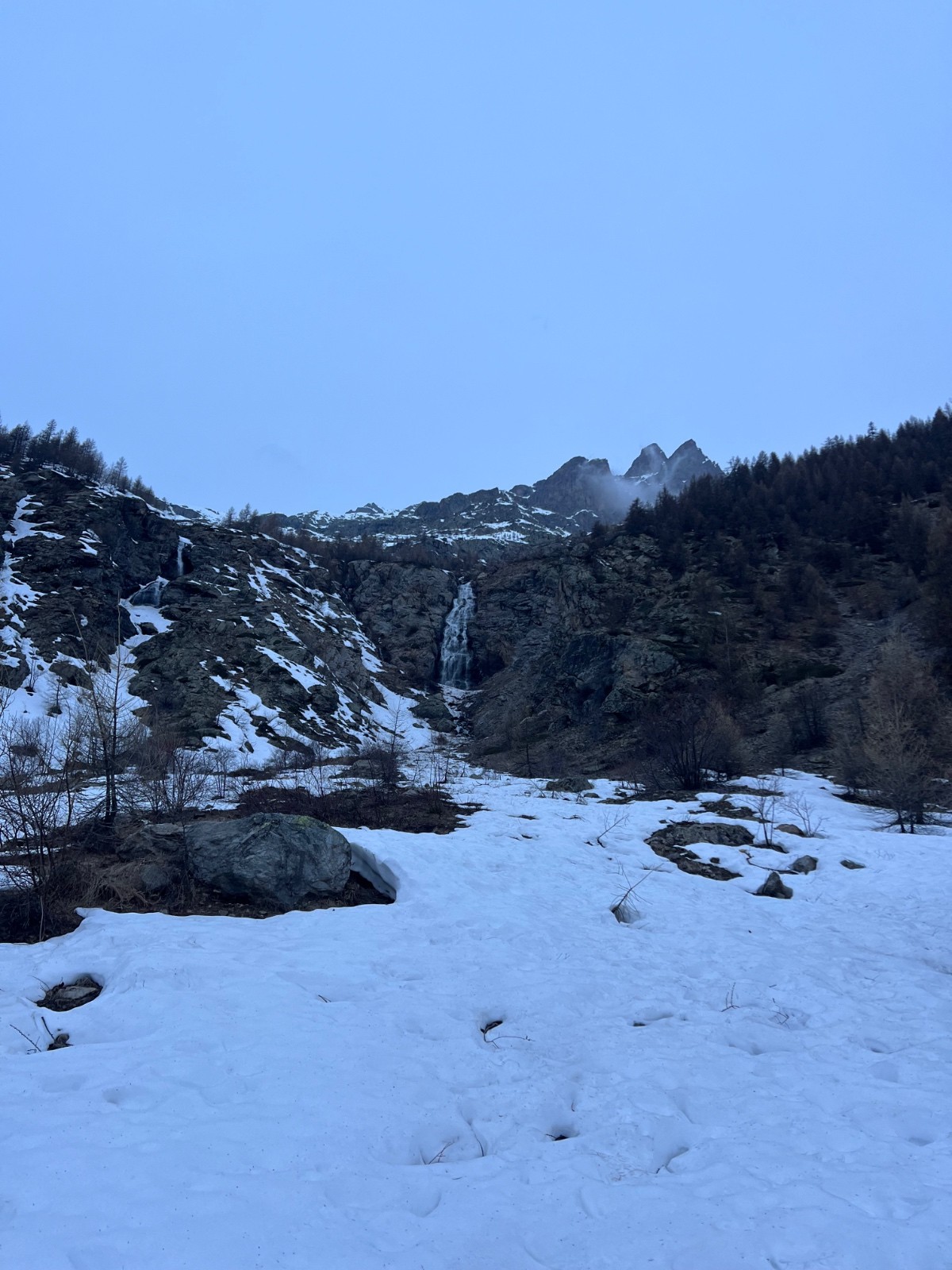 Altitude de chaussage/déchaussage : 1700m puis un déchaussage du bas de la cascade d'accés jusqu'a environ 2000m
