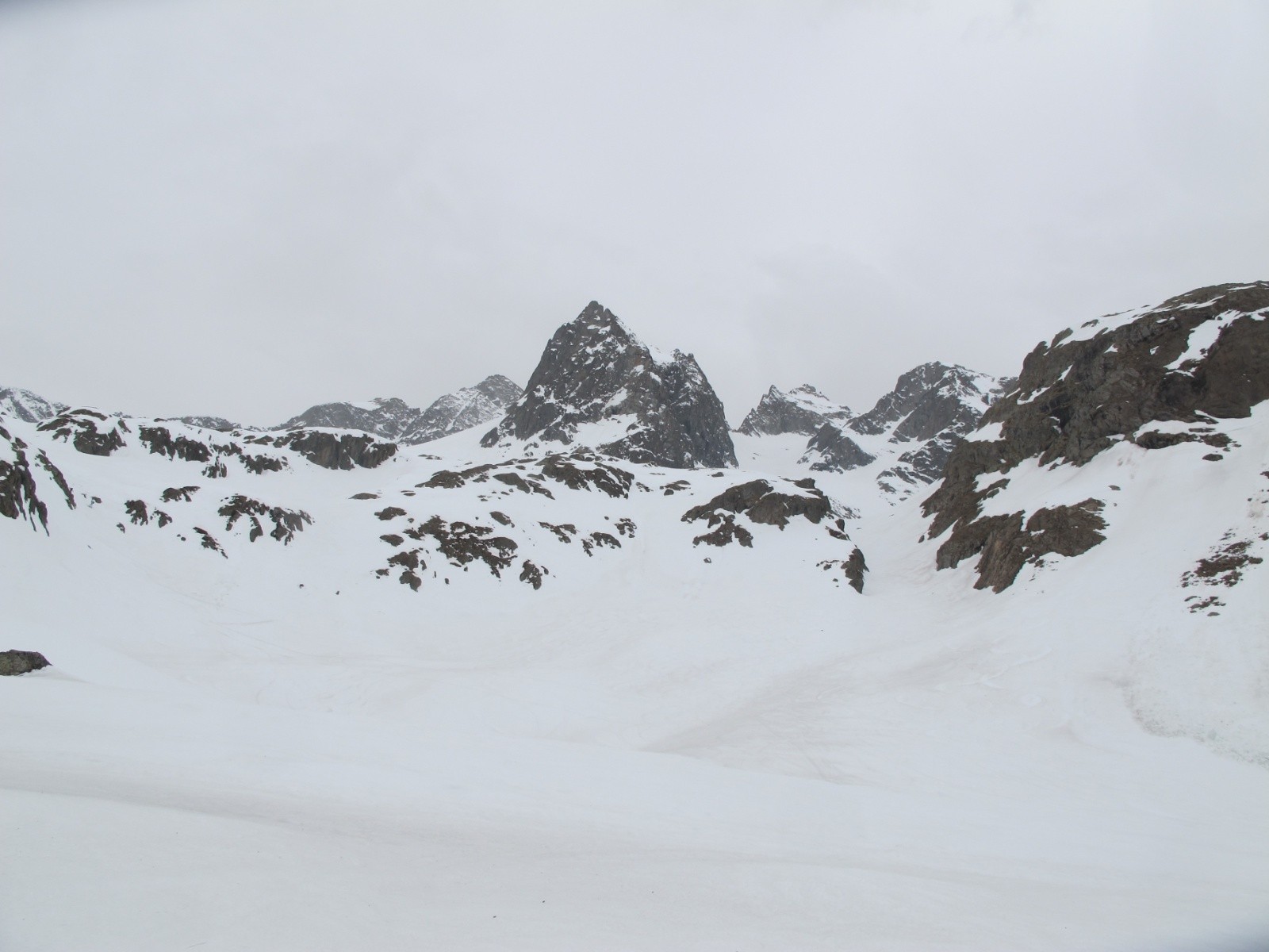 Conditions pour le ski : Nuit couverte, regel incomplet mais présent. Montée sans s'enfoncer, descente en neige humide sur 15cm en versant humidifié la veille (E/SE) et en neige froide tassée et parfois irrégulière (vent) en versant ombragé (E/NE). Passage de la brèche Clotilde, en S, en neige pas complètement regelée mais dure quand même.