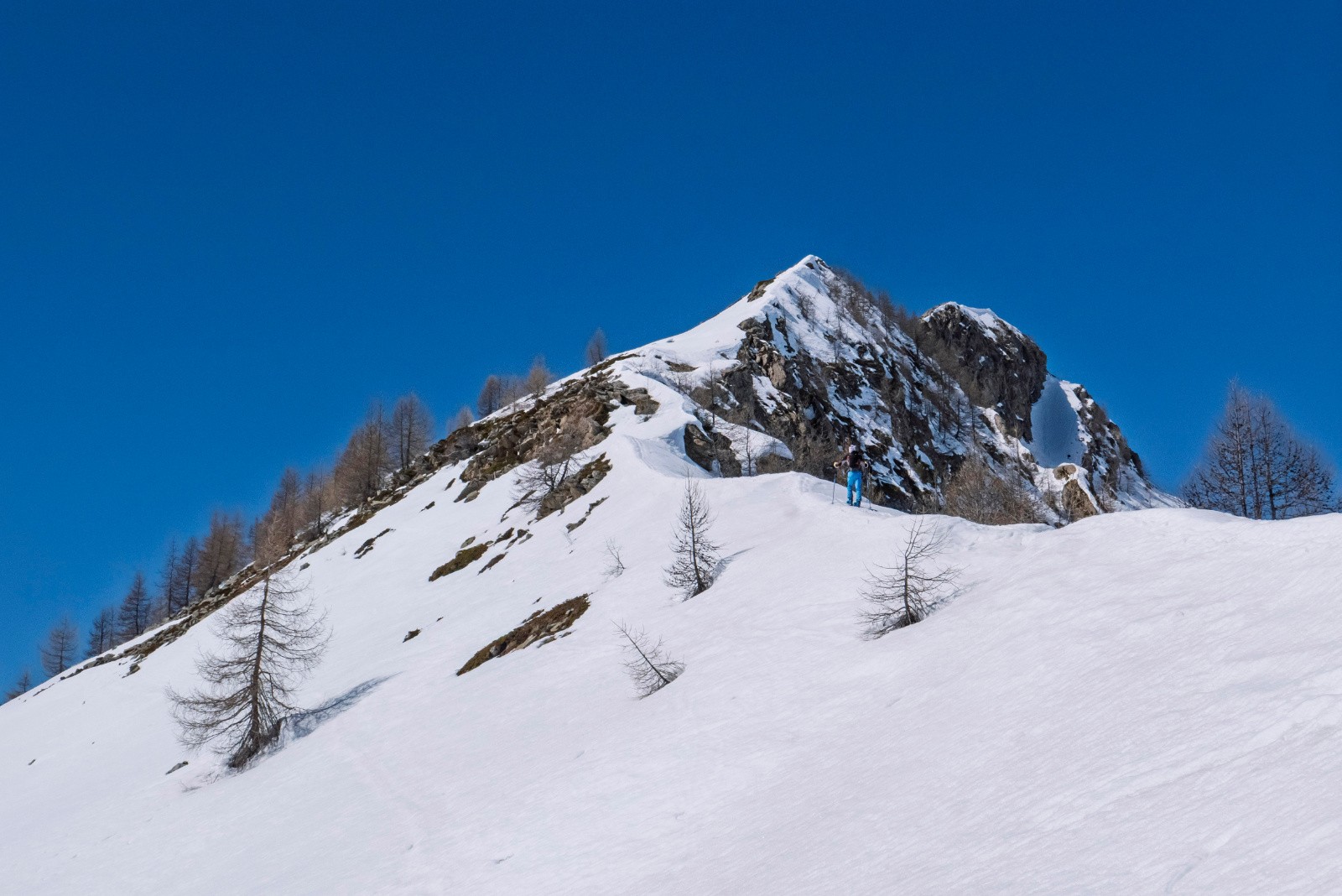 Itinéraire suivi : Montée topo jusque vers 2260, redescente sur Clot Lamiande replat 2070 >Montée à l'épaule sud par le versant NE puis descente, repeautage à 2070, remontée partielle de l'arête jusque 2300 et descente sud.
