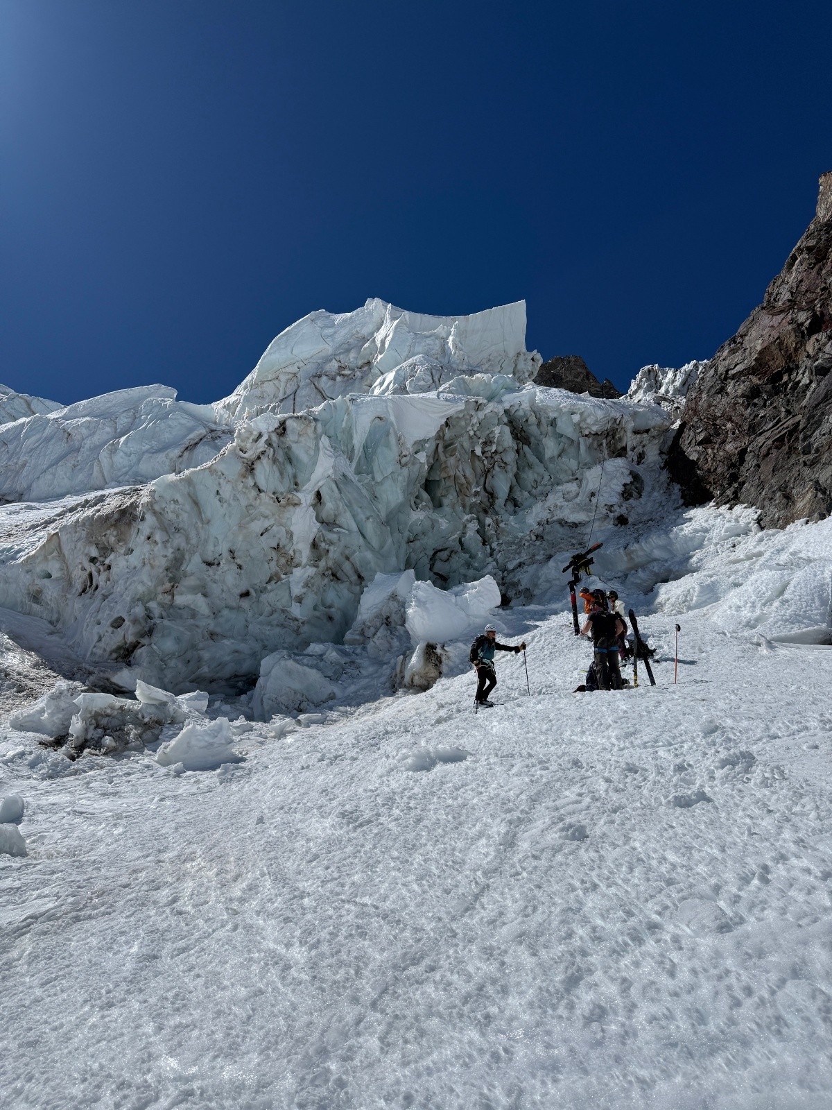 On s'attendait à trouver le fameux "couloir Chaud et sa pente bien raide". Mais le glacier est vivant. Ce couloir n'est plus !