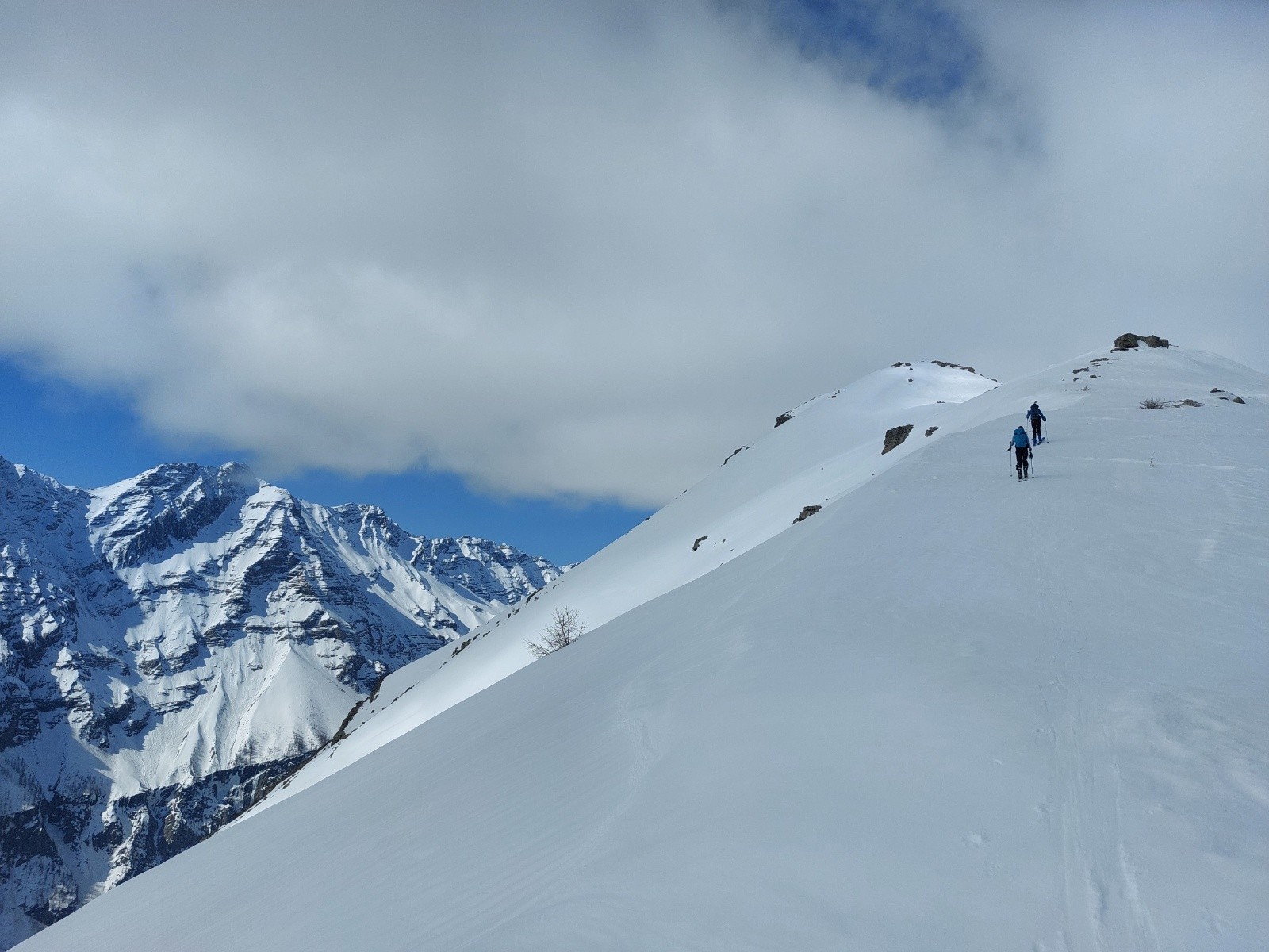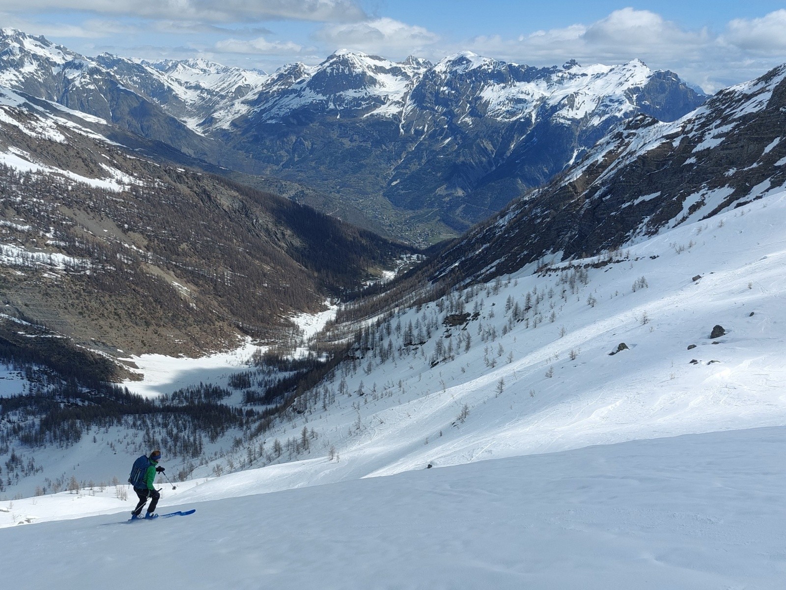 Conditions pour le ski : bonnes. Le nuage a limité la transformation donc neige raisonnablement dure et bon grip sauf en bas, sur la crête de Plarol et certaines portions sous le col du Bal le tout en moquette. Pas de soupe y compris en bas du vallon à 13h passé