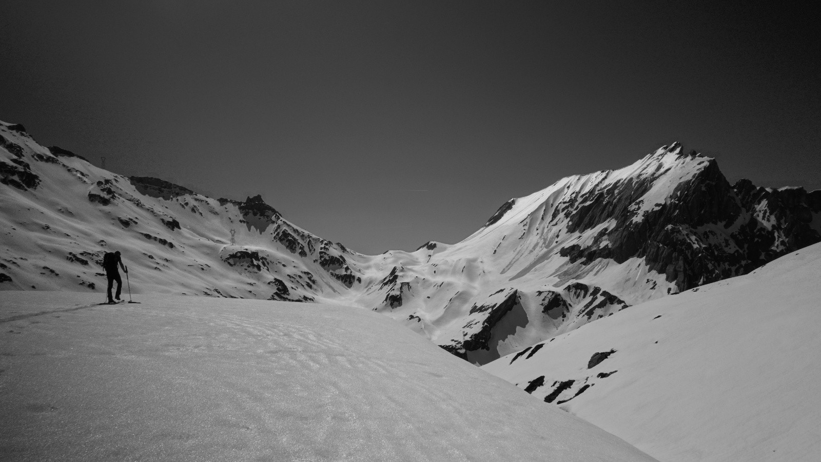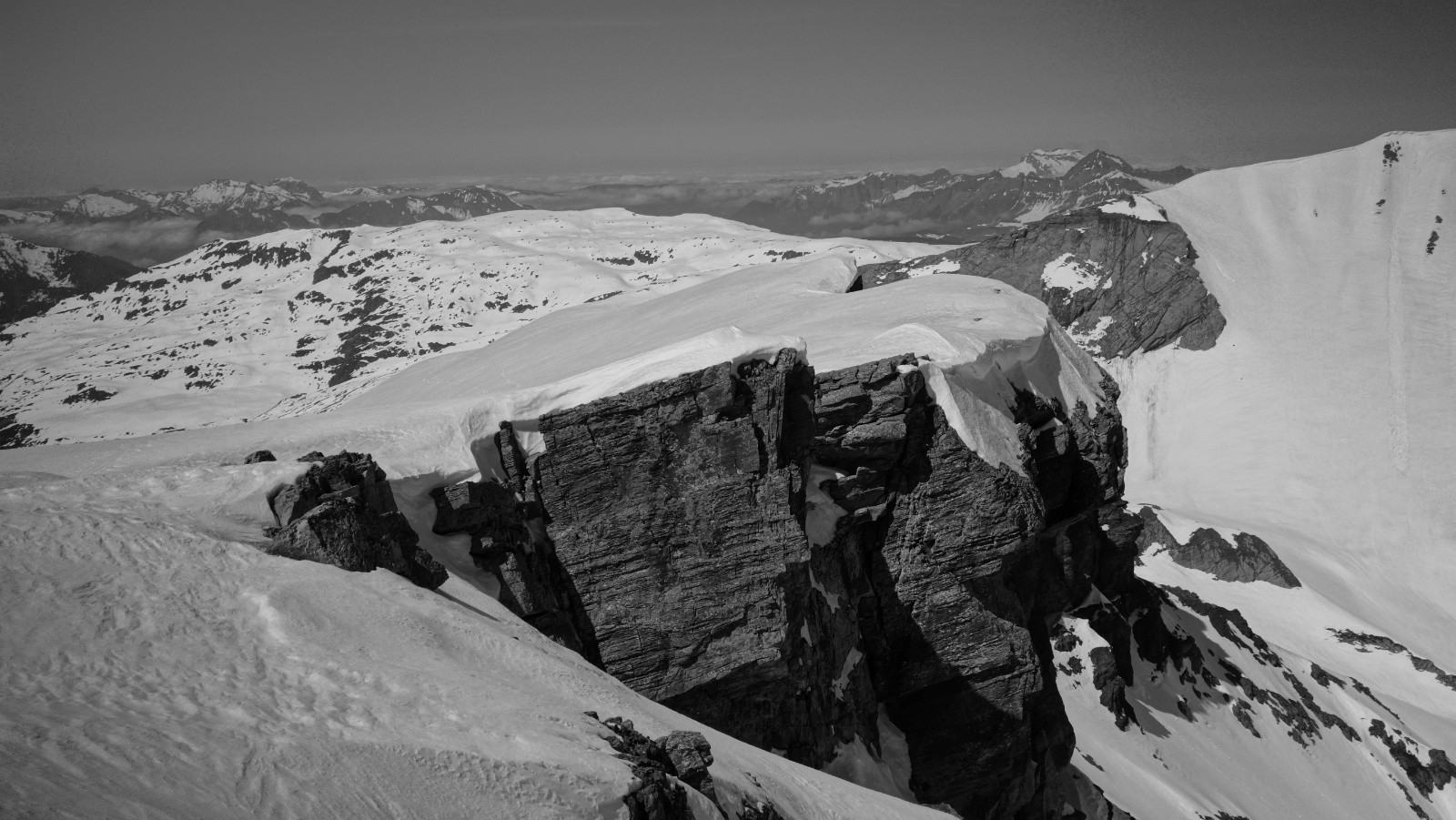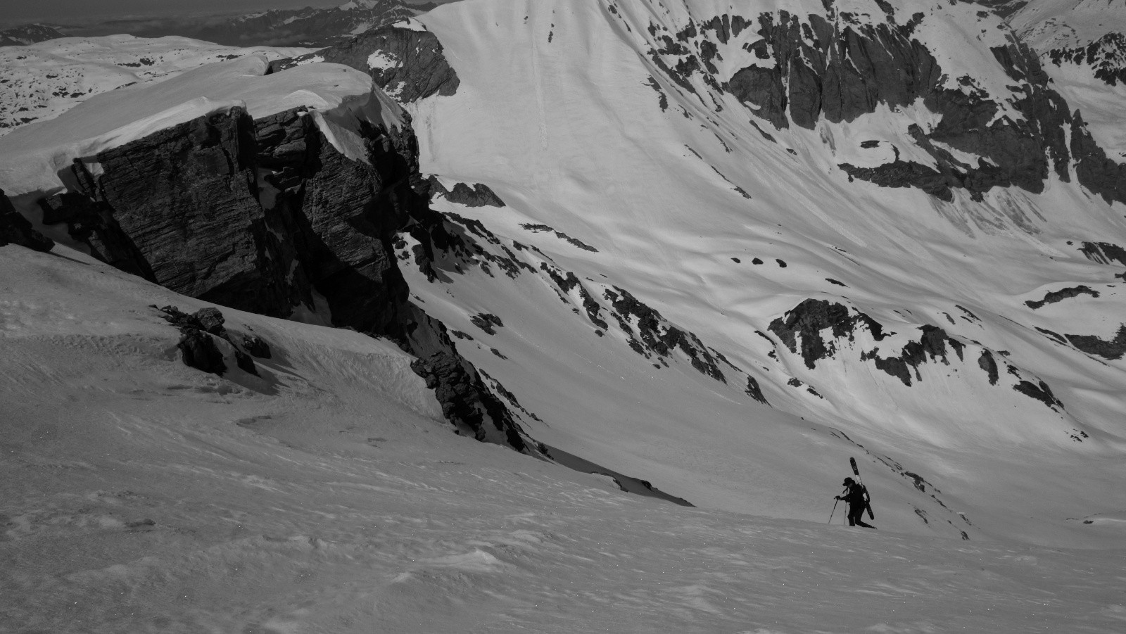 Conditions pour le ski : Bon regel nocturne moquette parfaite à 12H30 nous serons les seuls à se diriger vers le couloir à ZUB. Quel point de vue sur MB