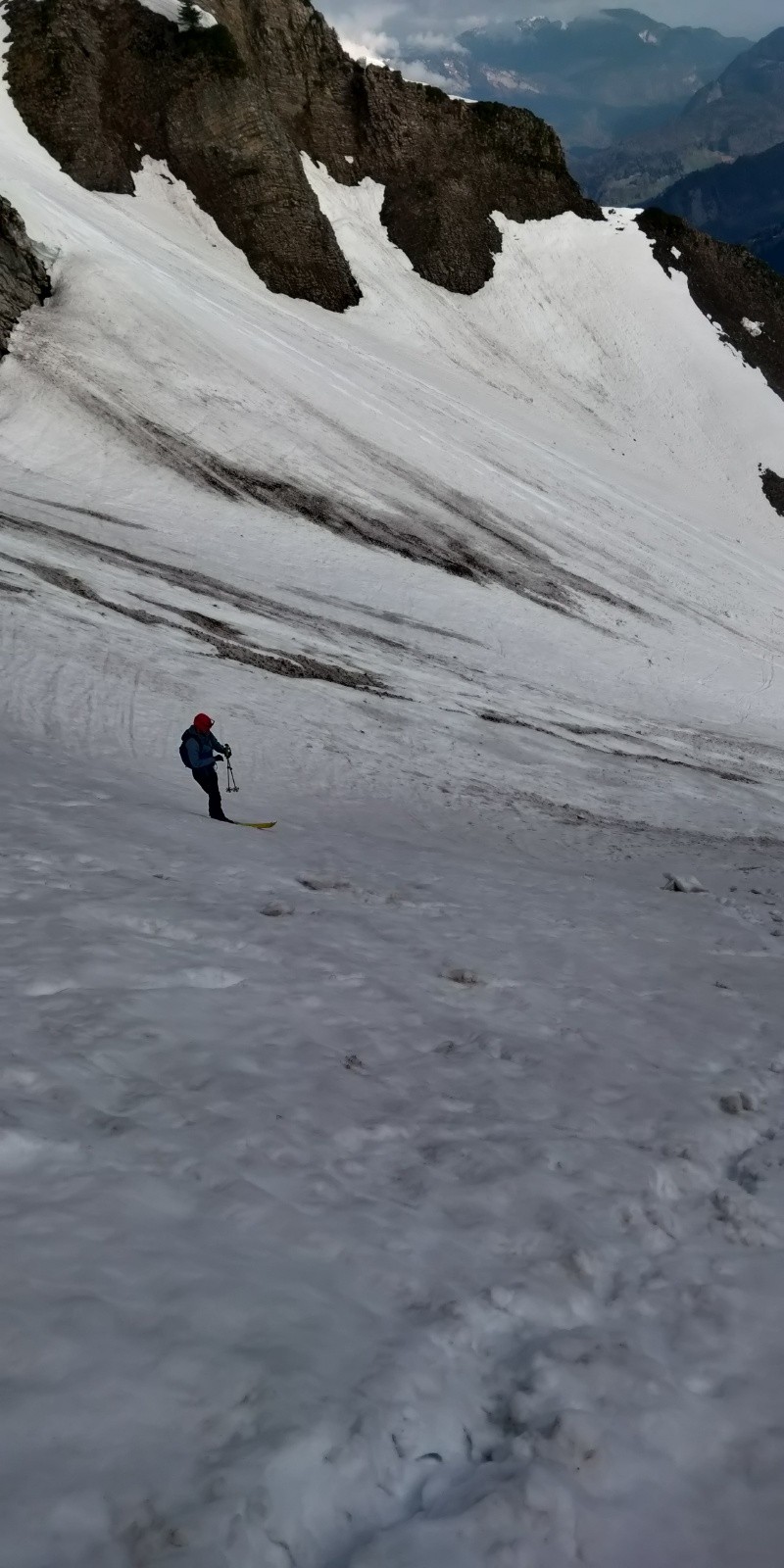 Conditions pour le ski : quantité de neige OK, qualité moyenne, neige de printemps qui se ski bien, pas de regel nocturne manifestement