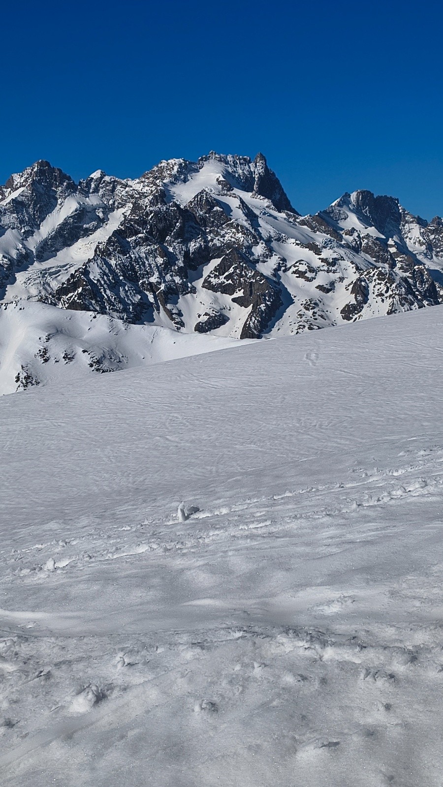 Horaires : Départ du sommet à 10h15. Bonne pioche pour le sommet. Ensuite nous avons posé 10 minutes sur un replat pour attendre un parfait décaillage. Ce fut alors tout bon jusqu'en bas.