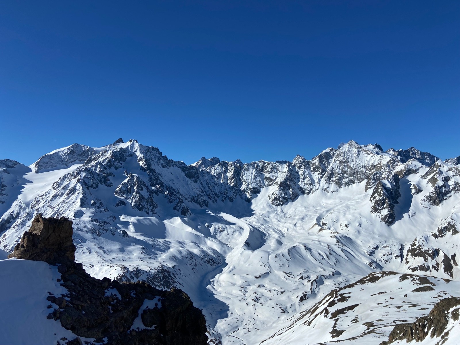 Itinéraire suivi : crête de Combeynot autour du point 2953, direct N, couloirs NE et N