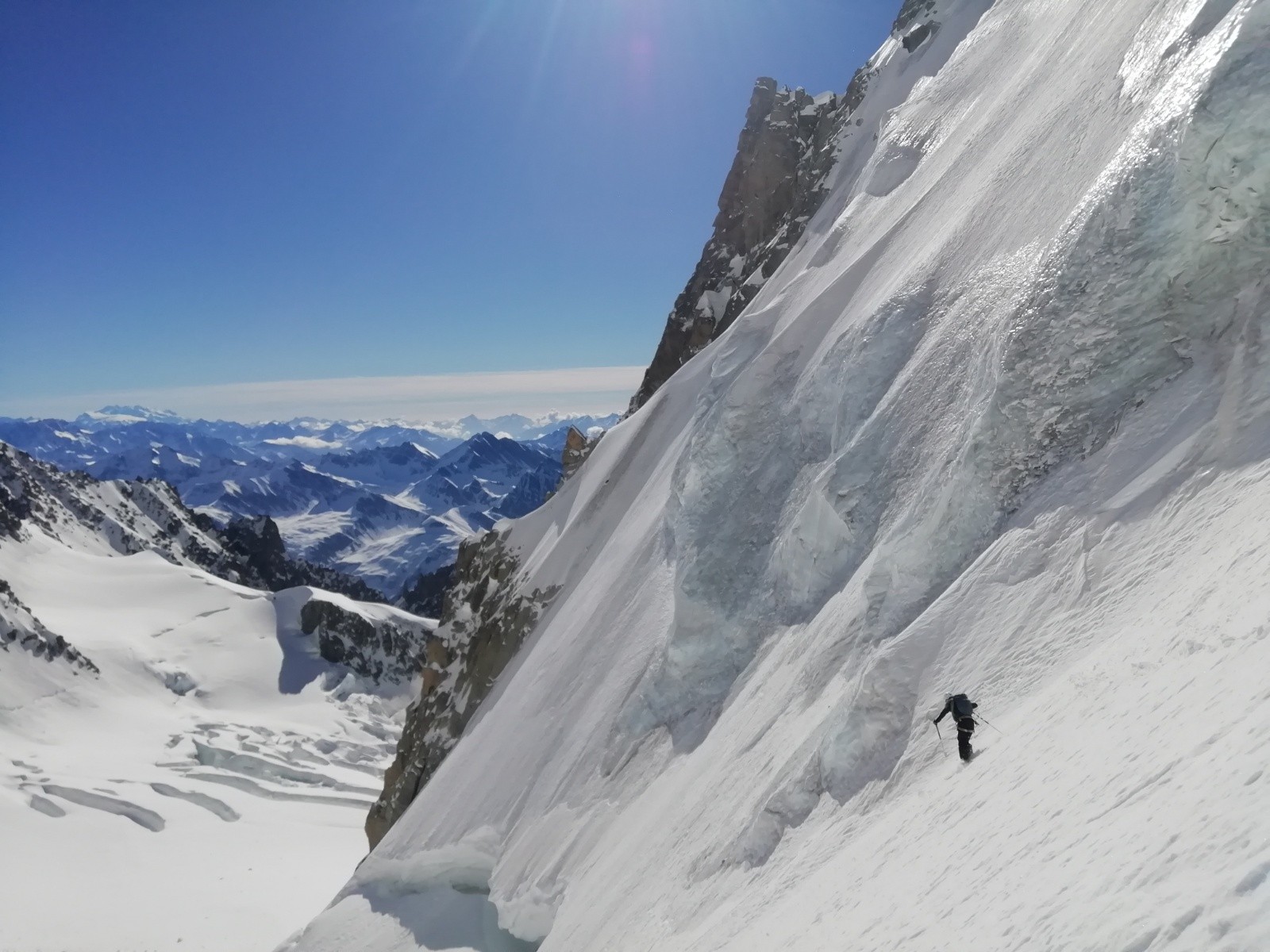 J2 (jeudi) : Bivouac > Eperon de la Brenva (stop vers 4300m sous les séracs sommitaux), 1500m D+