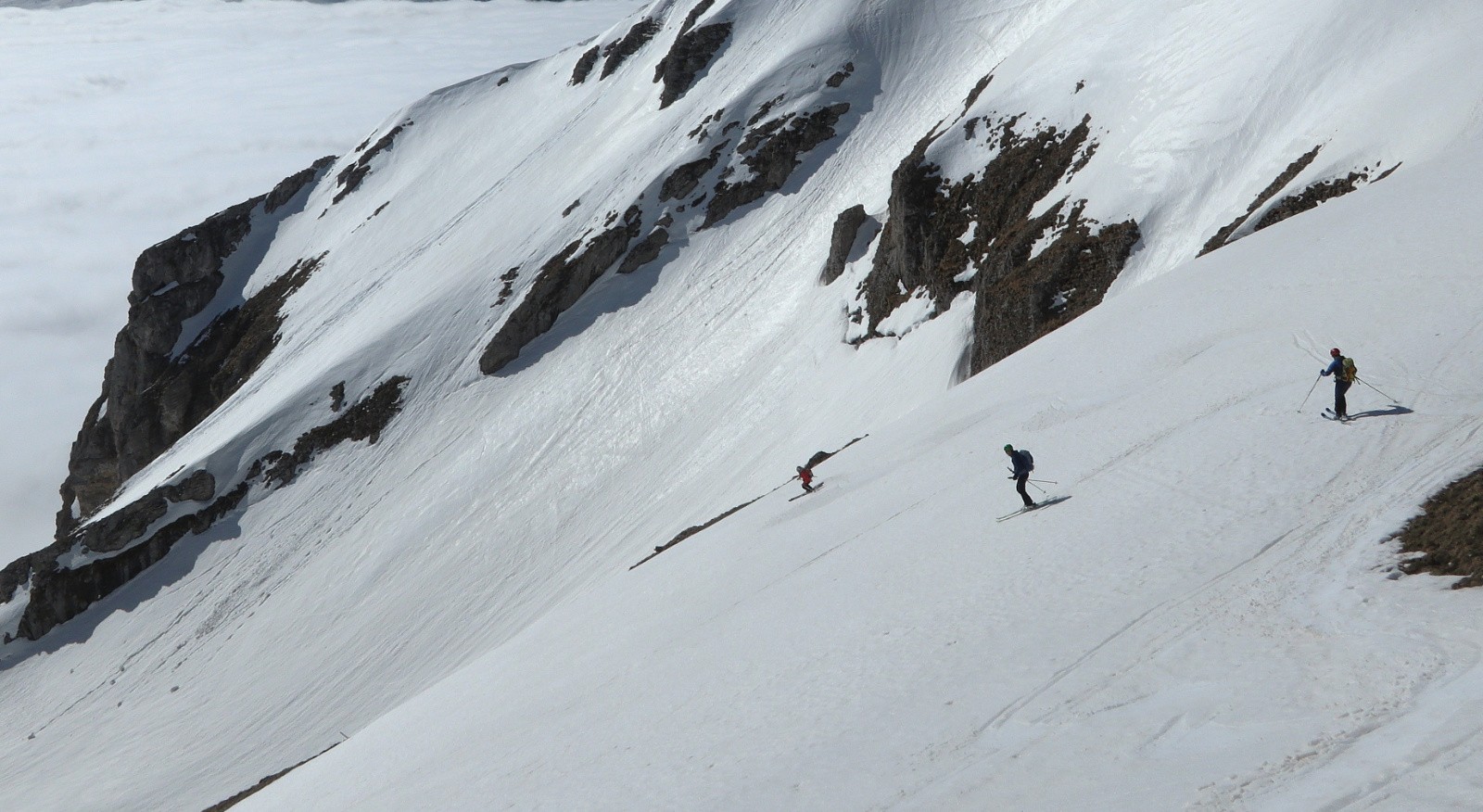 On a tricoté au dessus des nuages jusqu’à leur désagrégation totale pour finir la descente au soleil.