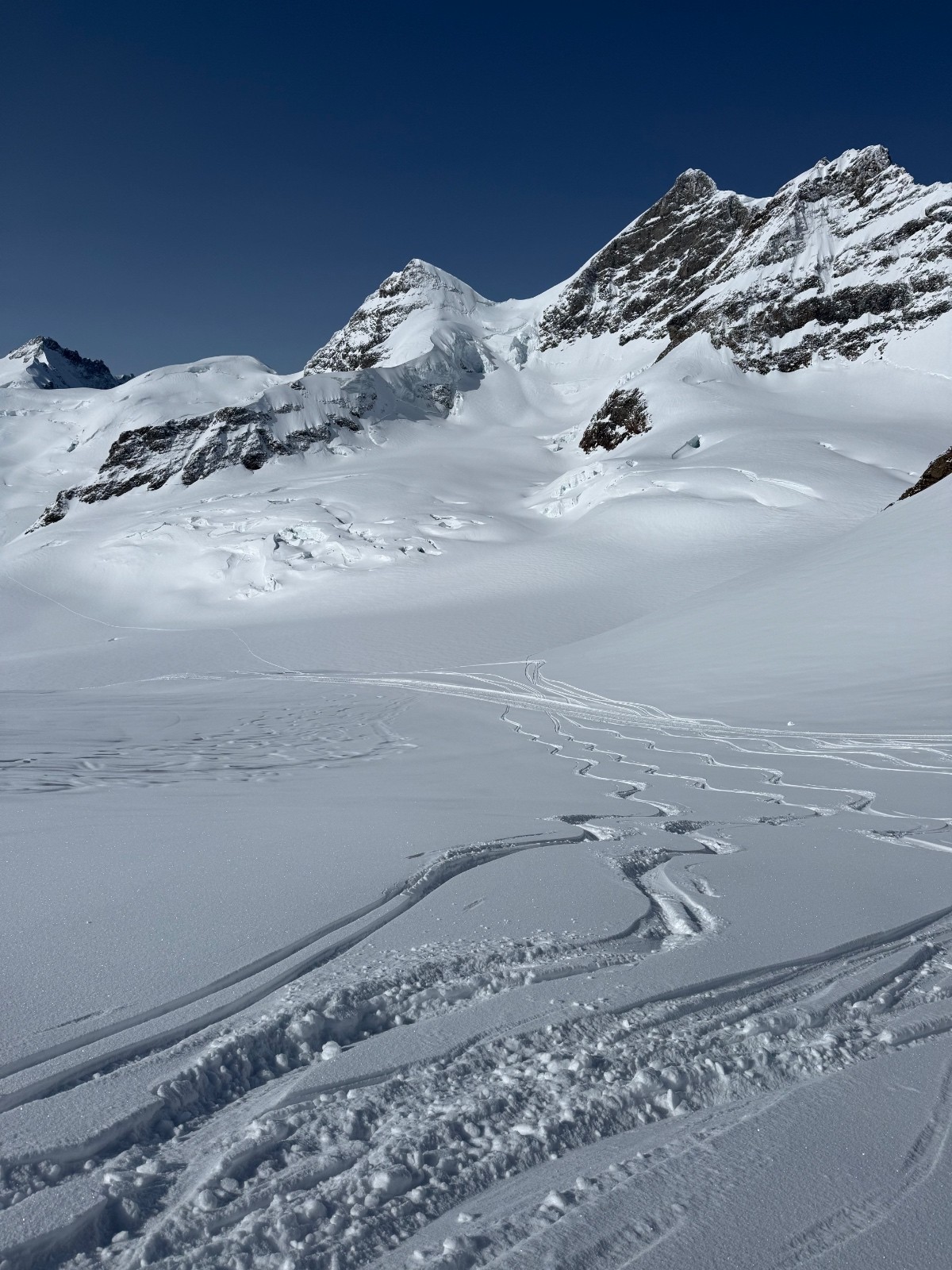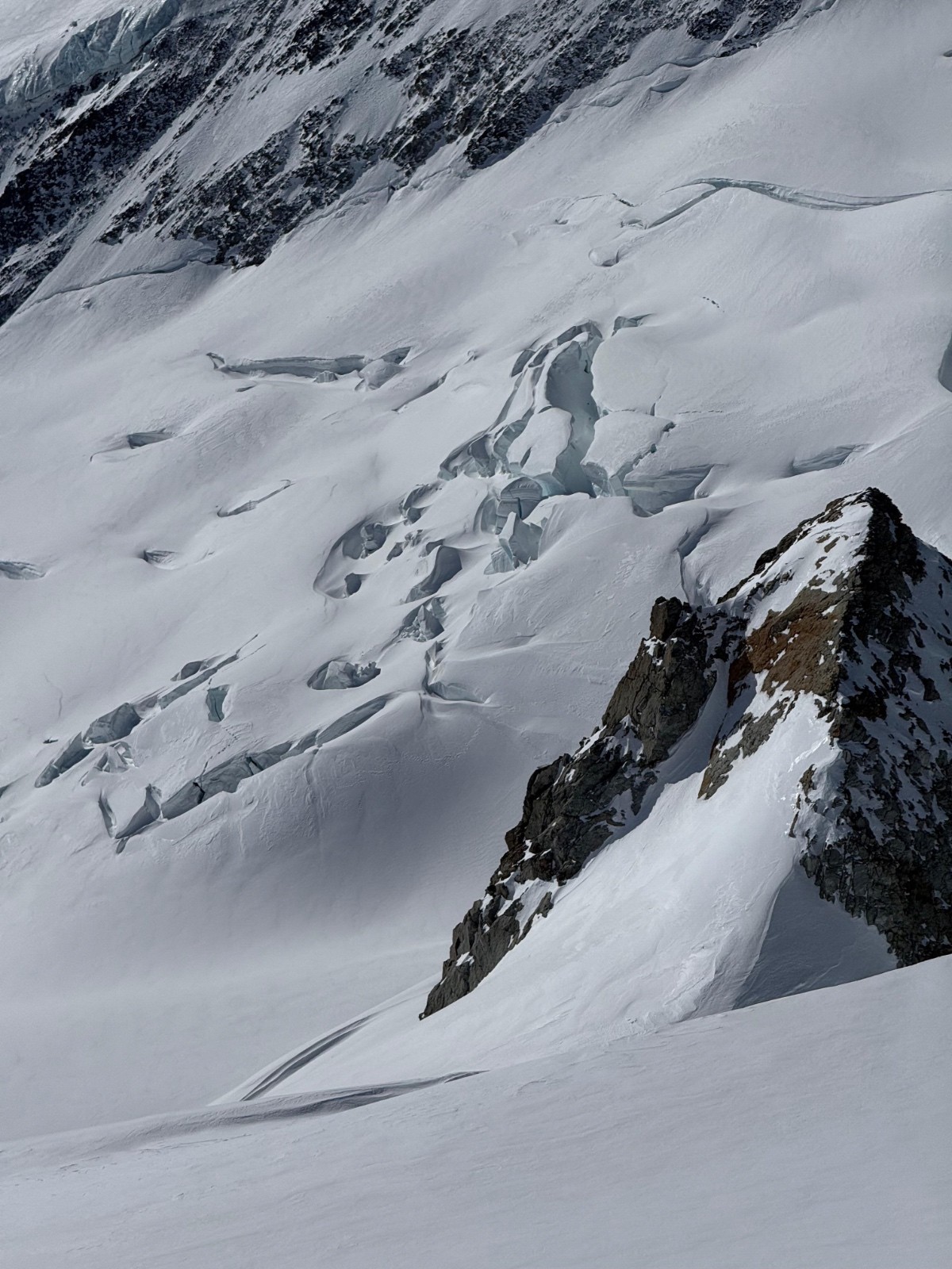 Jour 1: départ Jungfraujoch, ascension du Kranzberg Südgipfel par son versant SE en AR puis remontée des nombreuses marches jusqu’à Konkordia Hütte. D+:1200m/D-: 2000m.