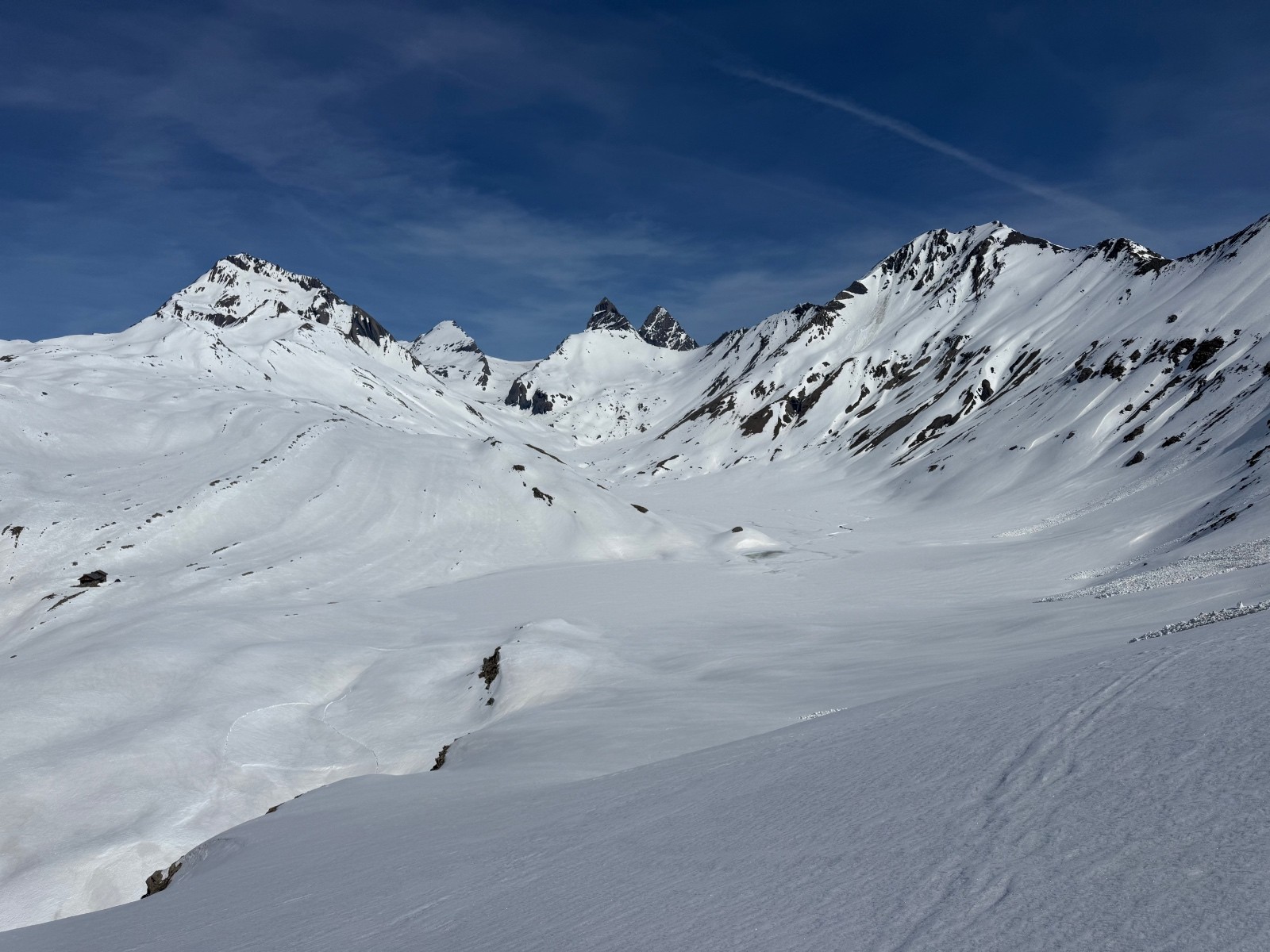 Personne au départ des Hières, 4 dans le vallon du Fond. Très belle vue et ambiance une fois sorti au col de la Charrat.