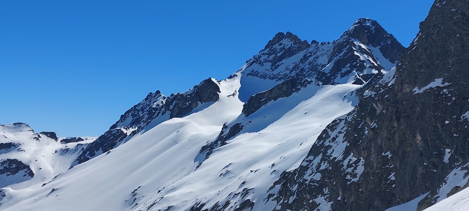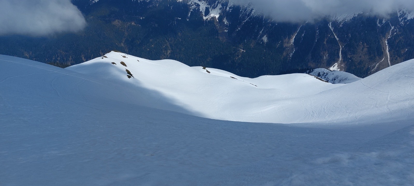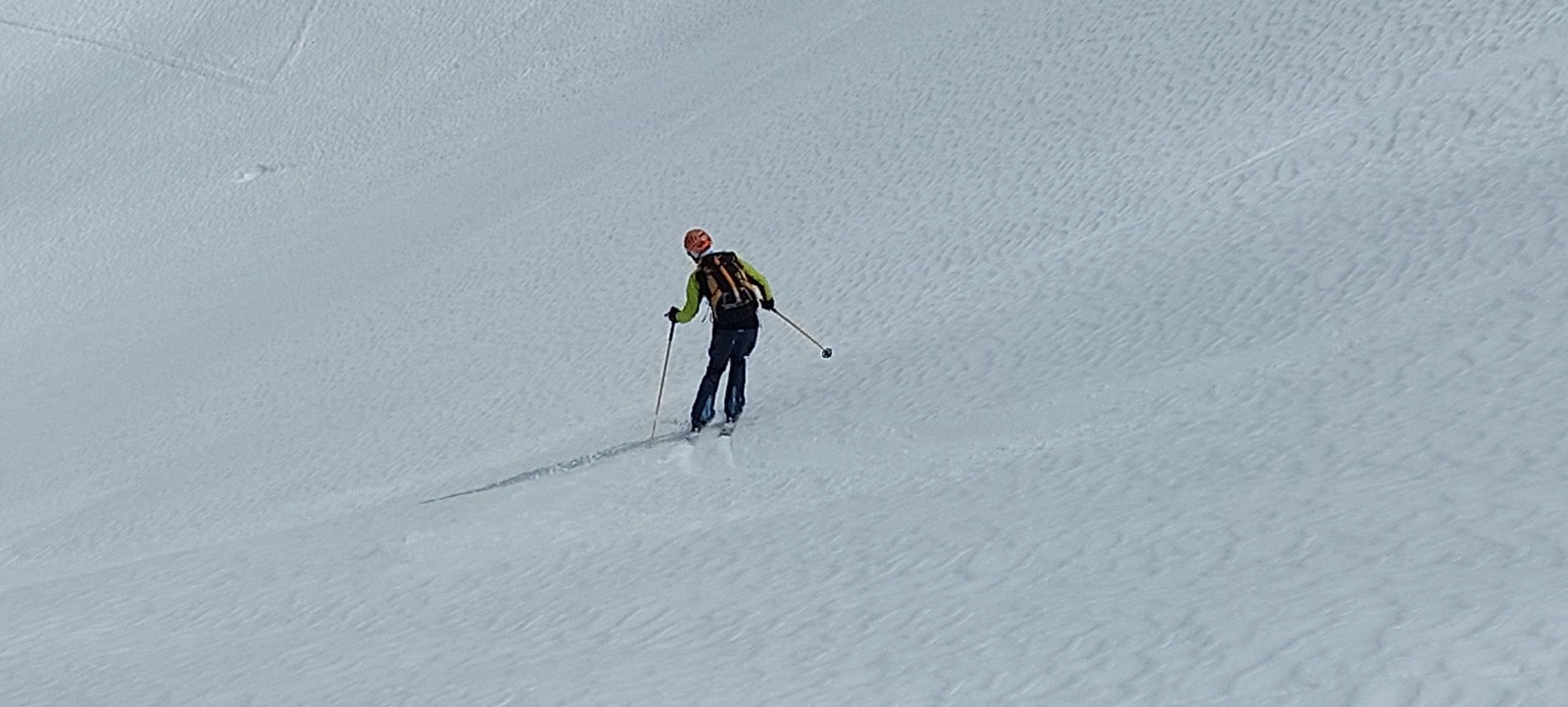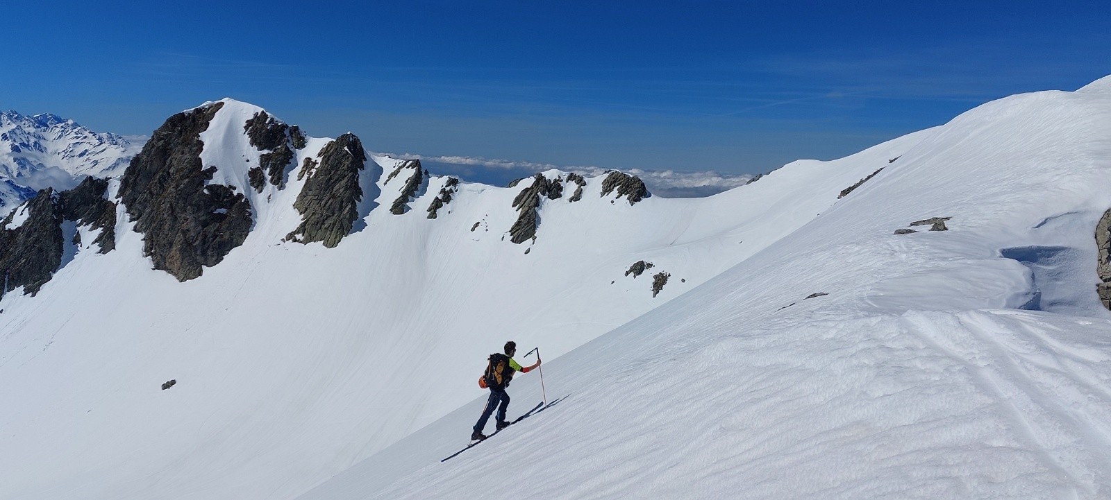 Conditions pour le ski : de longues portions en neige quasi-indécente, façon 'moquette' ou 'vieille poudre tassée attendrie' sur des vallons lisses... un régal... je ne vais pas insister, ça va faire des histoires !