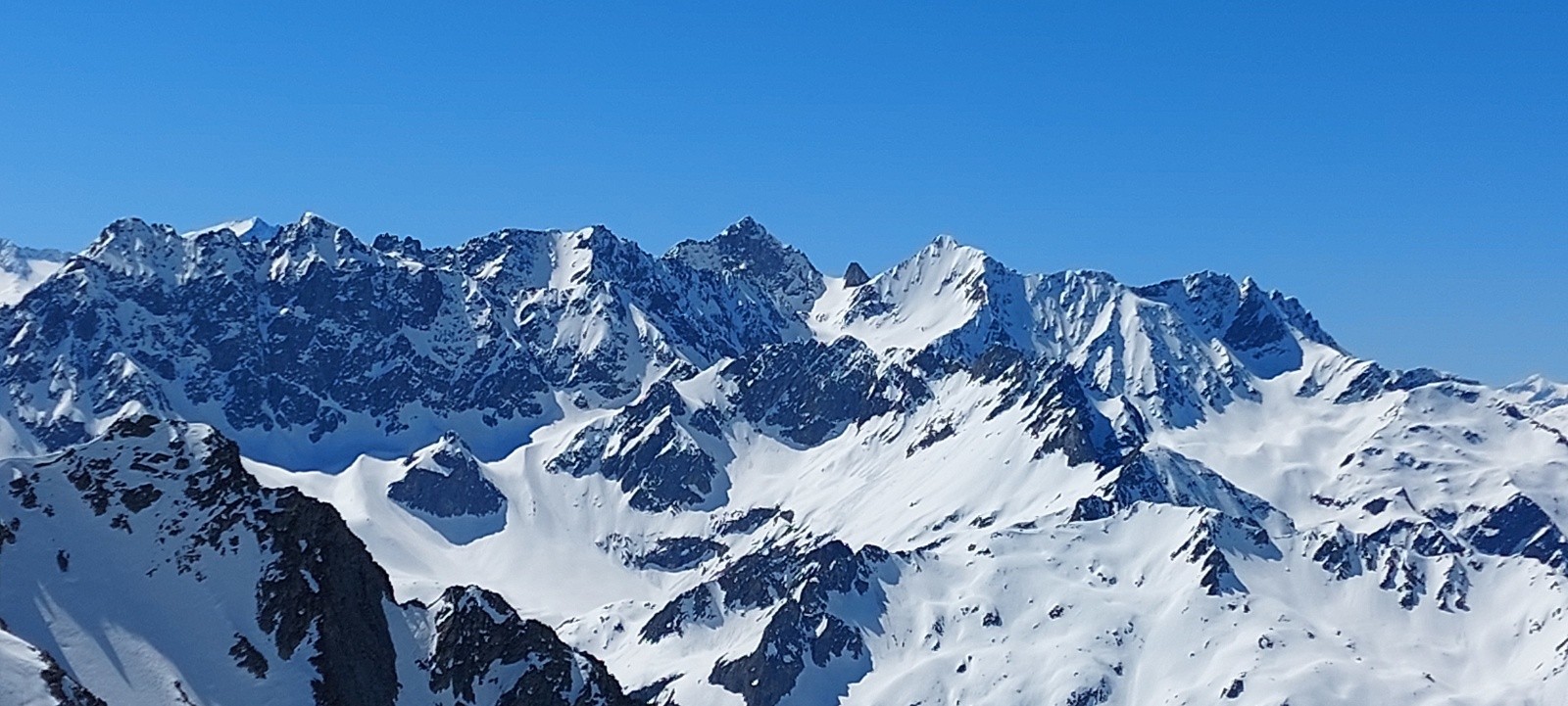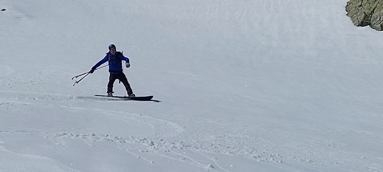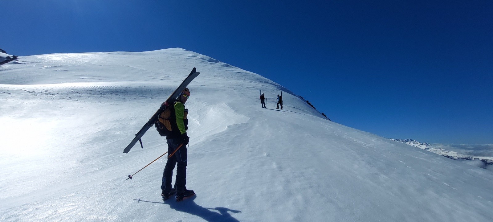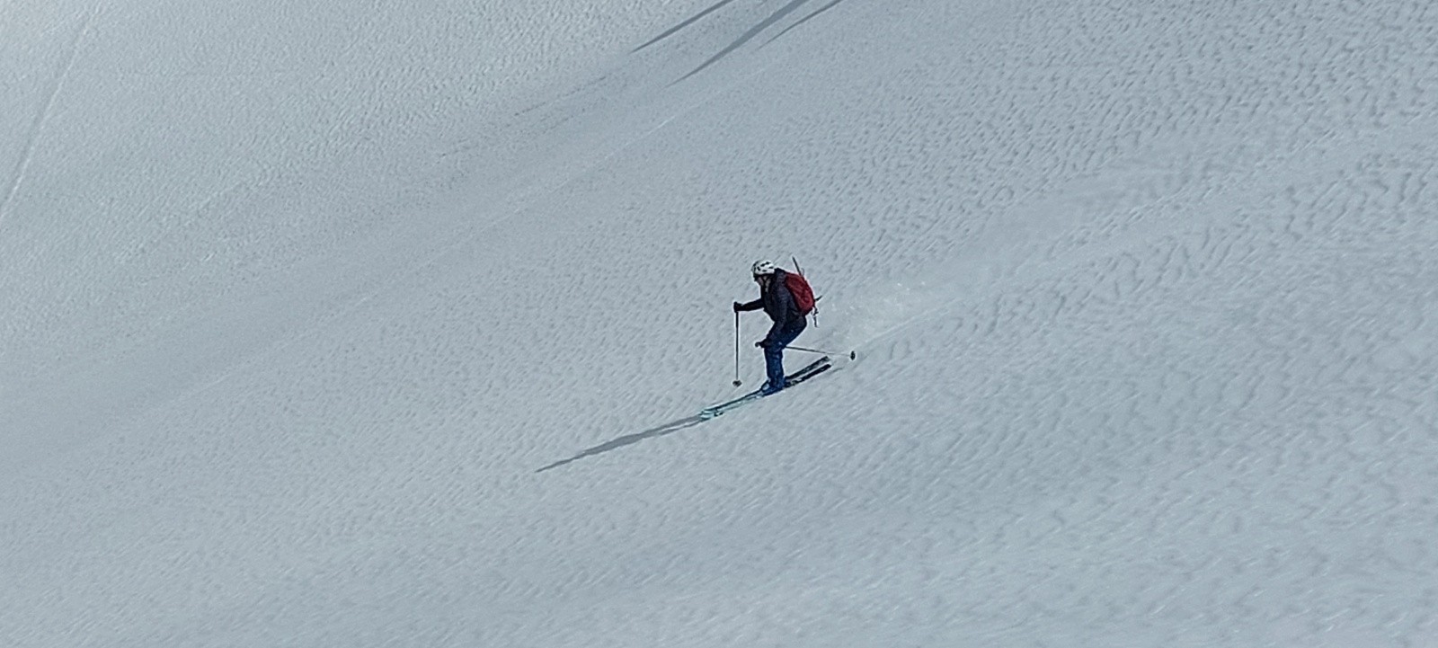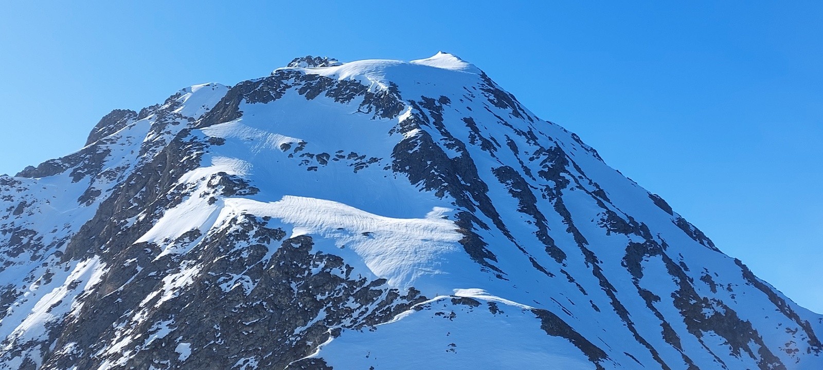 Conditions pour le ski : de longues portions en neige quasi-indécente, façon 'moquette' ou 'vieille poudre tassée attendrie' sur des vallons lisses... un régal... je ne vais pas insister, ça va faire des histoires !