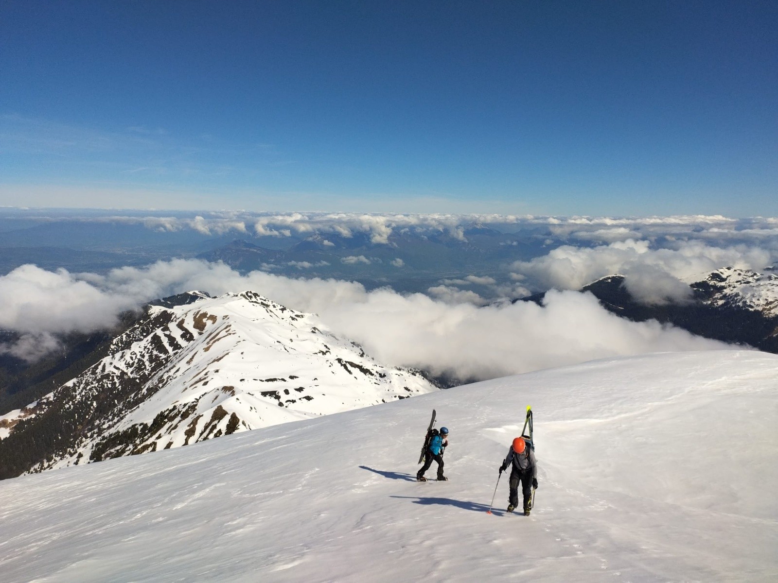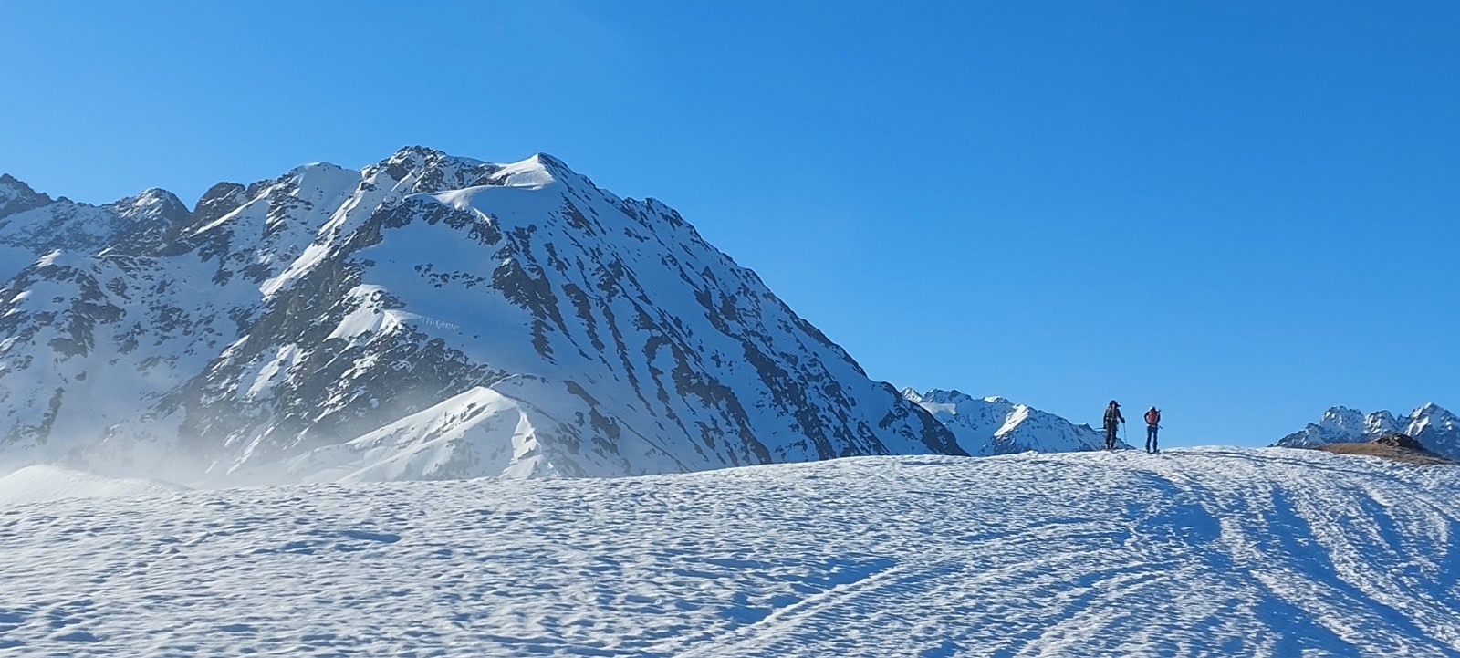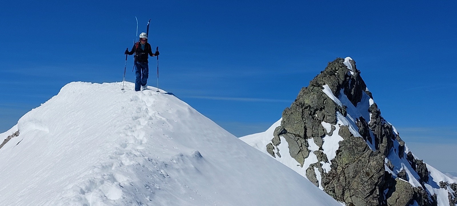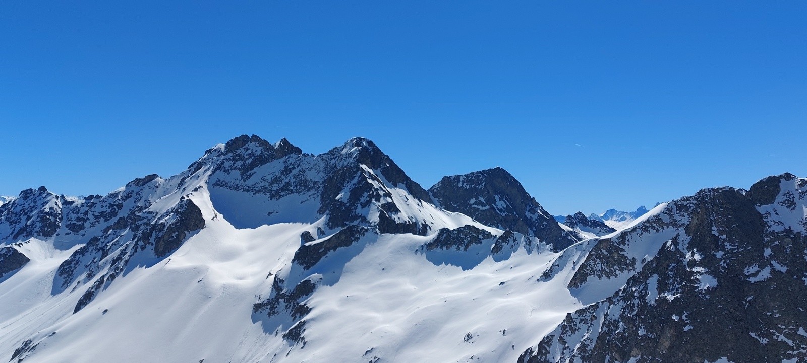 Conditions pour le ski : de longues portions en neige quasi-indécente, façon 'moquette' ou 'vieille poudre tassée attendrie' sur des vallons lisses... un régal... je ne vais pas insister, ça va faire des histoires !