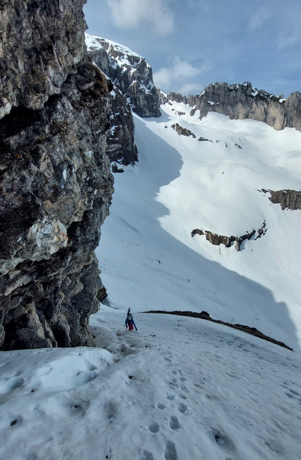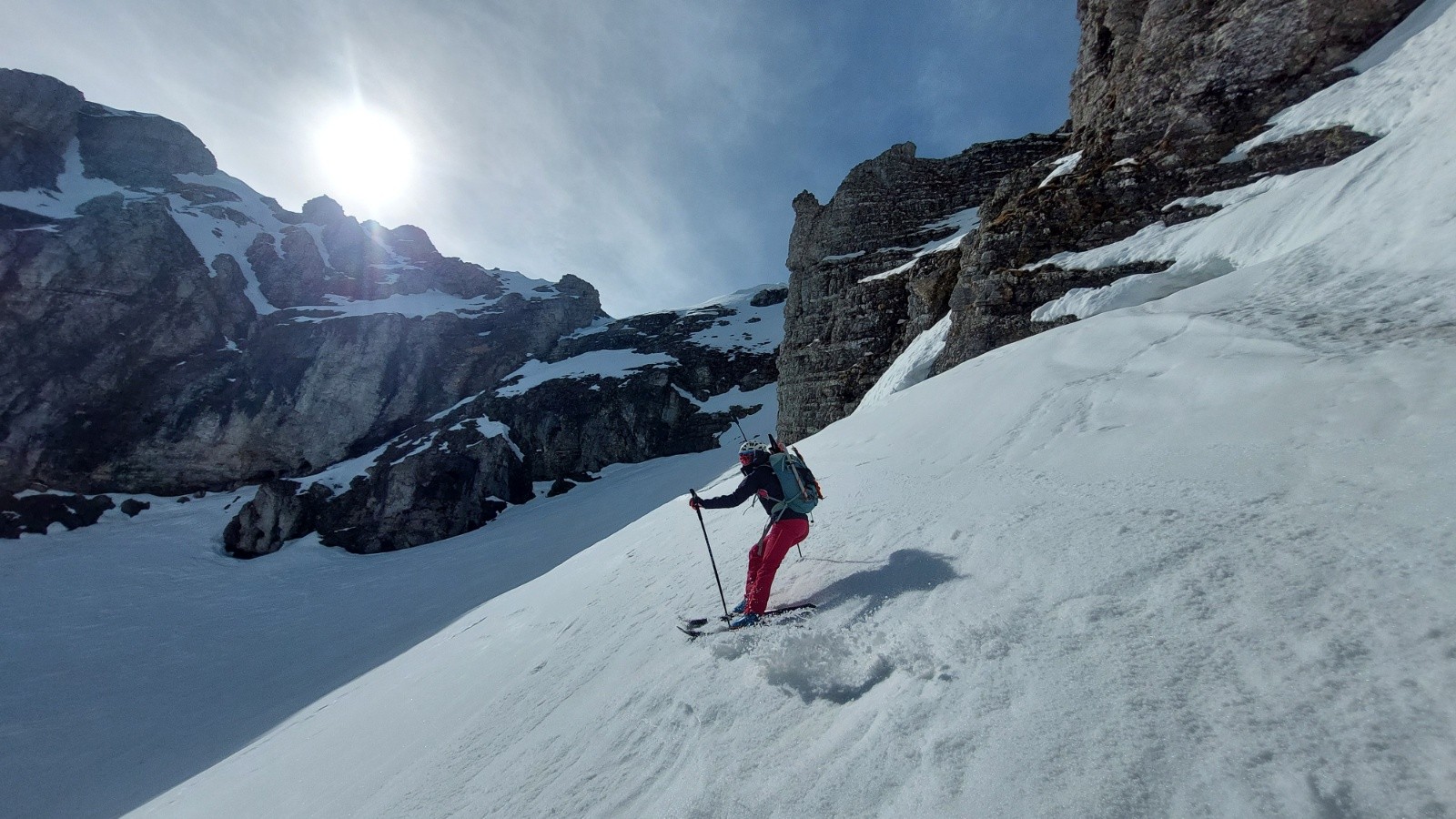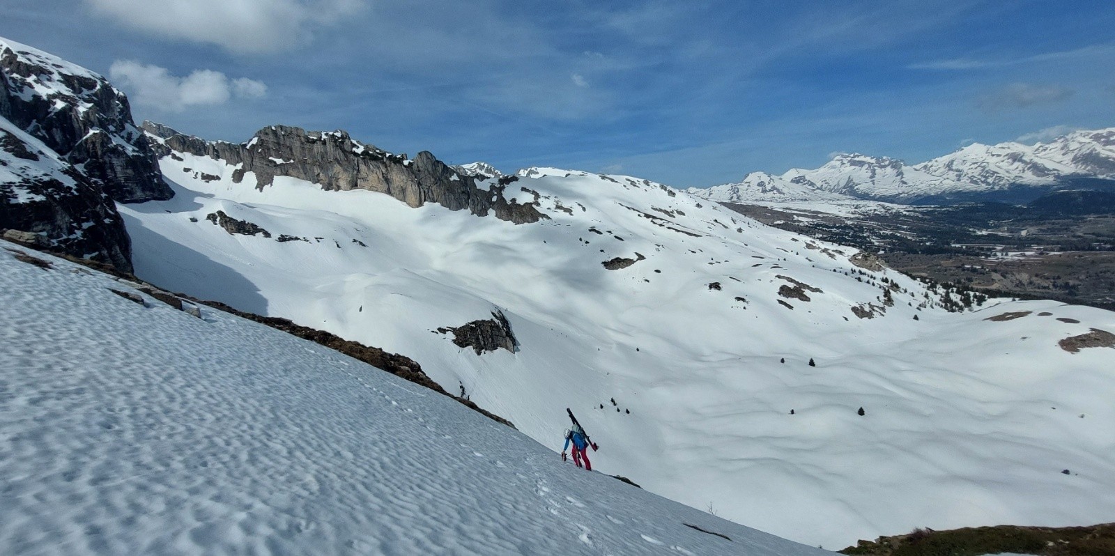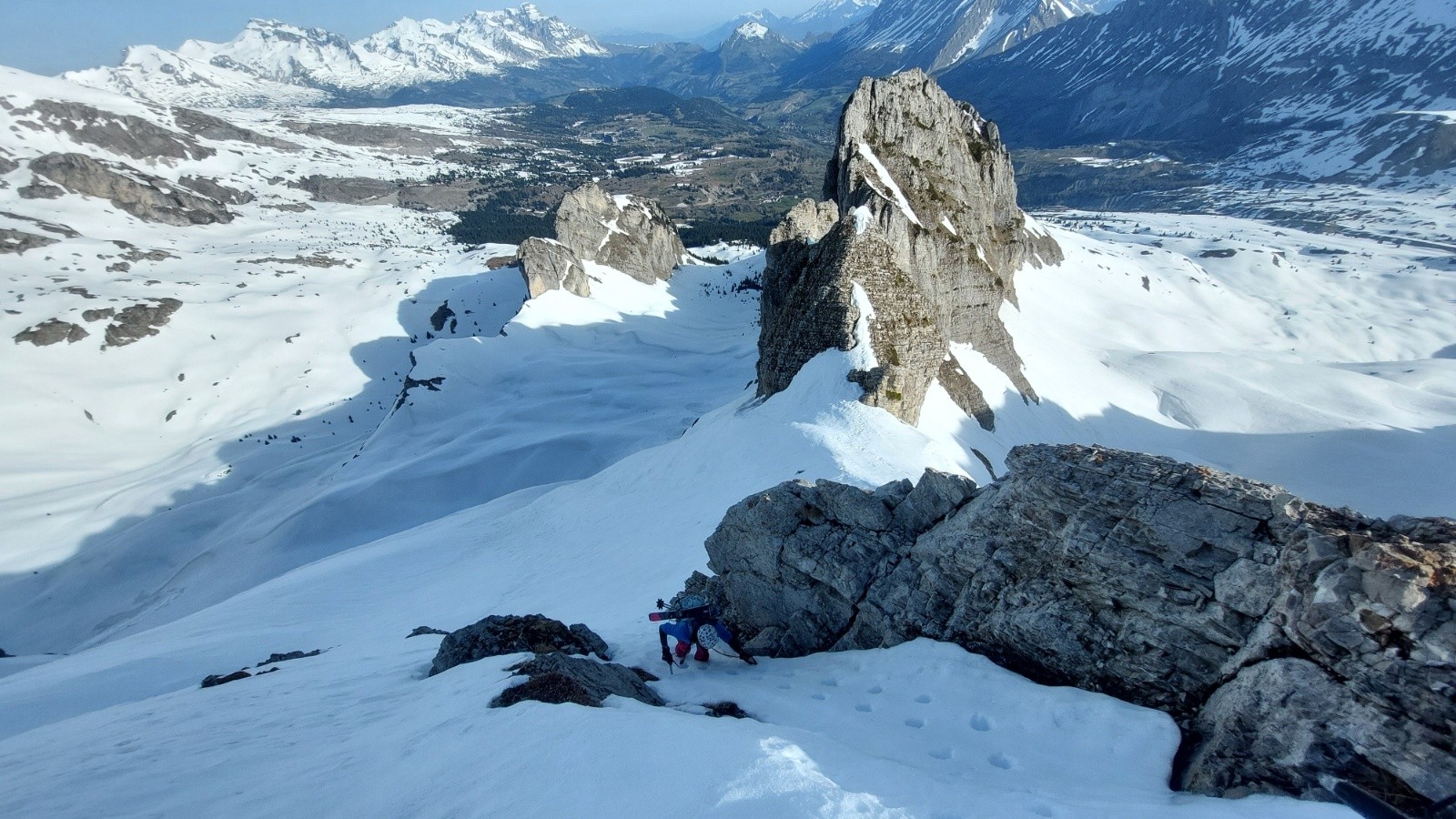 Horaires : Chaussage à 6H30. Descente dans la brèche à 10H15. Descente Crête de la Plane à 11H10