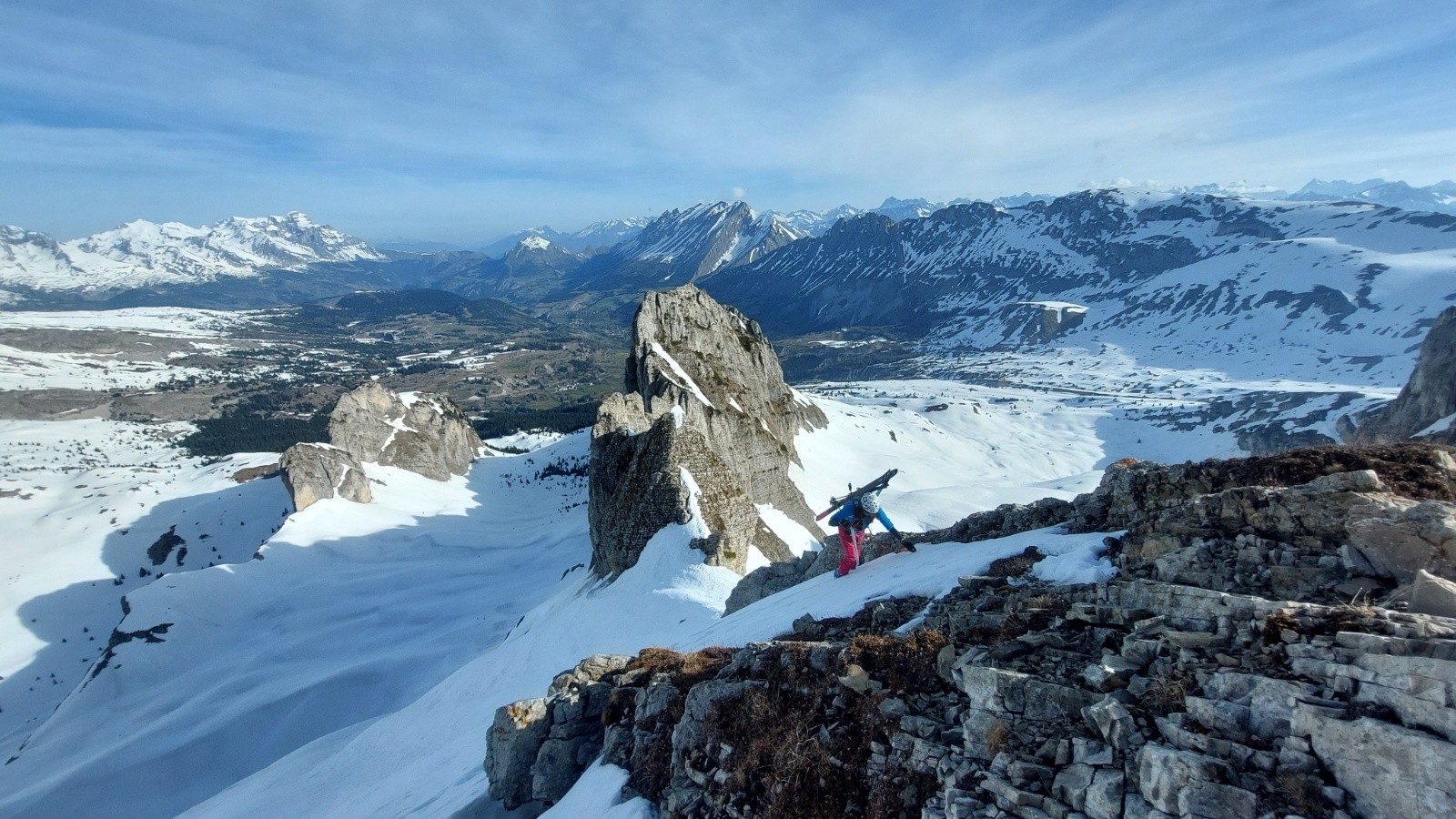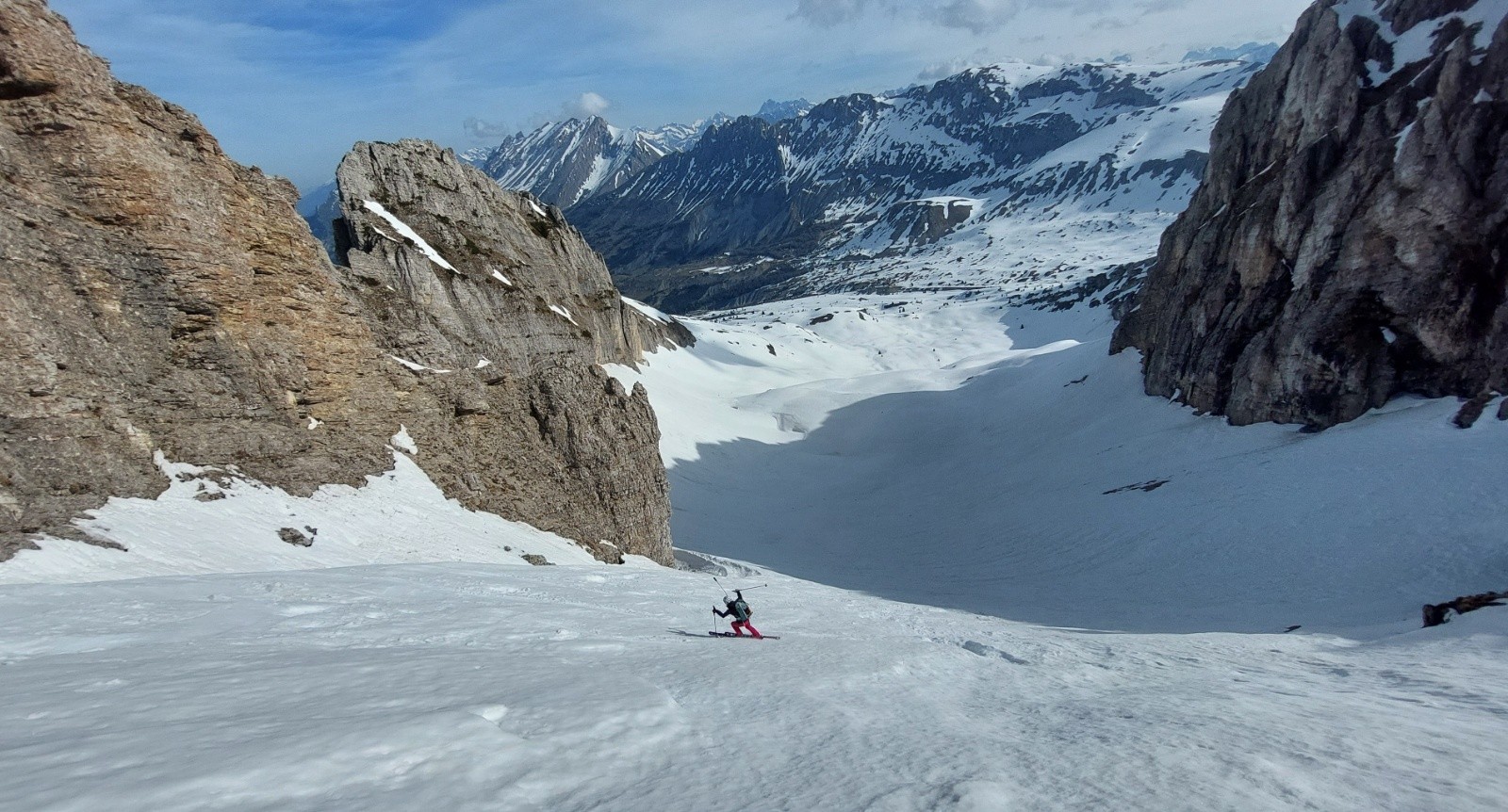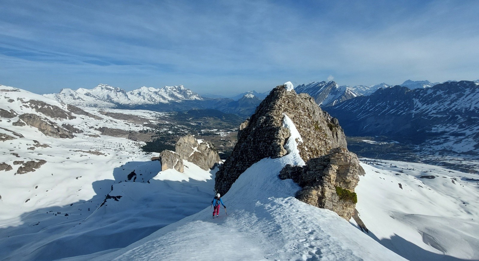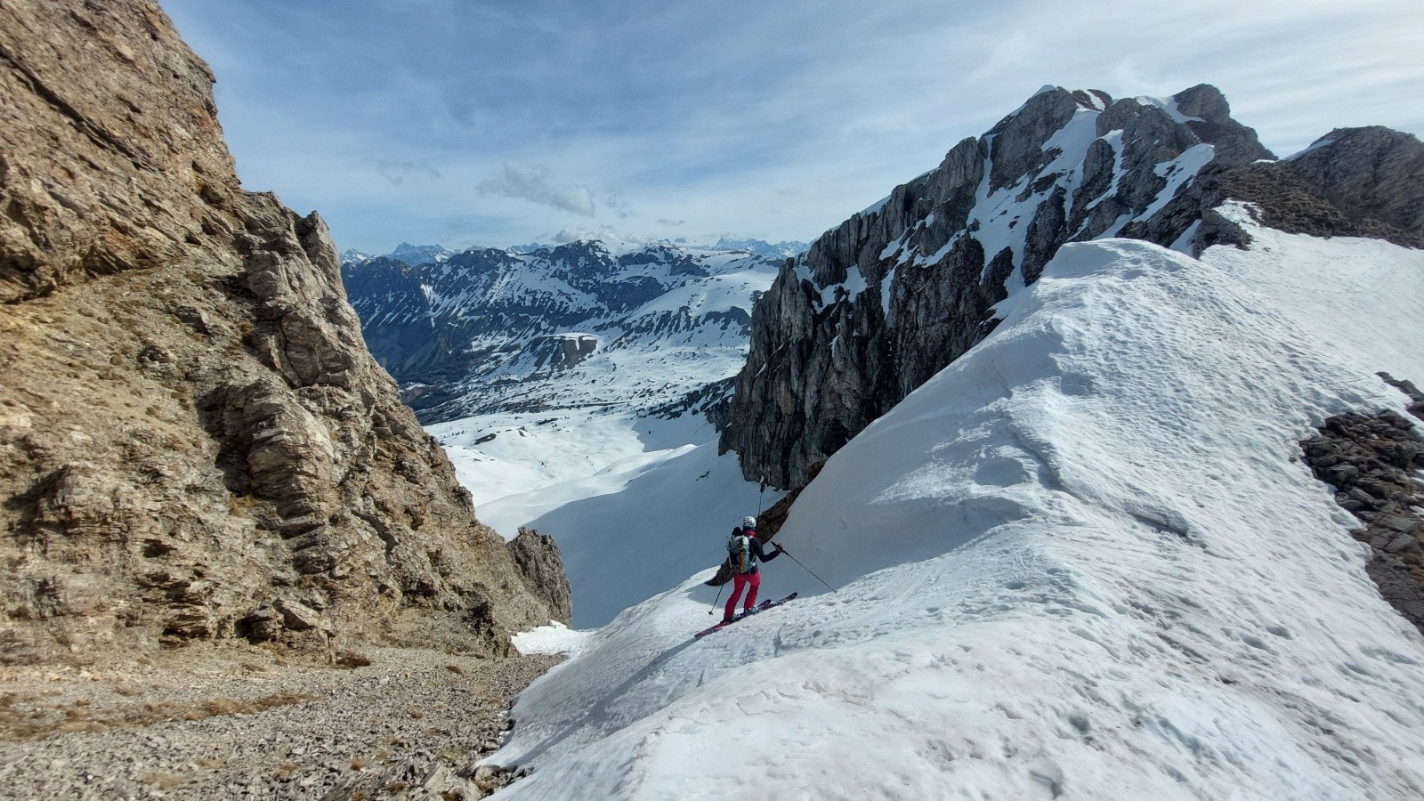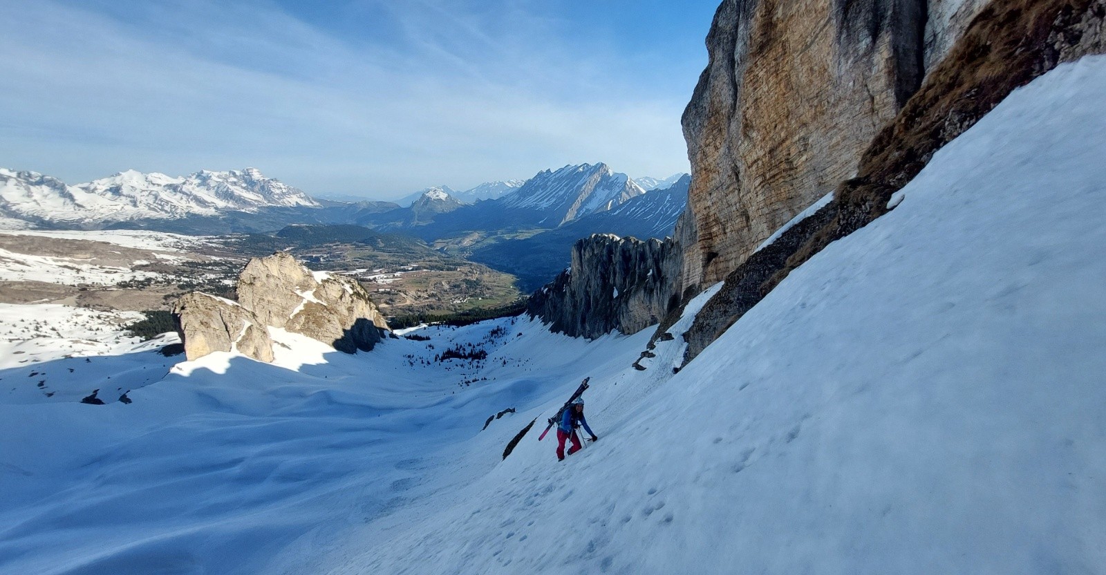 Horaires : Chaussage à 6H30. Descente dans la brèche à 10H15. Descente Crête de la Plane à 11H10