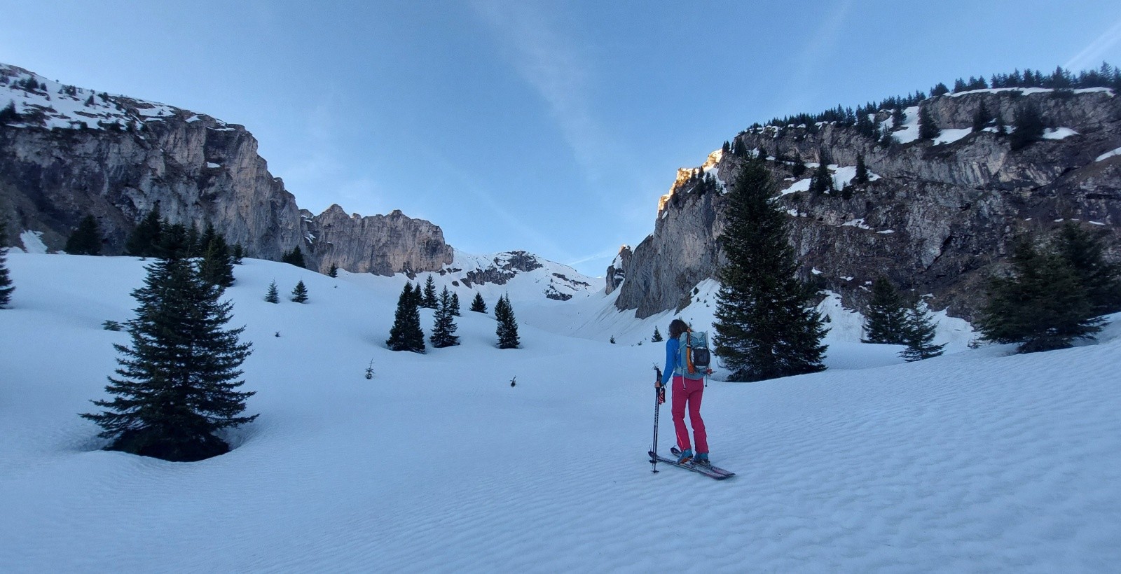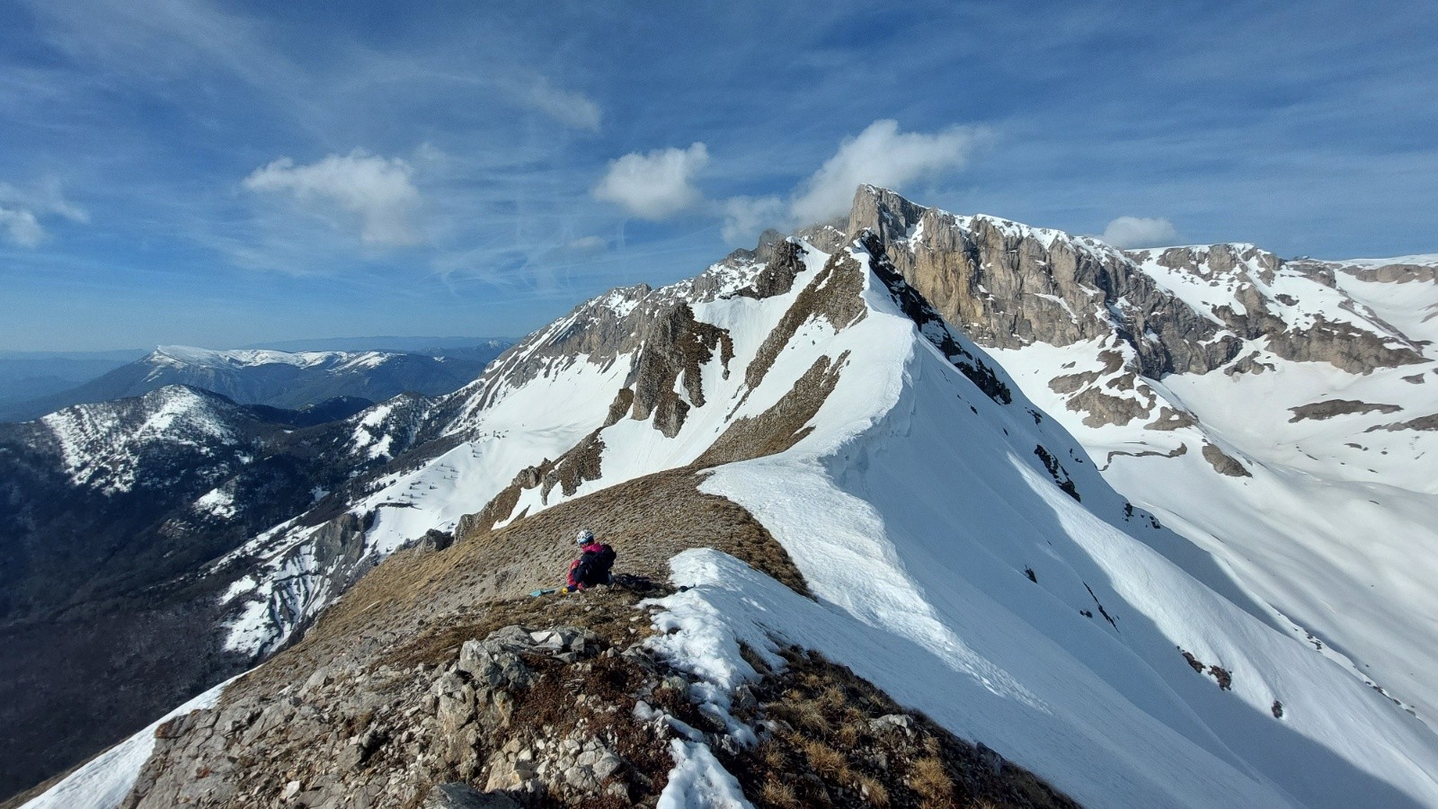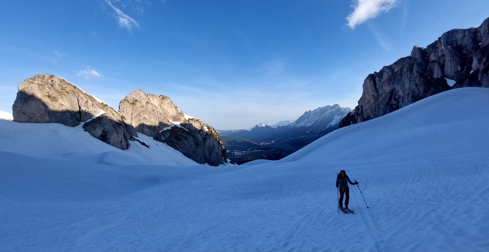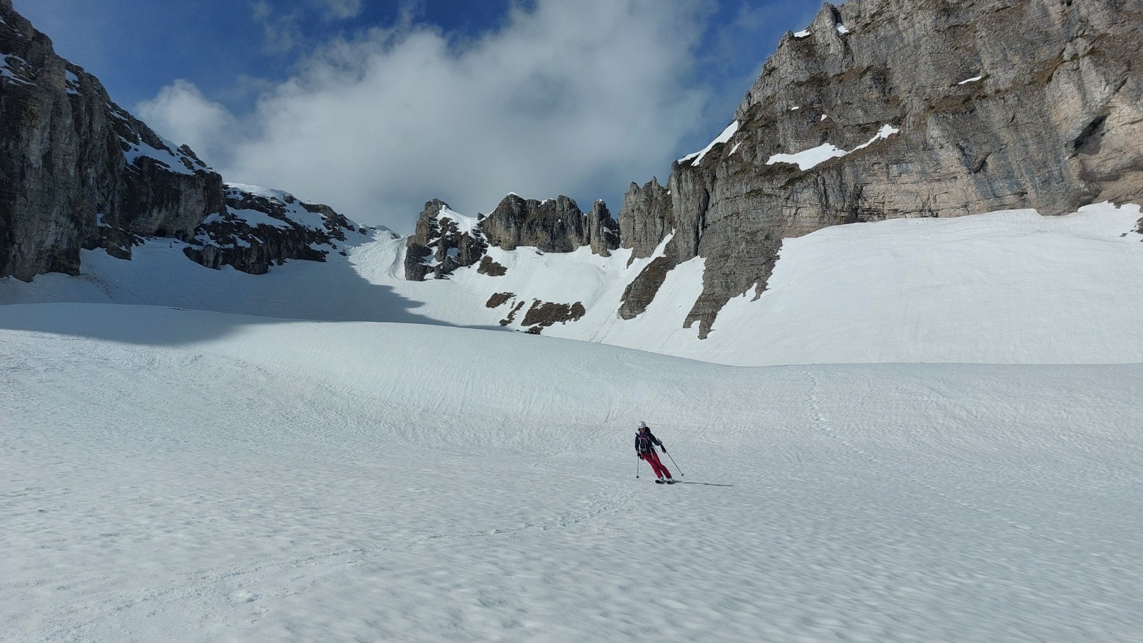 Horaires : Chaussage à 6H30. Descente dans la brèche à 10H15. Descente Crête de la Plane à 11H10