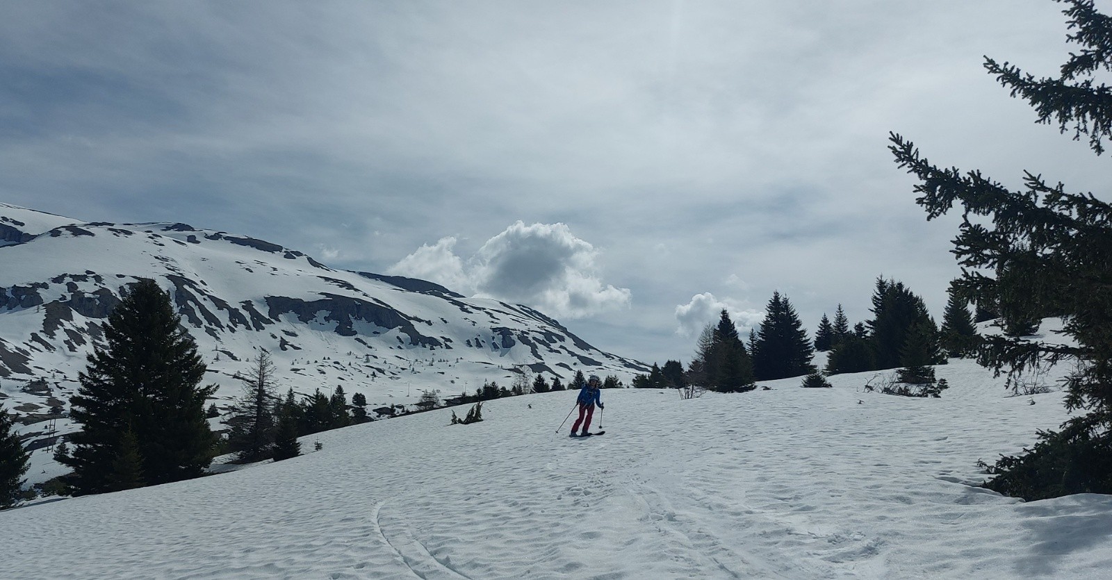 > Crête de la Plane - voiture : Entre moquette et névé (bref c'est mou mais ça ski et colle un peu parfois) ***. Avec ces chaleurs continues, l'ensemble du manteau sera bientôt en névé.