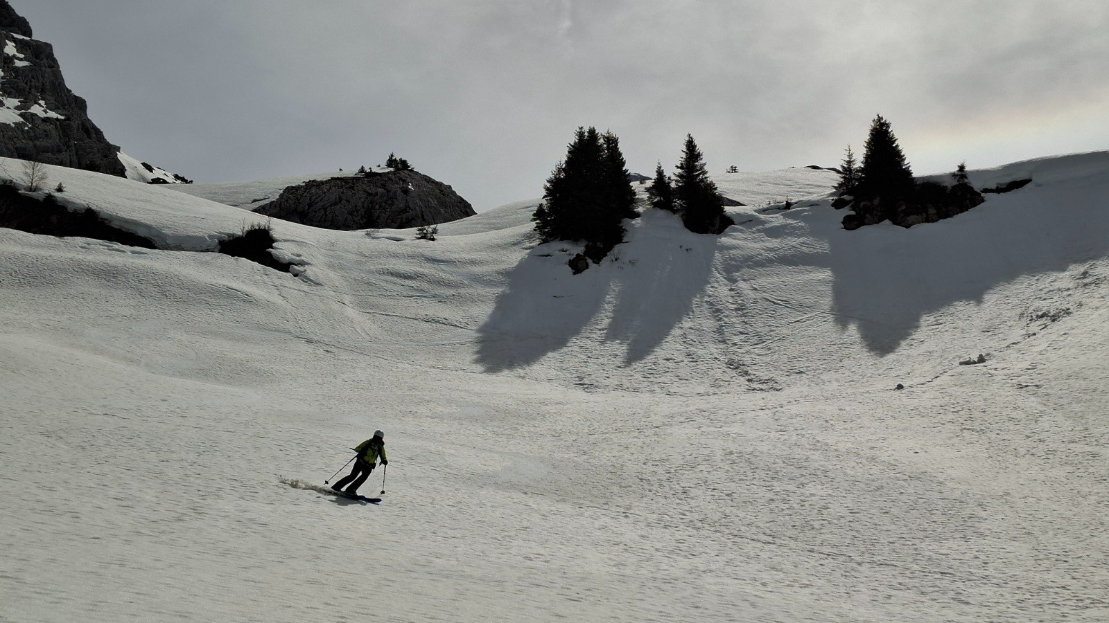 Conditions nivo et activité avalancheuse : très bon regel, vu une coulée en E sous l’Almet vers 9h00, des reptations vers 1700m dans le raide sous la Rouelletaz côté Marto, sinon rien sur notre itinéraire.
