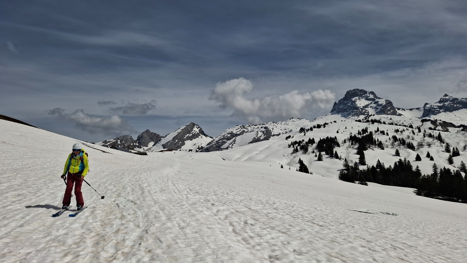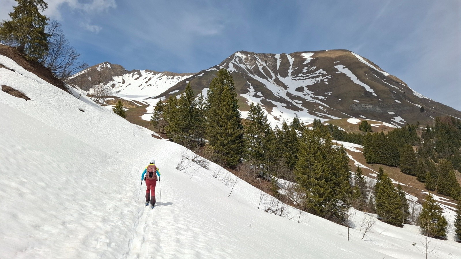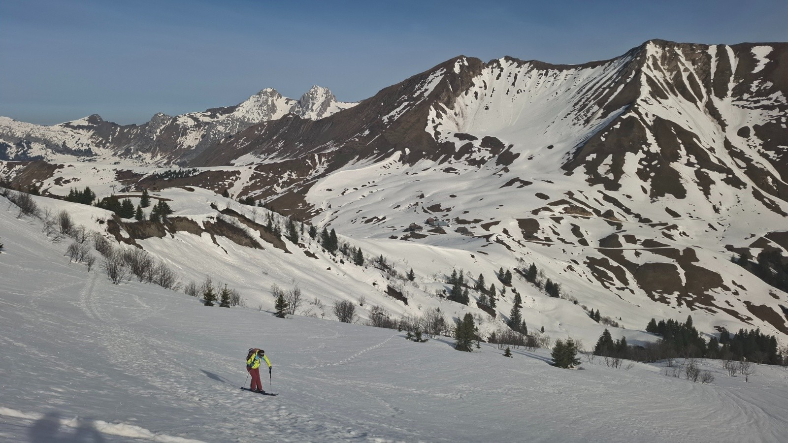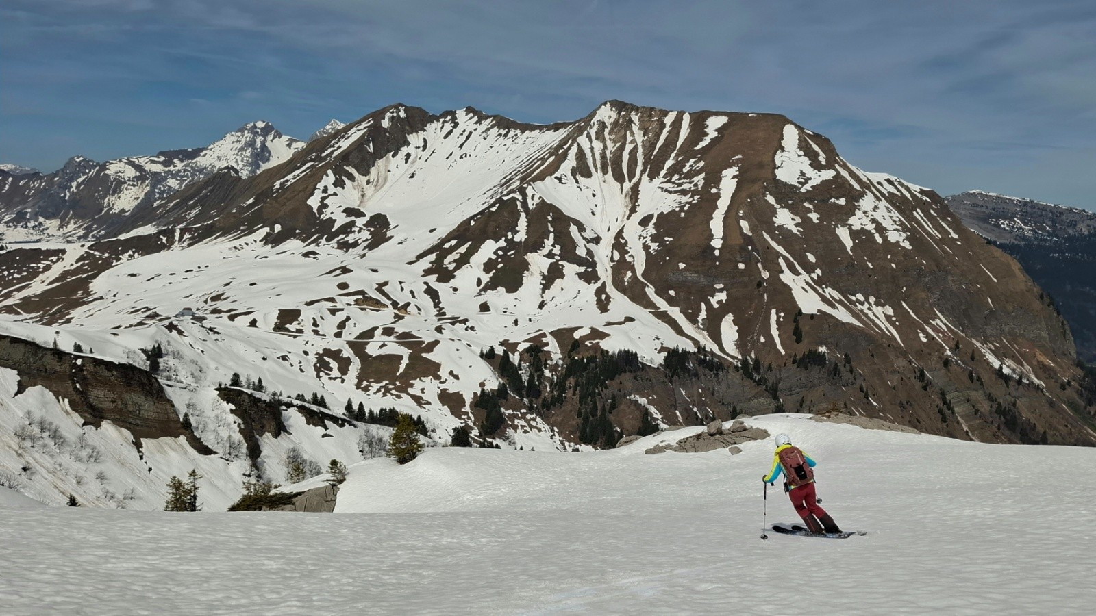 Conditions pour le ski : encore pas mal de neige à la Duche, très bon regel, ciel un peu voilé ça chauffe pas trop vite, traversée horizontale entre la tête des Annes et col de l’Oulettaz : un mix de neige déjà revenue au soleil, bien dure à l’ombre où on a sorti les crampons (on doit être les seuls 😝), on les a gardés jusqu'en haut du goulet après le col, bon grip jusqu'au sommet. Top moquette à la descente jusqu'à 1700m (côté combe Marto) où ça devient lourd, remontée au col des Annes plus ou moins pourri jusqu'à la sortie de la forêt, piste des Annes pas pire en allant to dré 😉. Globalement bon.