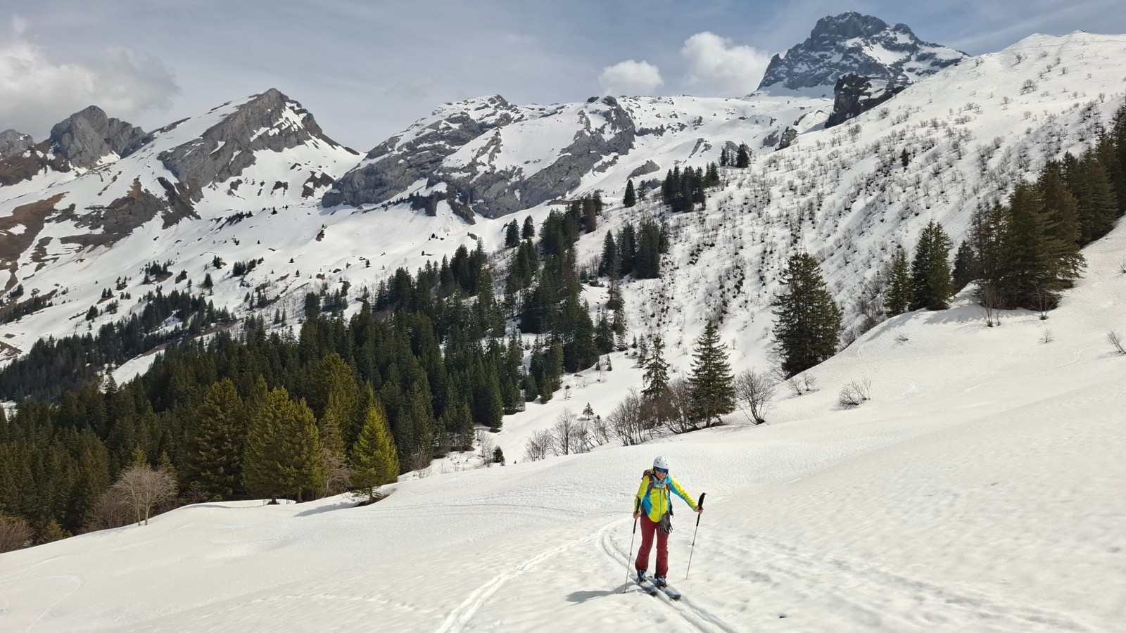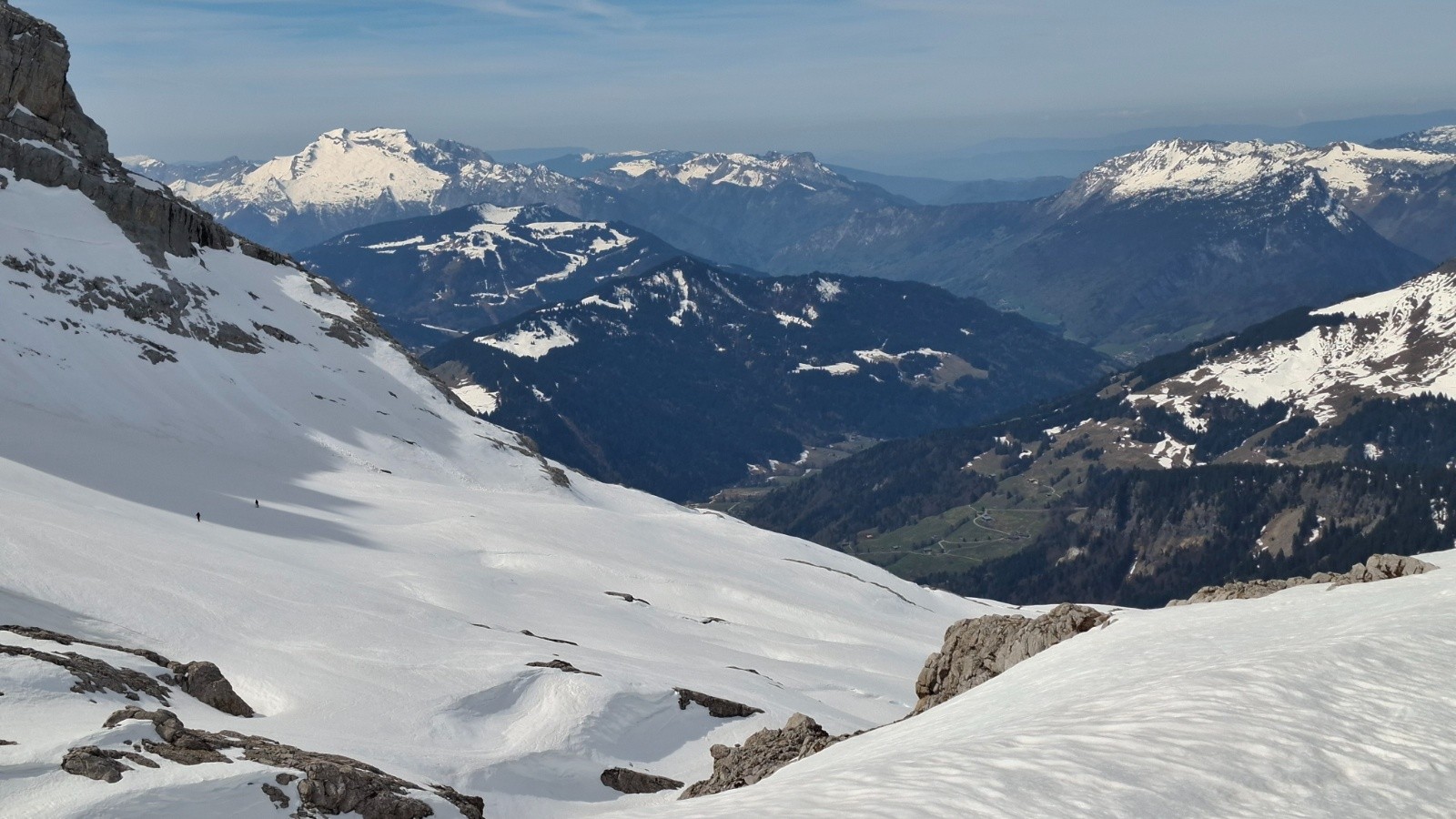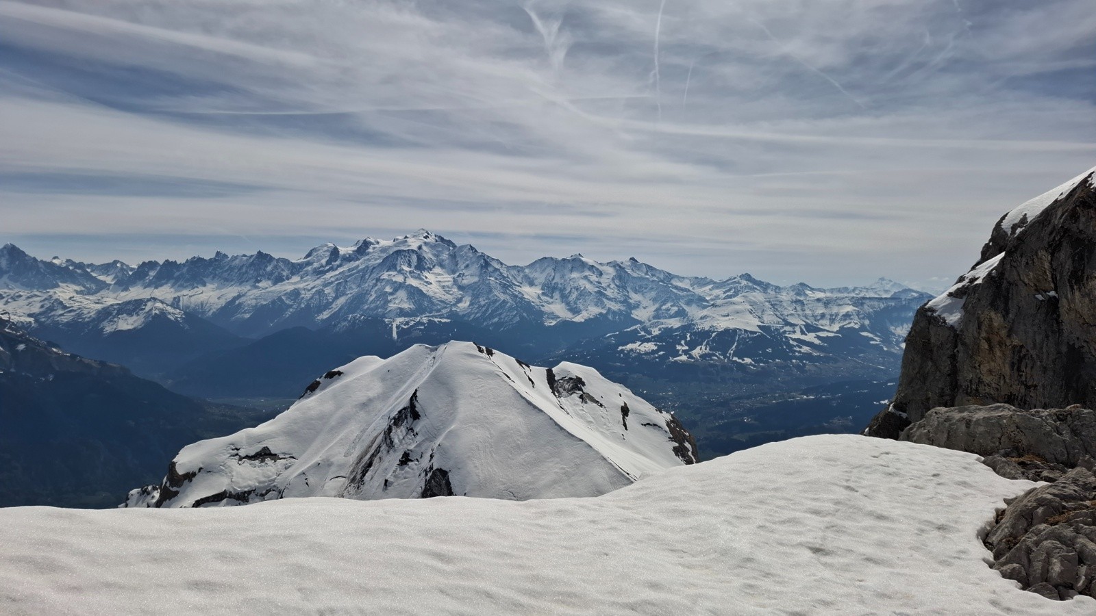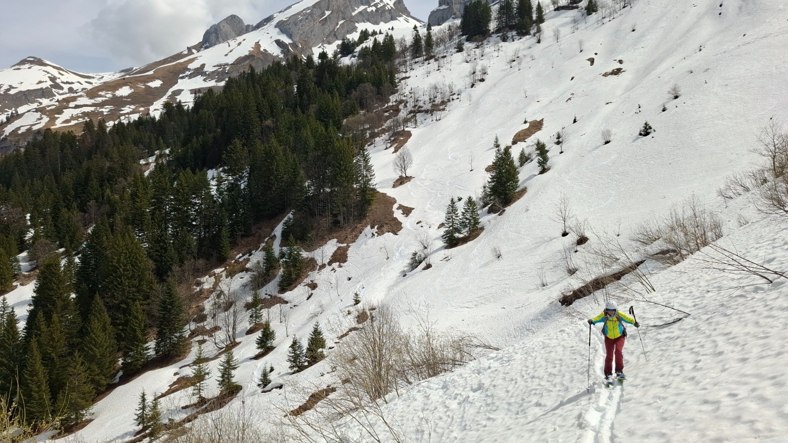 Conditions pour le ski : encore pas mal de neige à la Duche, très bon regel, ciel un peu voilé ça chauffe pas trop vite, traversée horizontale entre la tête des Annes et col de l’Oulettaz : un mix de neige déjà revenue au soleil, bien dure à l’ombre où on a sorti les crampons (on doit être les seuls 😝), on les a gardés jusqu'en haut du goulet après le col, bon grip jusqu'au sommet. Top moquette à la descente jusqu'à 1700m (côté combe Marto) où ça devient lourd, remontée au col des Annes plus ou moins pourri jusqu'à la sortie de la forêt, piste des Annes pas pire en allant to dré 😉. Globalement bon.