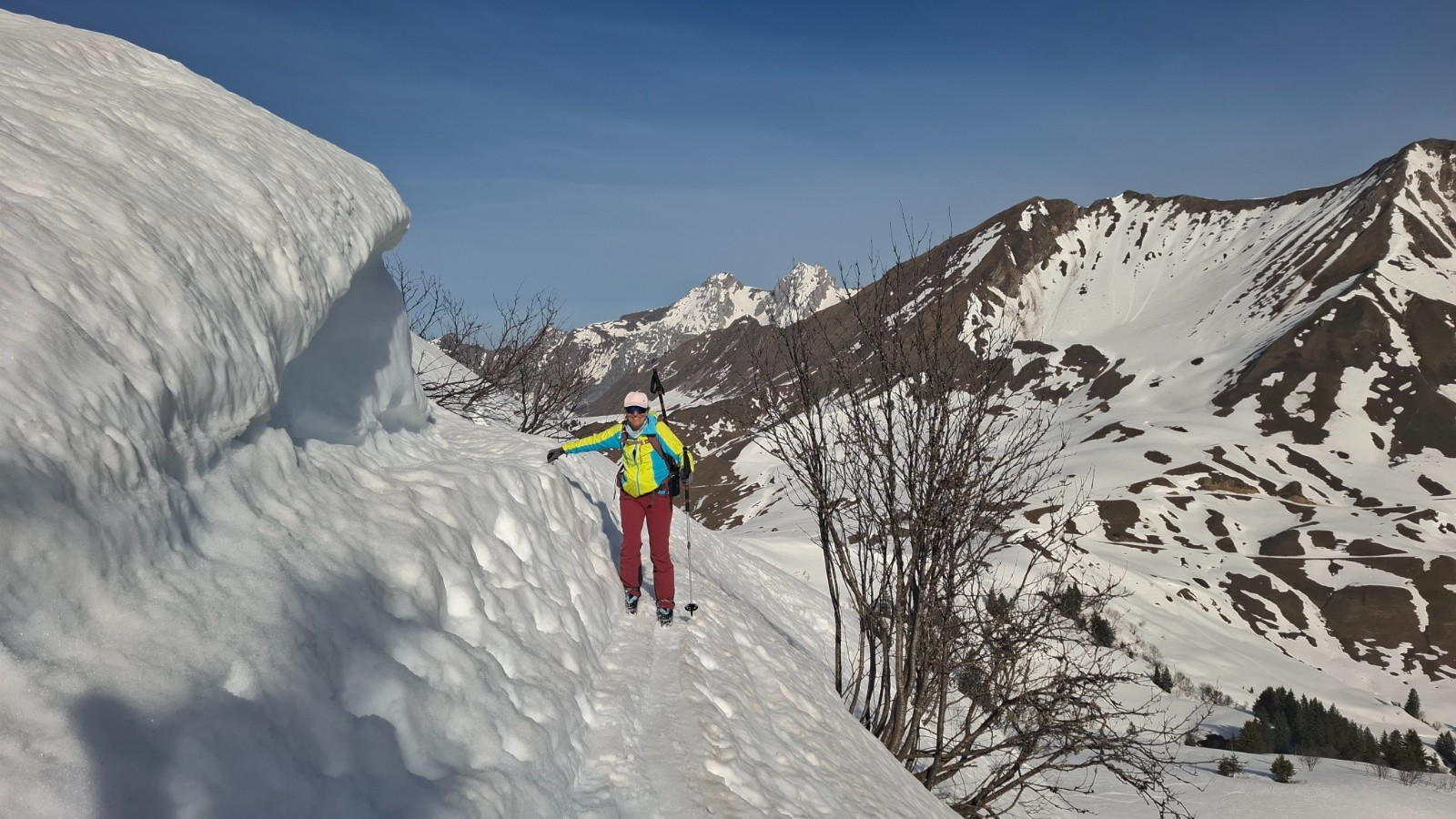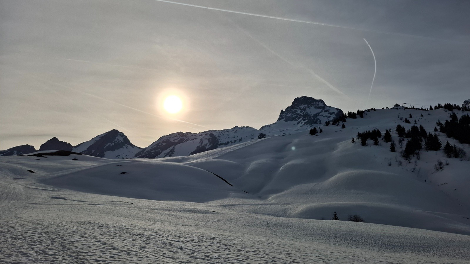 Itinéraire suivi : un mix des topos associés : départ de la Duche, traversée col Oulettaz, goulet sous la Rouelletaz, ensuite on reste sur les bombés en évitant les gros creux, on laisse la pointe de la Carmélite sur notre gauche (trop dénudée, on n’a pas osé 🫣) pour se poser à un collu bien enneigé, superbe vue sur la PP et le massif du Mt Blanc. Descente sur combe Marto extra, il faut un peu chercher les passages par moment, c'est sympa, sous 1700 ça devient très lourd mais en restant sur les croupes ça tourne facile. On arrive pile sur le sentier d'été qui remonte au col des Annes, un déchaussage de 10m sous les gros sapins et on retrouve le col après une petite heure bien chaude 🫠. Reste à descendre la piste des Annes en mode tout droit. Superbe boucle avec 900m de très bon ski en duo avec ma Biche !🥰
