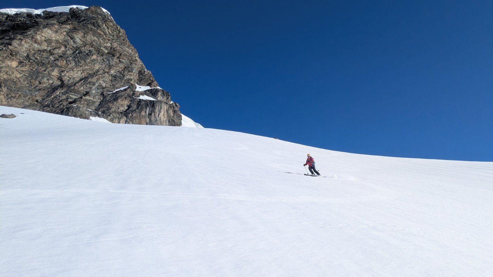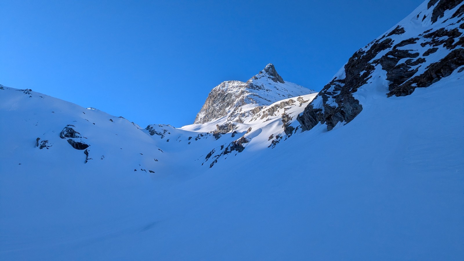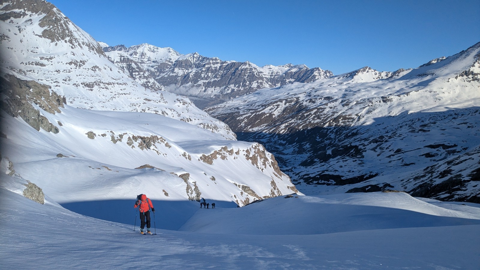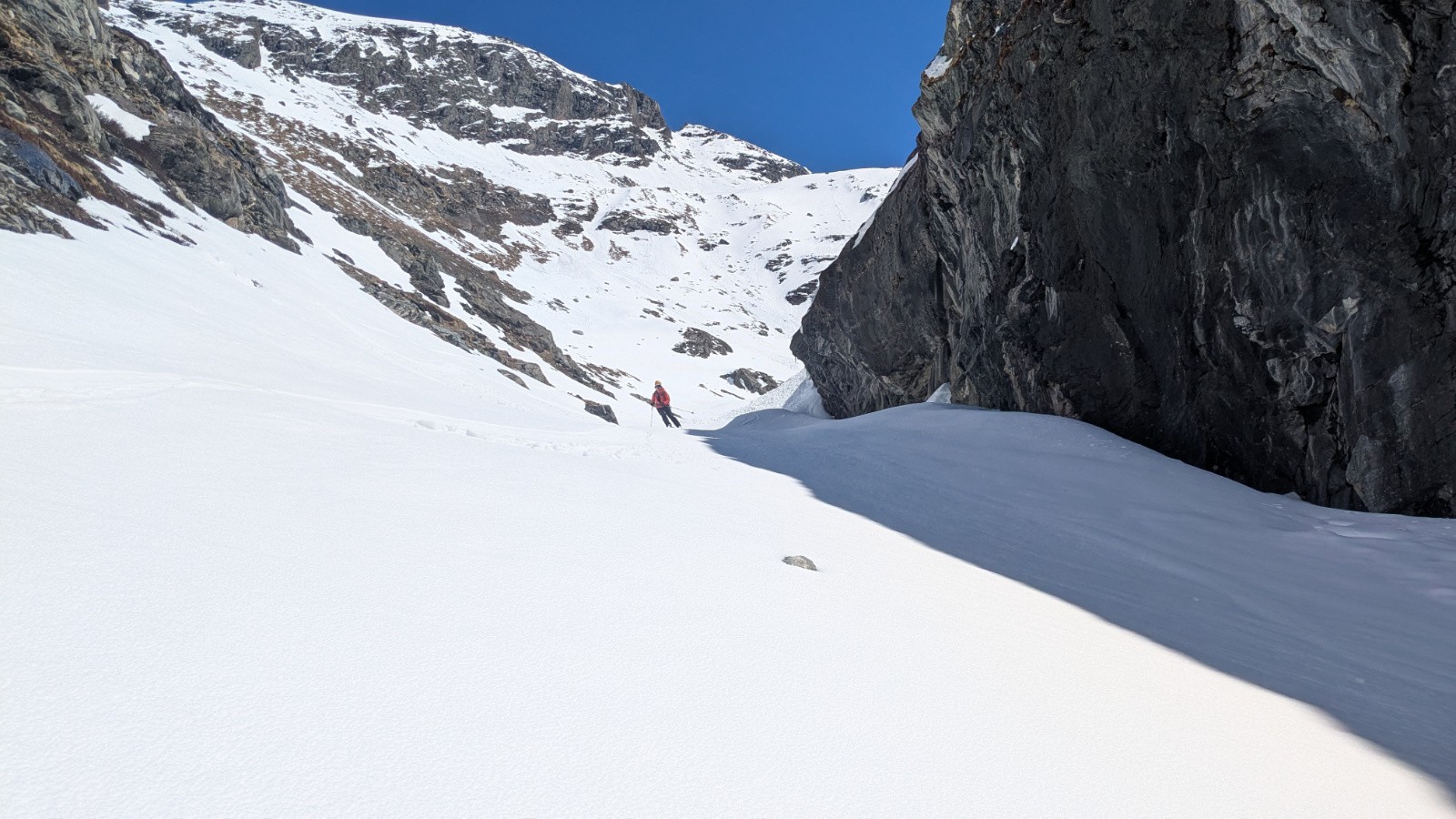 Conditions pour le ski : Bon regel, neige transfo dans les orientations S, bonne poudreuse en N au dessus de 3000, parfois plus bas si c'est assez raide, croute plus ou moins portante ailleurs qui sera plus ou moins skiable en fonction de l'heure; On a évité la croute sur le glacier en restant rive gauche du glacier (poudre en NE) en suite tout transfo dan le ruisseau de la Vallettaz et de la Lombarde. Glacier rempli!