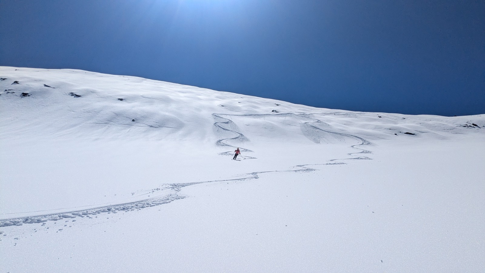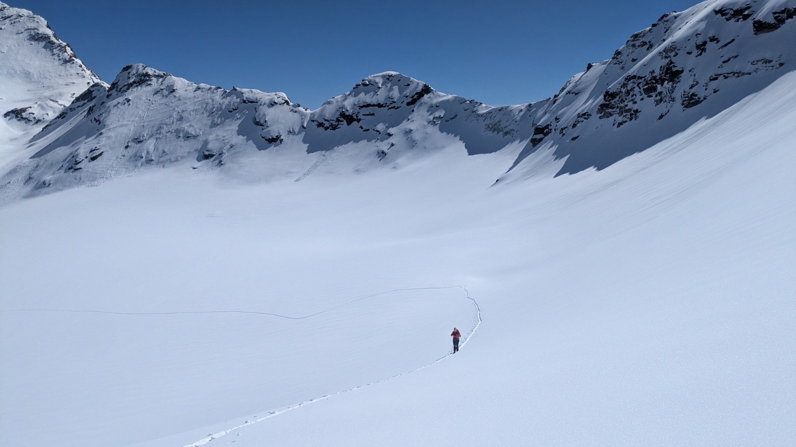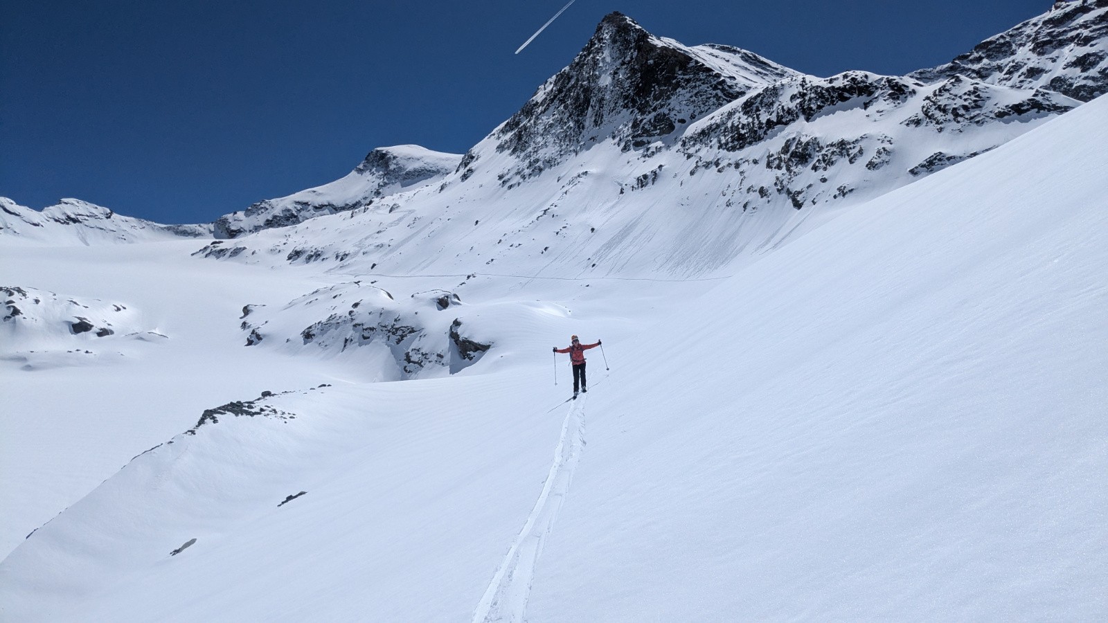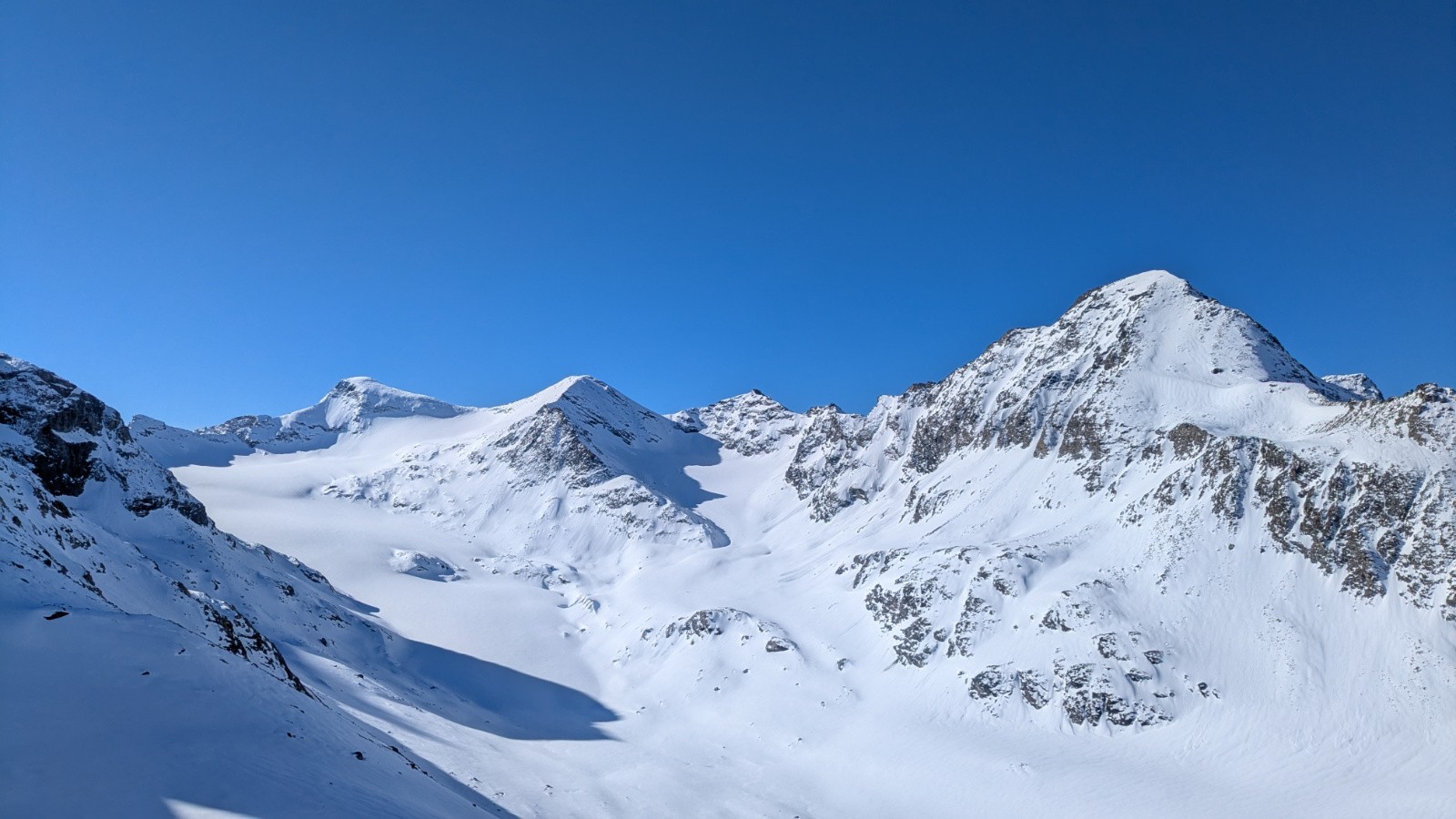 Conditions pour le ski : Bon regel, neige transfo dans les orientations S, bonne poudreuse en N au dessus de 3000, parfois plus bas si c'est assez raide, croute plus ou moins portante ailleurs qui sera plus ou moins skiable en fonction de l'heure; On a évité la croute sur le glacier en restant rive gauche du glacier (poudre en NE) en suite tout transfo dan le ruisseau de la Vallettaz et de la Lombarde. Glacier rempli!
