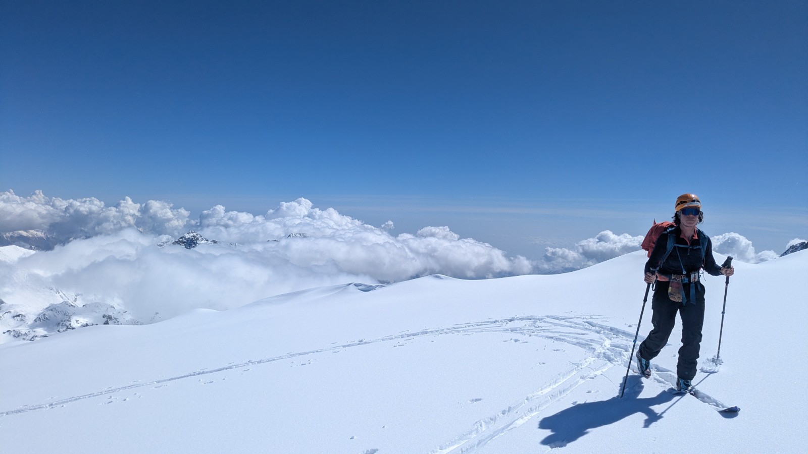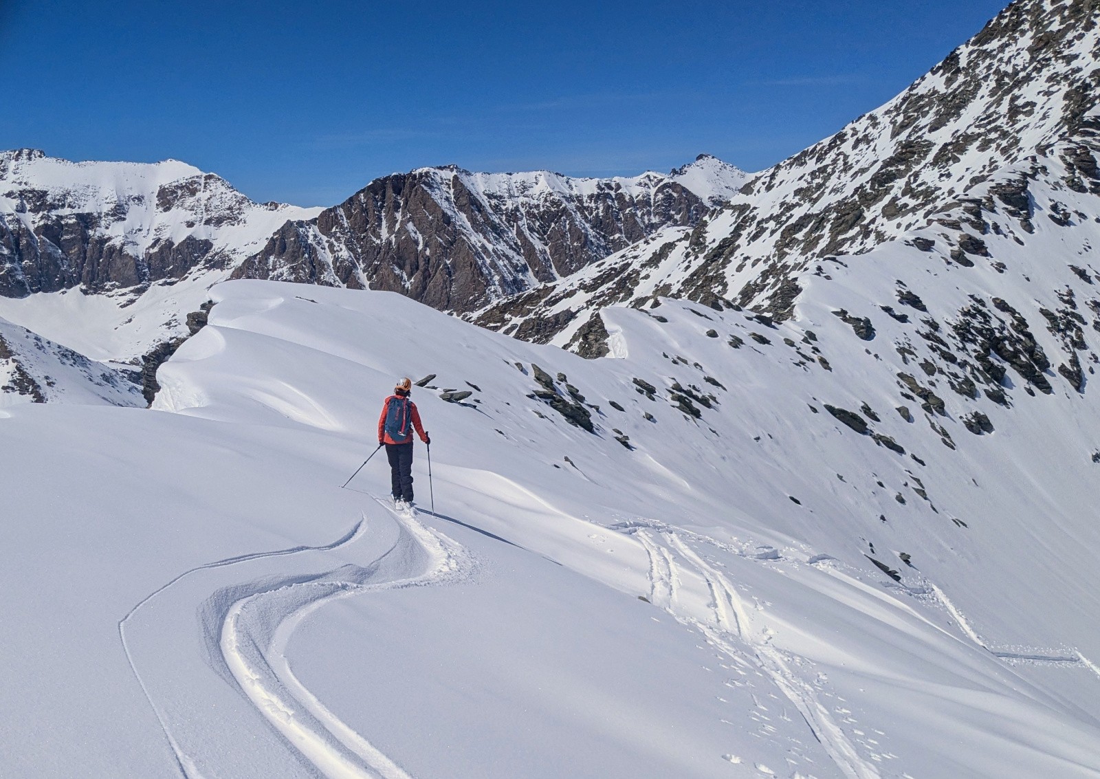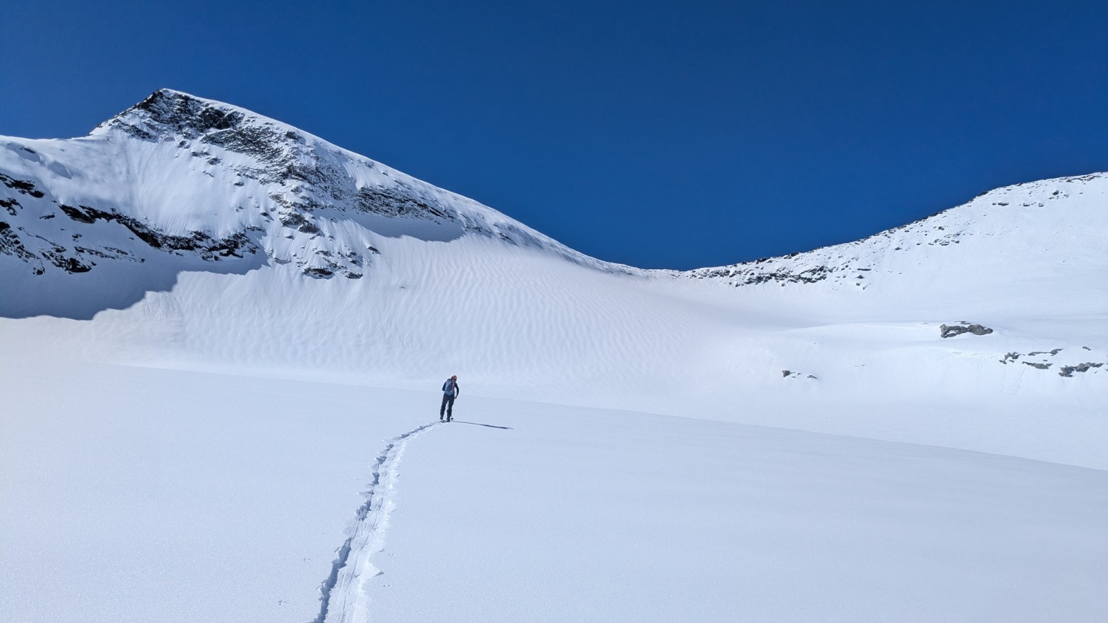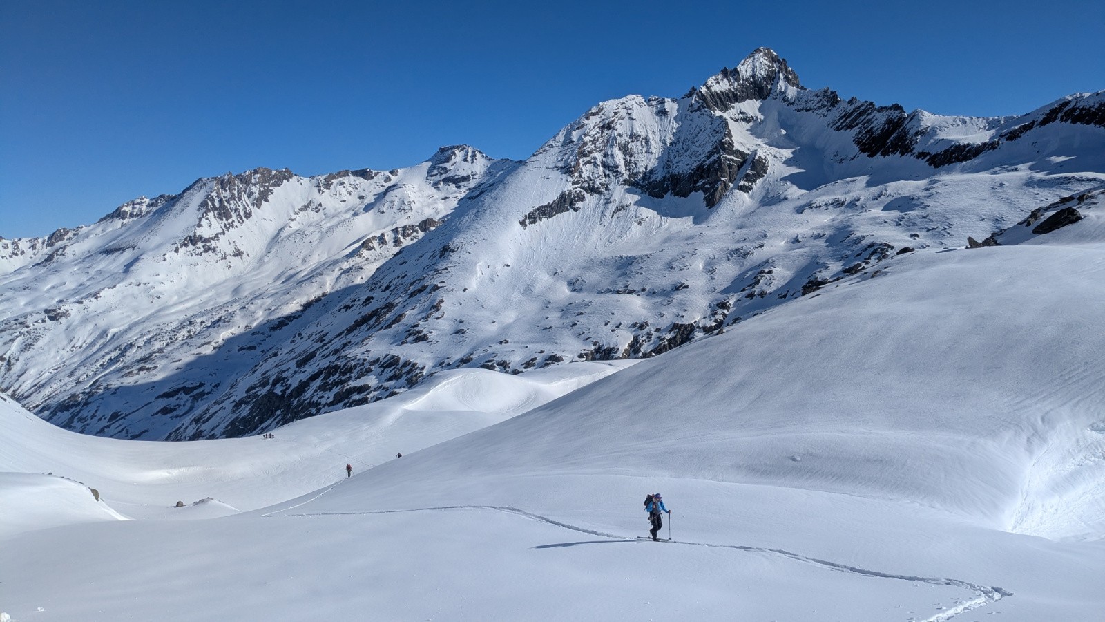 Conditions pour le ski : Bon regel, neige transfo dans les orientations S, bonne poudreuse en N au dessus de 3000, parfois plus bas si c'est assez raide, croute plus ou moins portante ailleurs qui sera plus ou moins skiable en fonction de l'heure; On a évité la croute sur le glacier en restant rive gauche du glacier (poudre en NE) en suite tout transfo dan le ruisseau de la Vallettaz et de la Lombarde. Glacier rempli!
