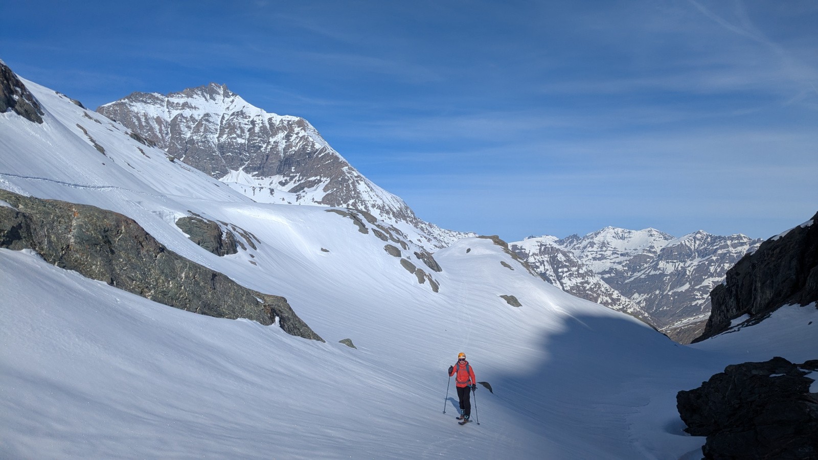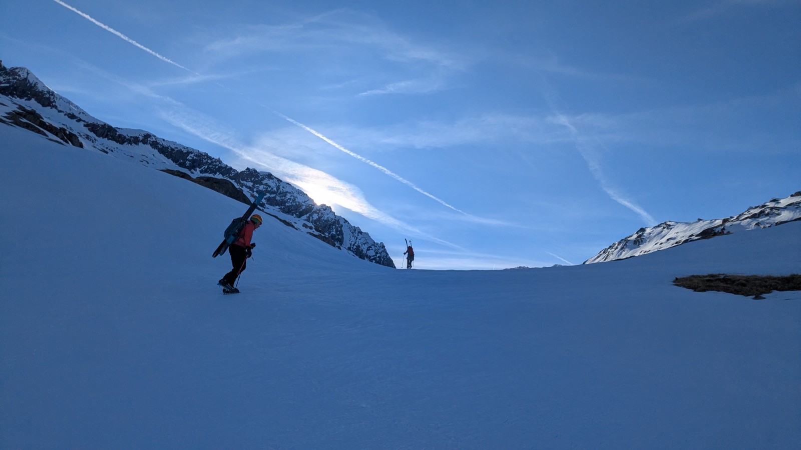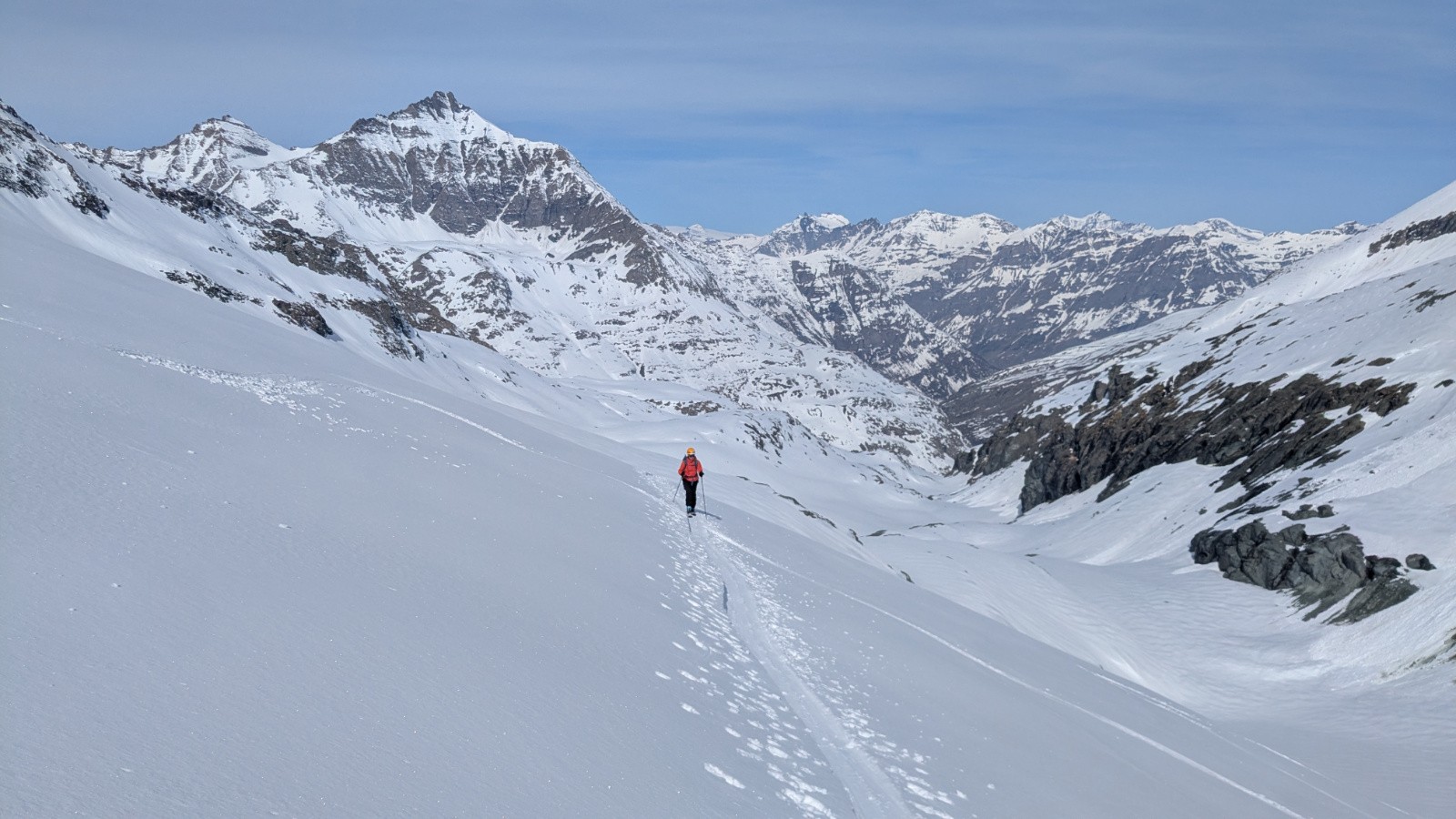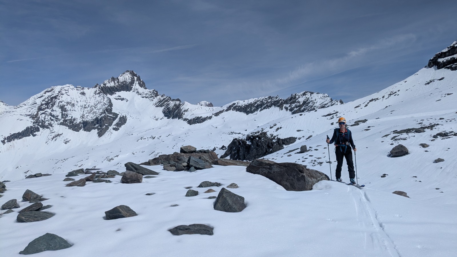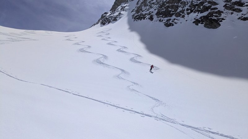 Montée classique à la Pointe Marie, on a mis les crampons pour passer le premier ressaut. En passant un peu plus haut ( du point 2544 au point 2754) c'est finalement plus facile et plus rapide. Une bonne poudreuse sous la Pointe Marie mais qui laisse trop rapidement place (la poudreuse disparait de toutes façons toujours trop rapidement) à une croute portante bien skiable finalement. On s'octroie une remontée au col d'Arberon sur proposition de Marinette, ce qui nous offrira une belle descente en poudre rechauffée rive gauche et moquette rive droite. Retour au refuge où l'on retrouve, par hasard, l'équipe Couturier! Plein de rencontres sympathiques lors de ce séjour, salutations à tout le monde!