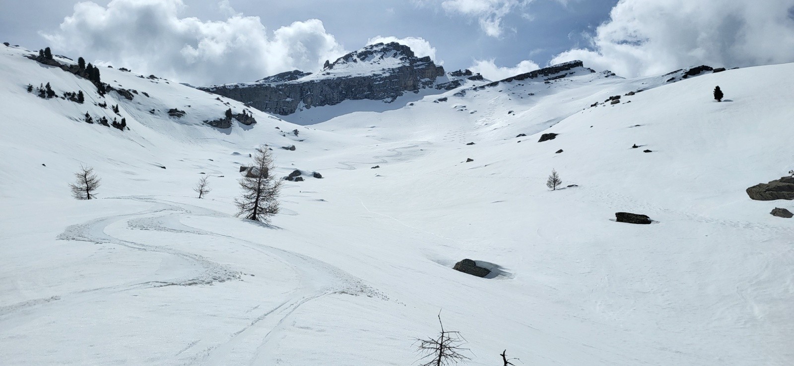 Magnifique sortie ave Alexis dans ce superbe vallon du Lavercq. Pas croisé grand monde que ce soit à 2 jambes ou 4 pattes. Une belle et longue bambée avec de superbes conditions de printemps.