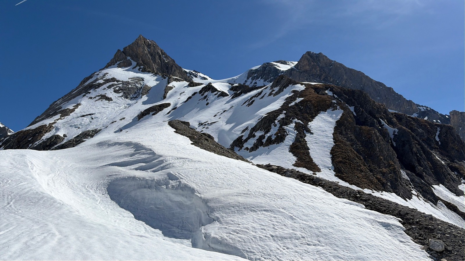 Conditions pour le ski : Montée : léger regel, bon grip sur la piste, plus difficile après les Barmettes jusqu'au lac mais passe sans les couteaux (matin 8h). pas de problème sur le glacier, laissé les skis 50m sous le col pour terminer à pieds (passe sans crampons mais plus agréable avec)
