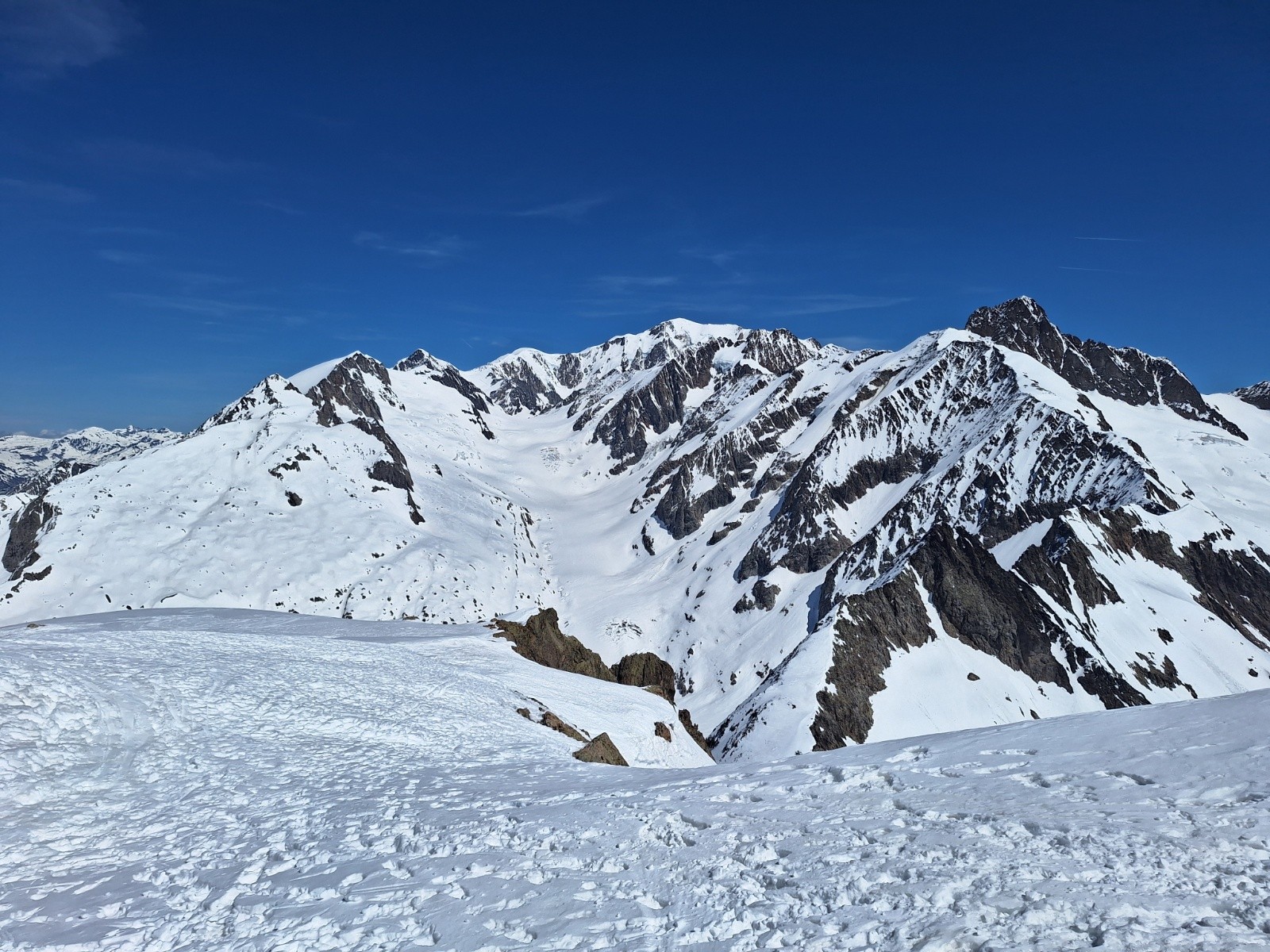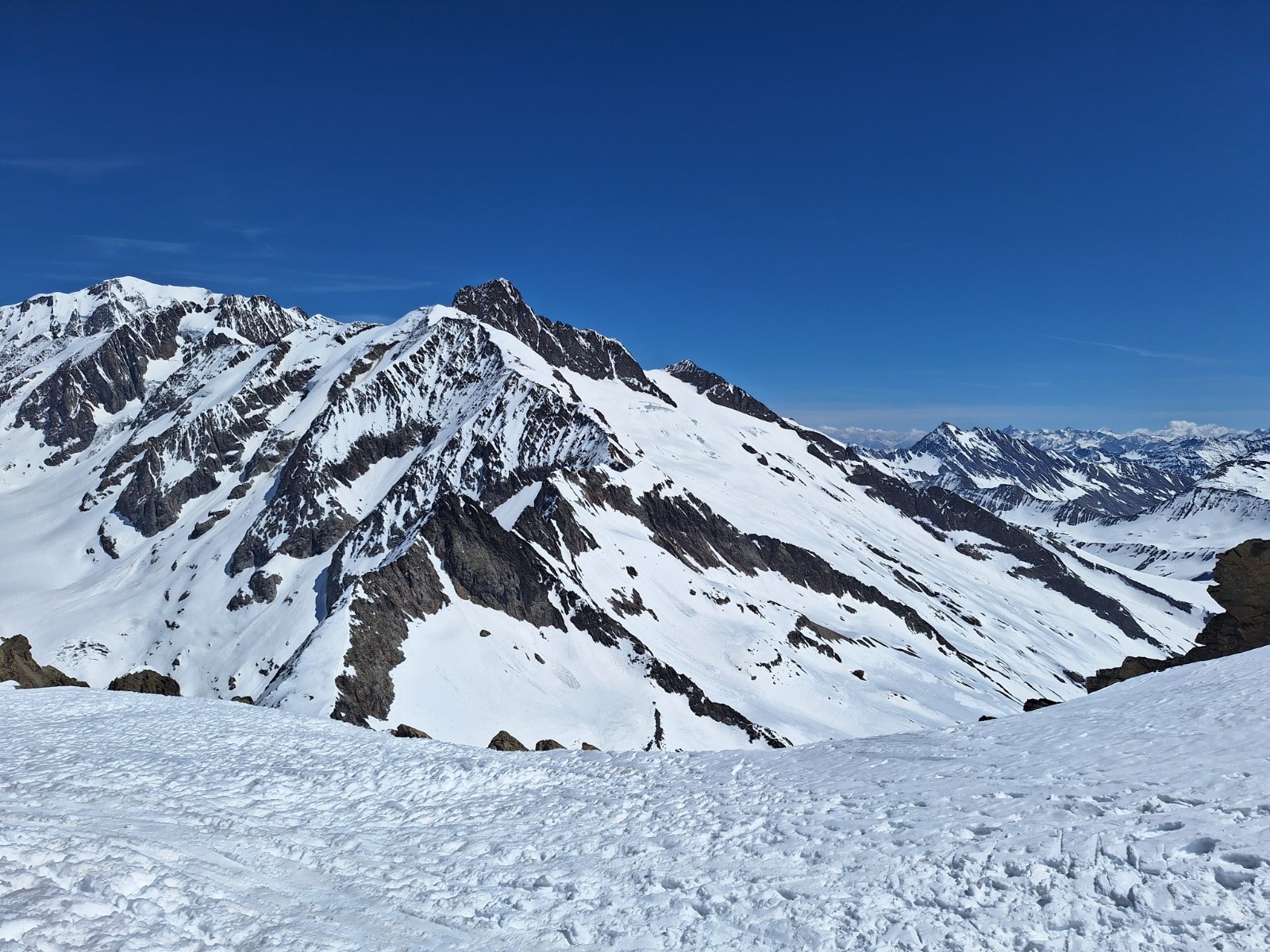Sommet jusqu'au col sous le Pain de Sucre: neige dure parfois un peu travaillée par le vent mais bien skiante.